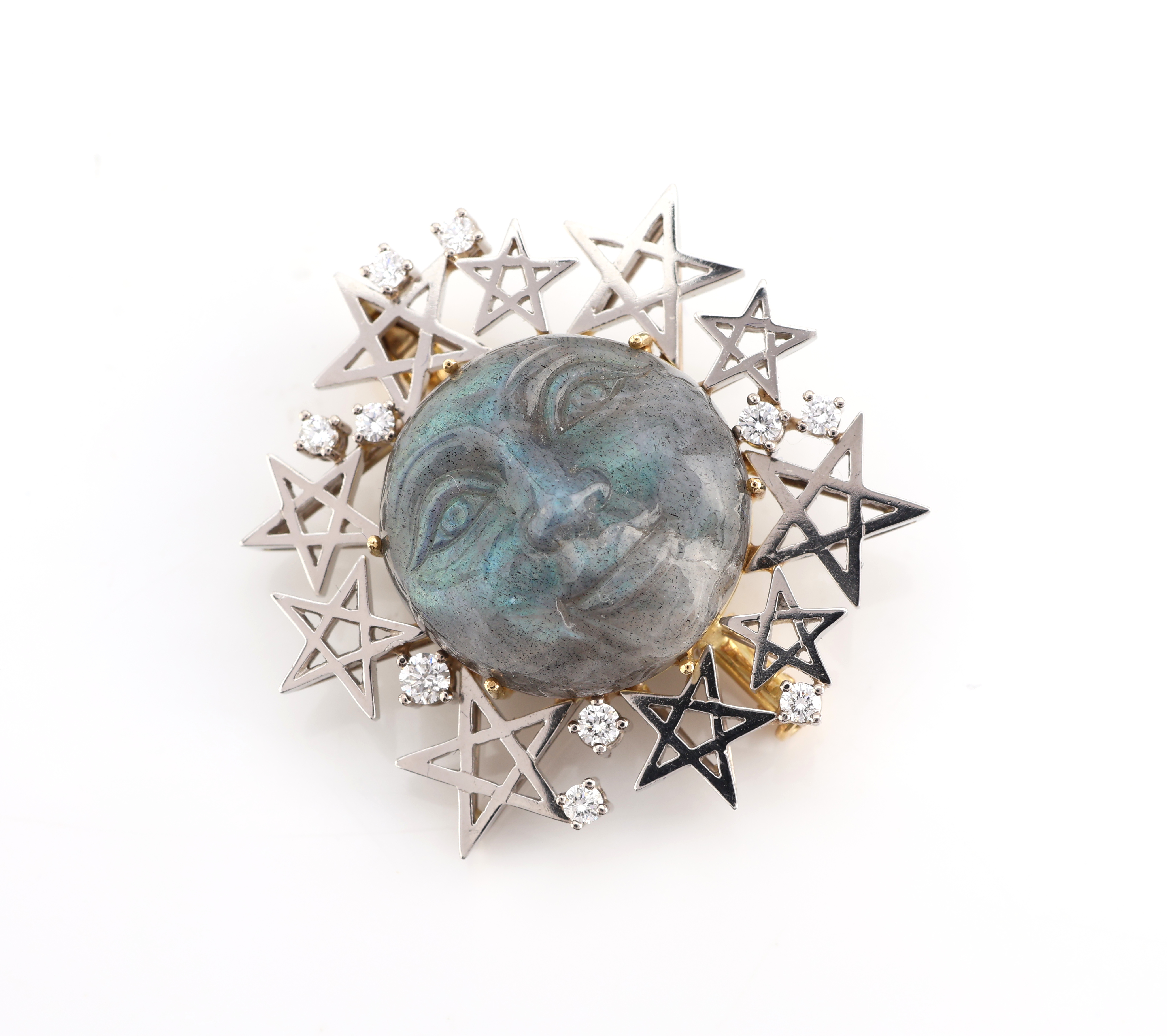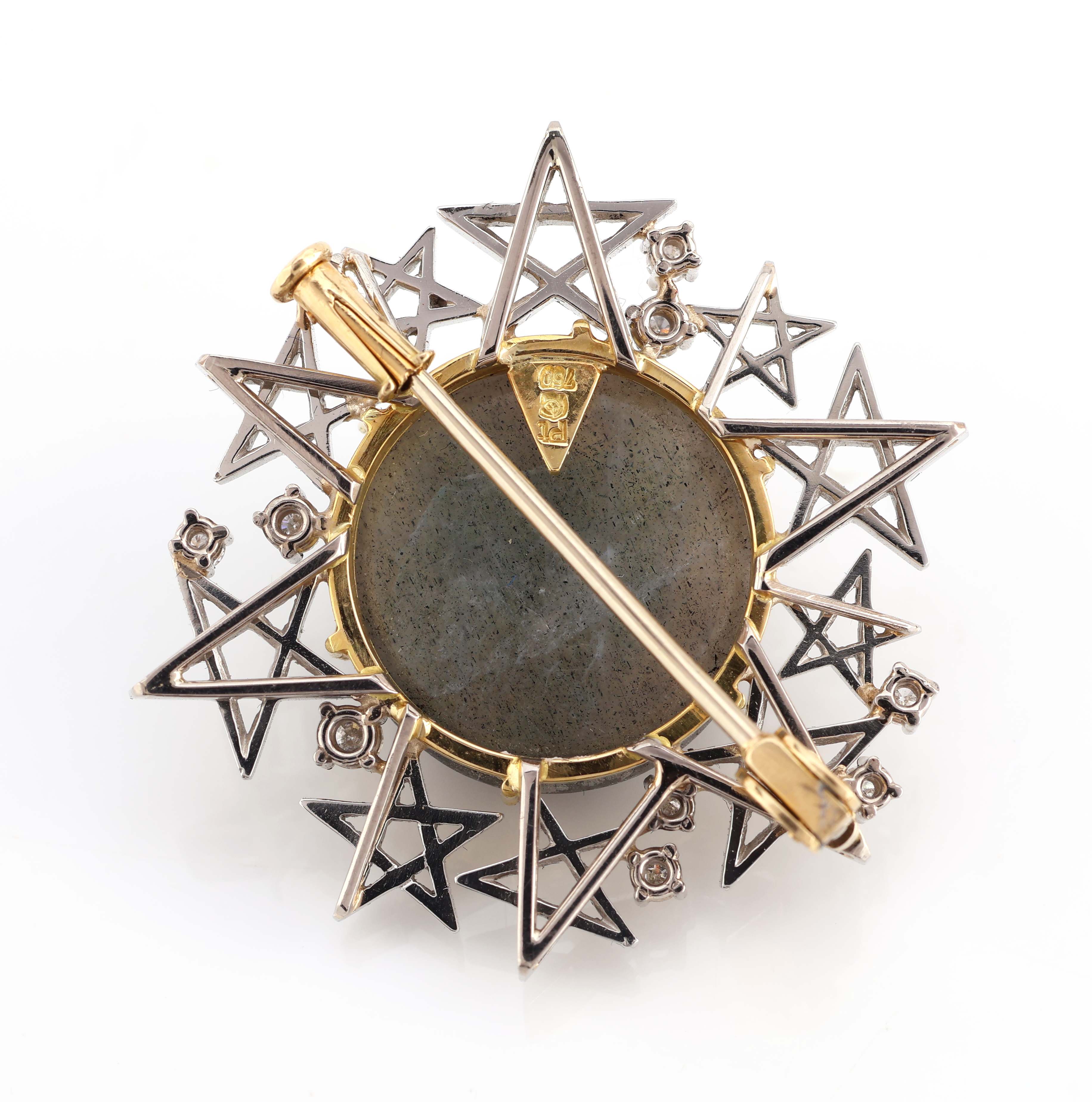 18 kt Gold und Platin Labradorit-Brillant -Brosche, GG 750/000 und Platin, Einzelanfertigung