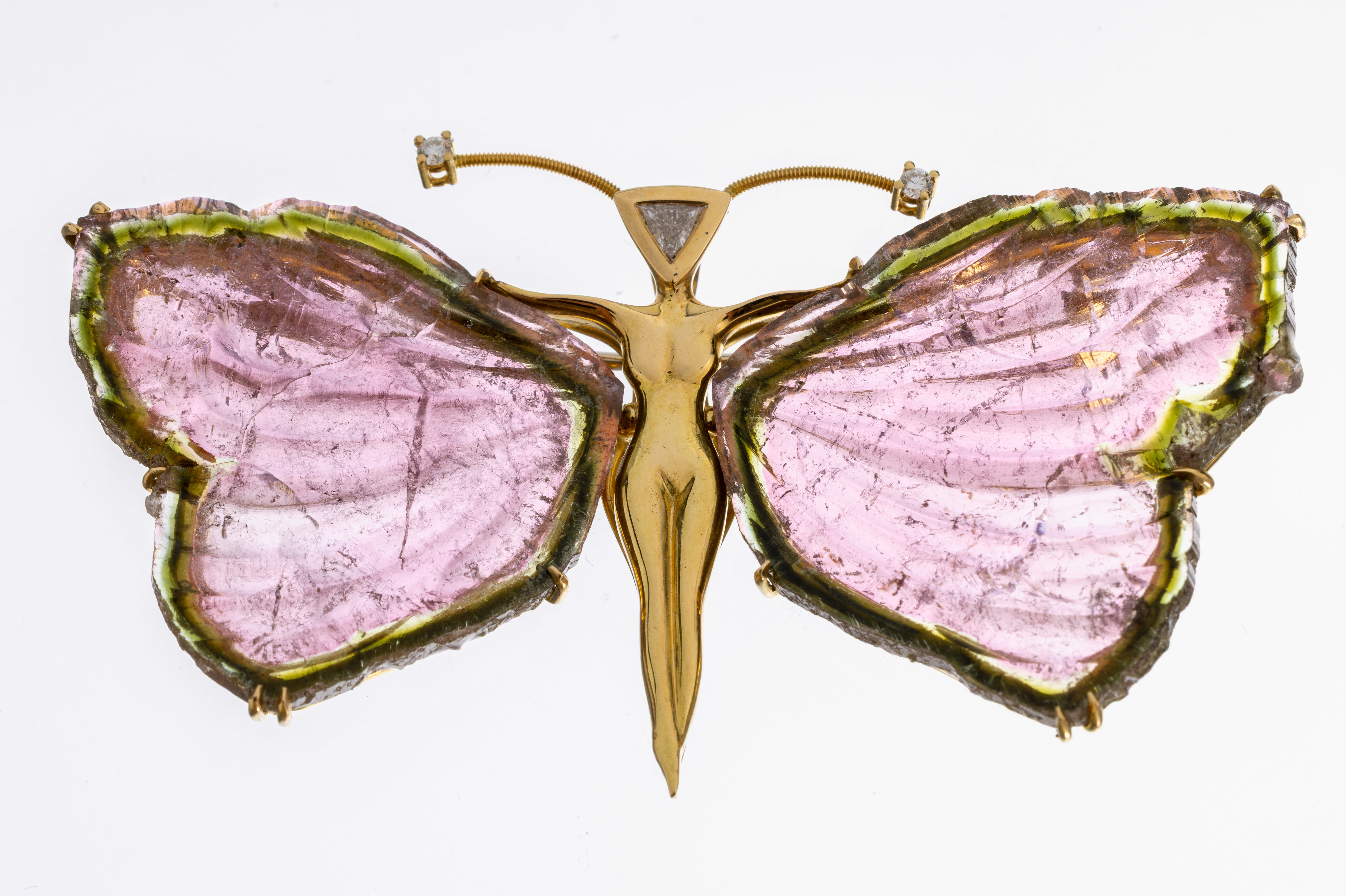 Frauenkörper, Flügel aus Wassermelonen -Turmalinen zus. ca. 21.52 ct, 2 Brillanten