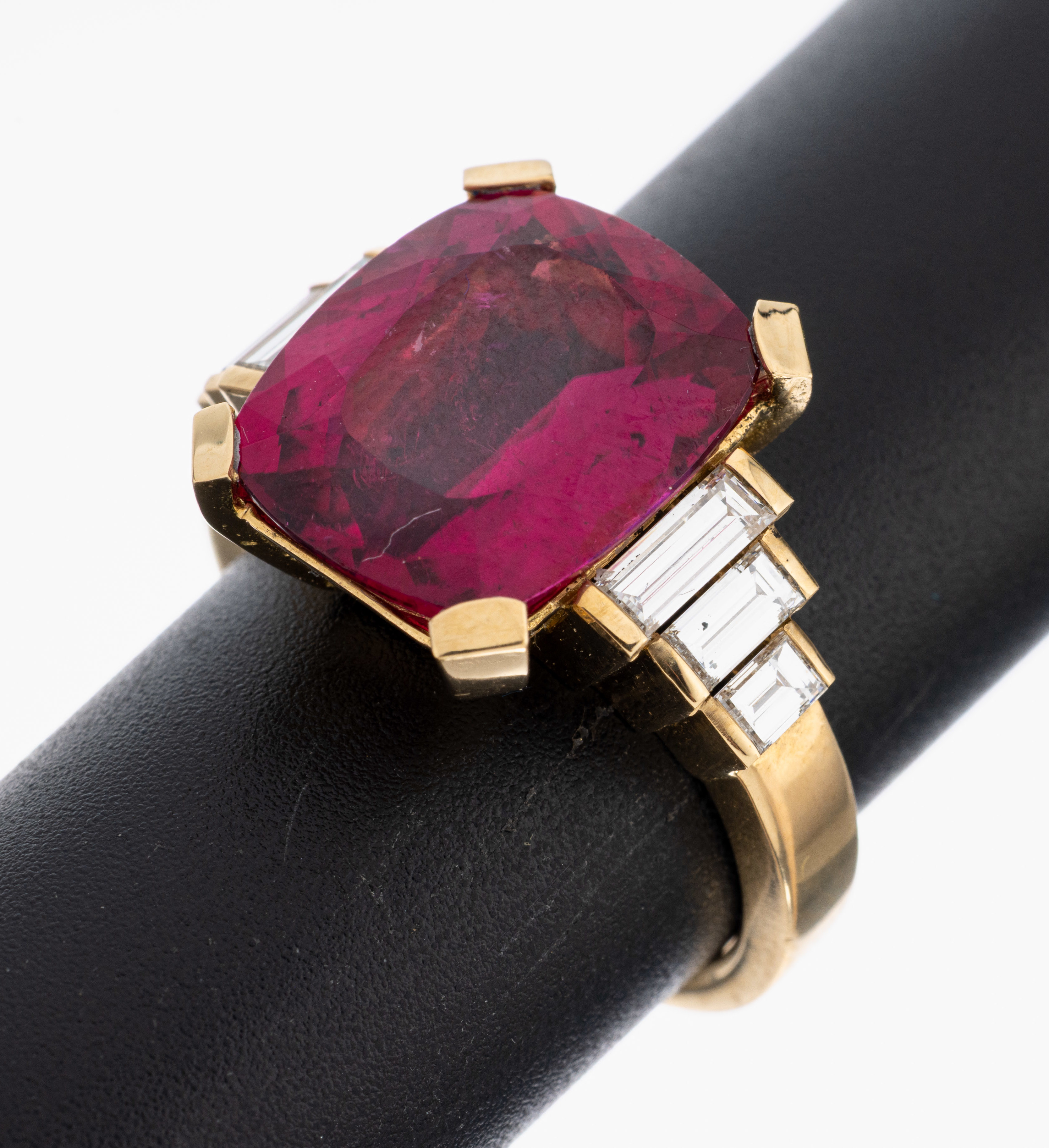 18 kt Gold Rubellit-Diamant-Ring, GG 750/000, Einzelanfertigung eines renommierten
