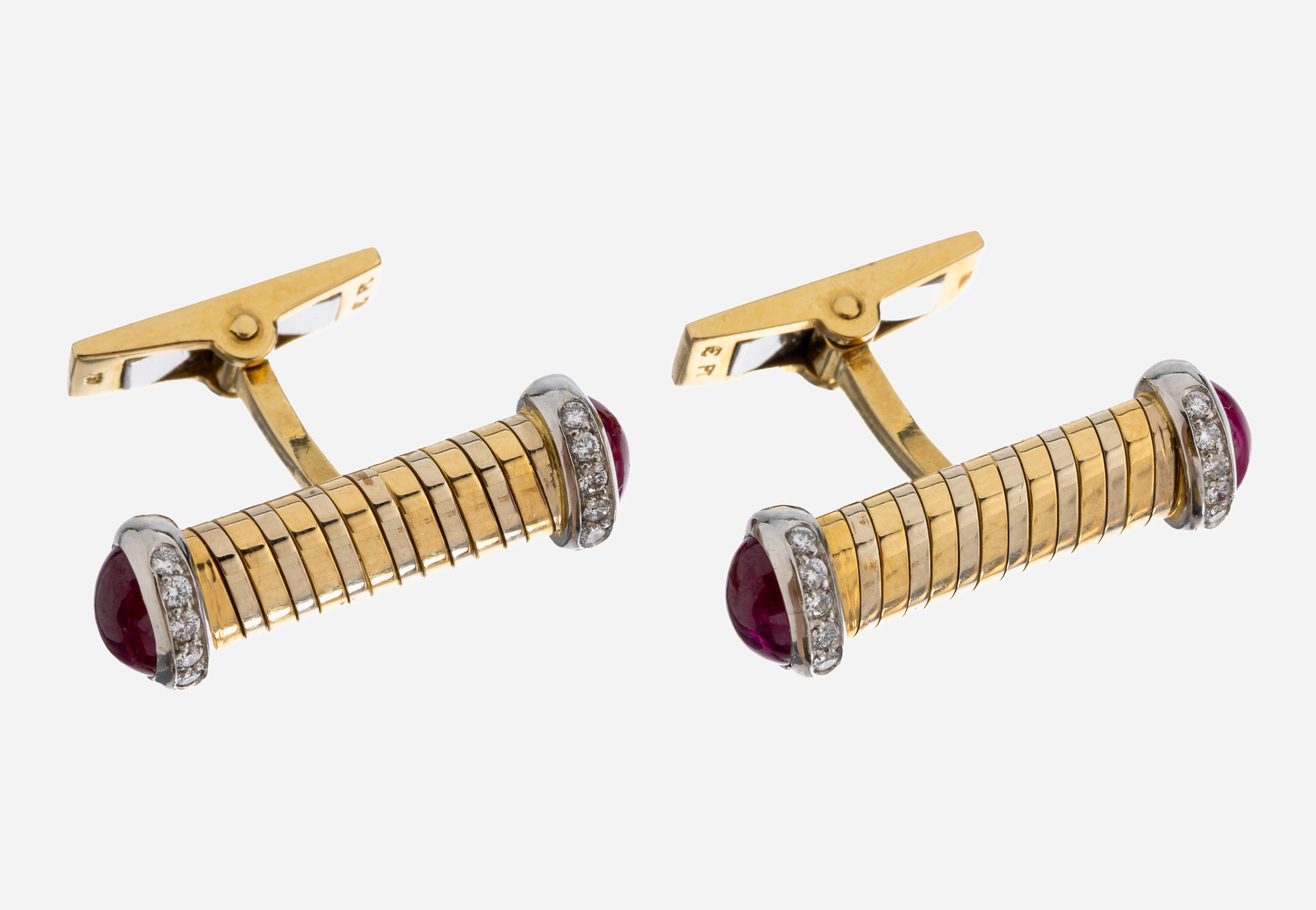 Paar 18 kt Gold Rubin-Brillant -Manschettenknöpfe, GG/WG 750/000, Einzelanfertigung