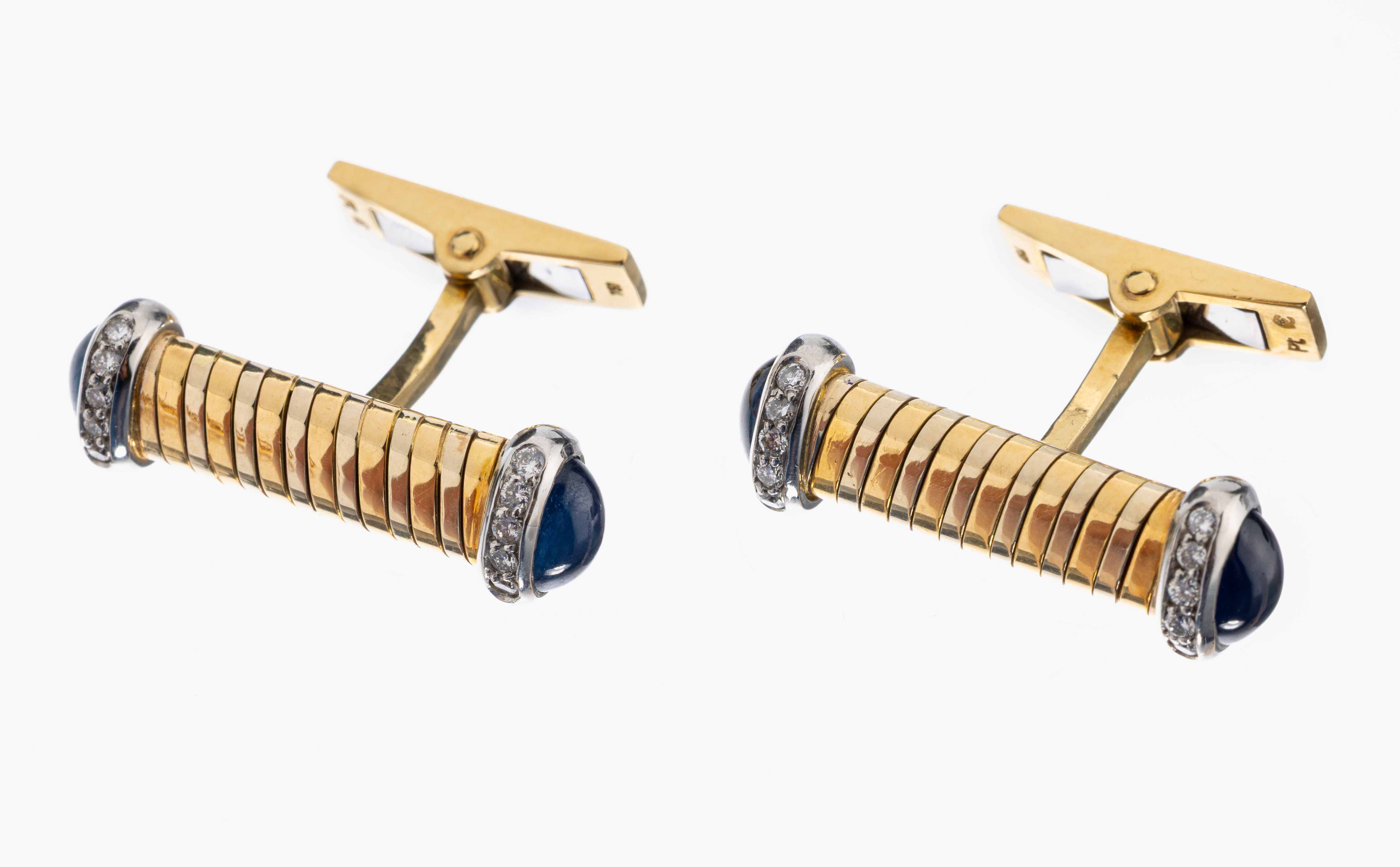 Paar 18 kt Gold Saphir-Brillant -Manschettenknöpfe, GG/WG 750/000, Einzelanfertigung