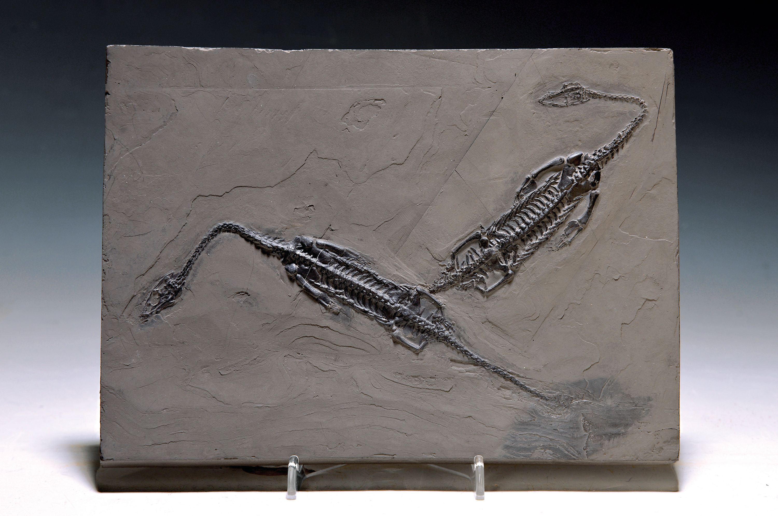 Schwimmsaurier-Paar Keichousaurs Hui" (Nothosaurus), Guizhou-Provinz China, 220 Mio.