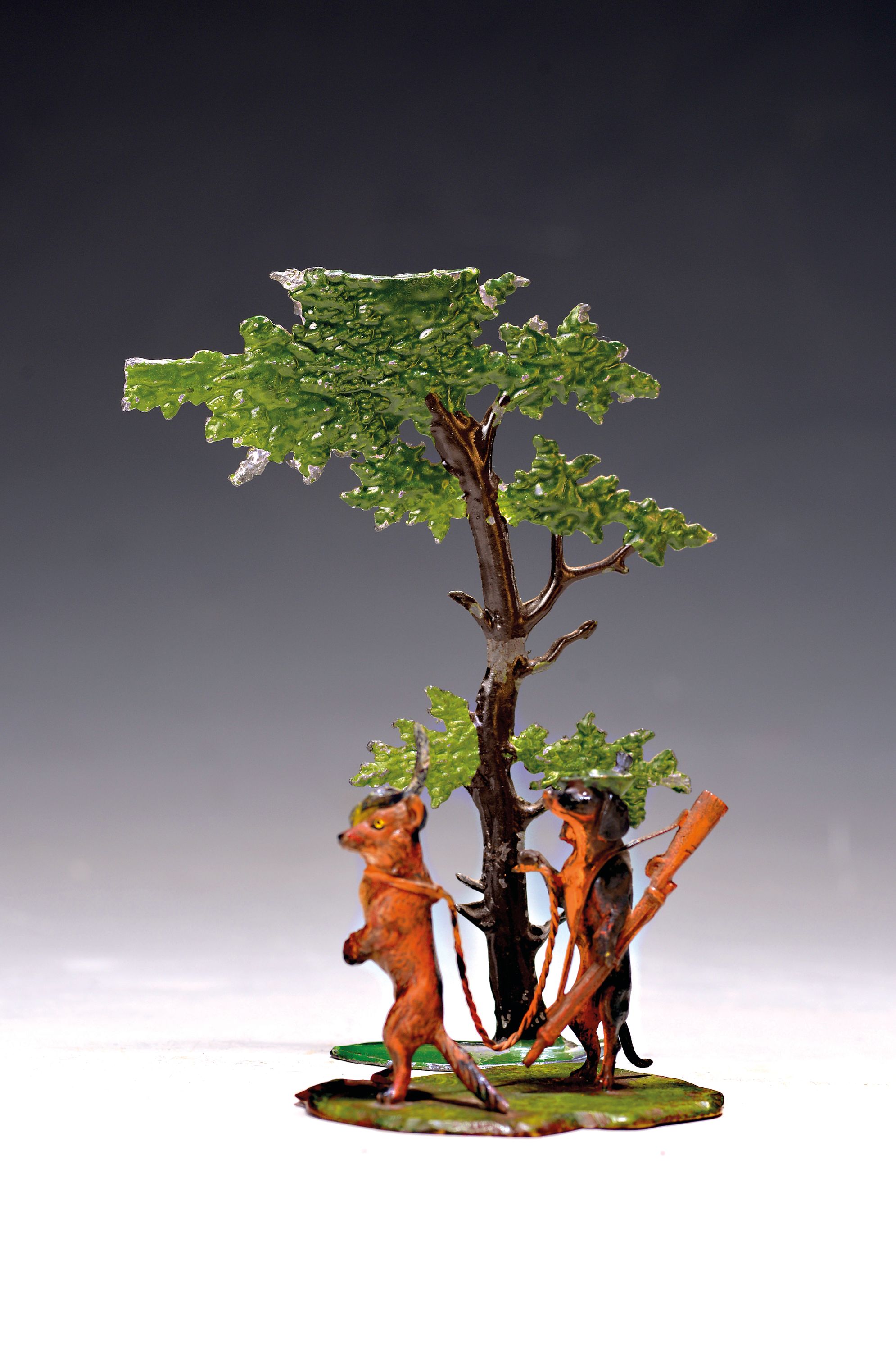 Wiener Bronze, zweite Hälfte 20. Jh., zwei Dackel bei der Jagd, bunt bemalt, H.