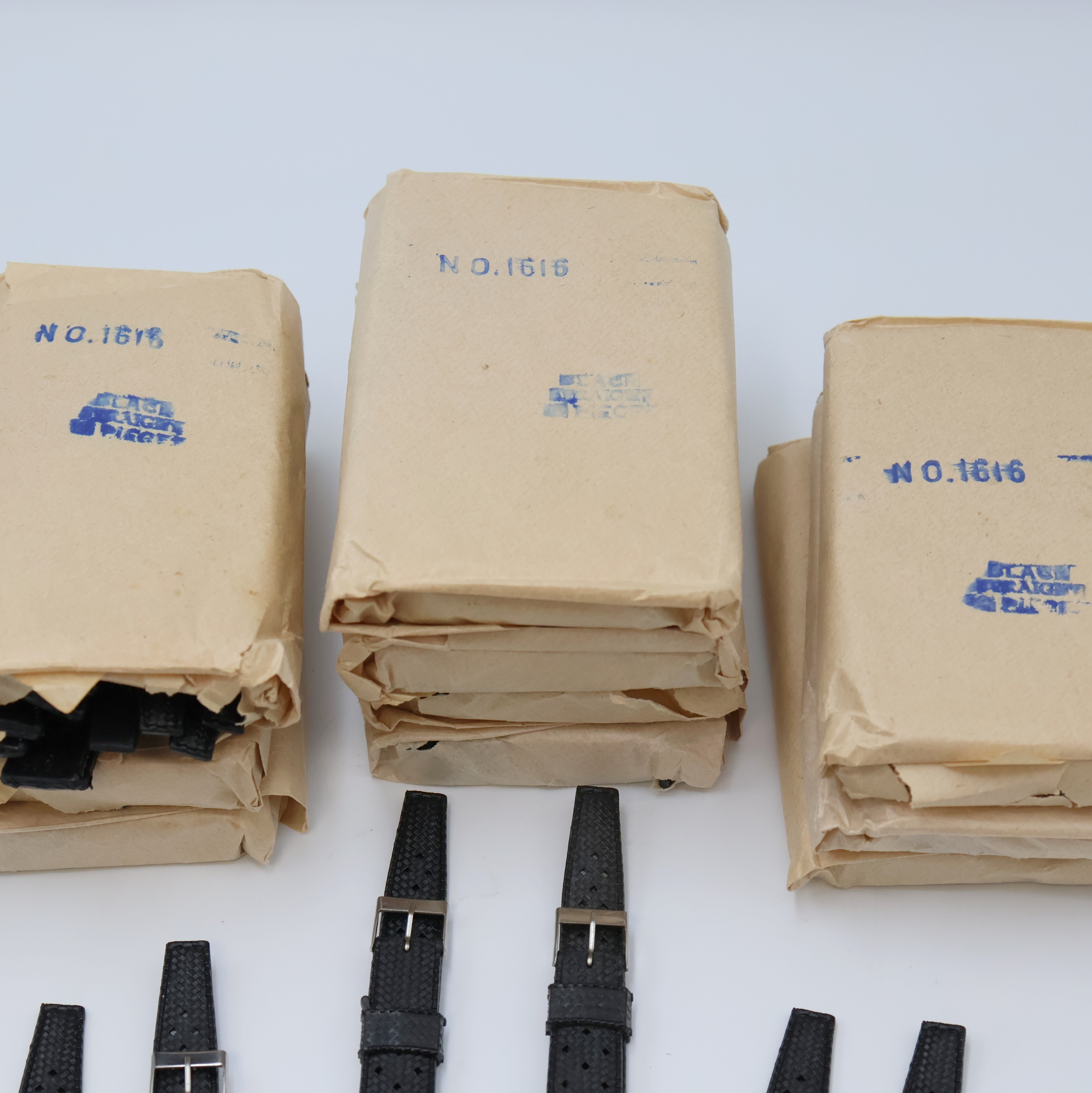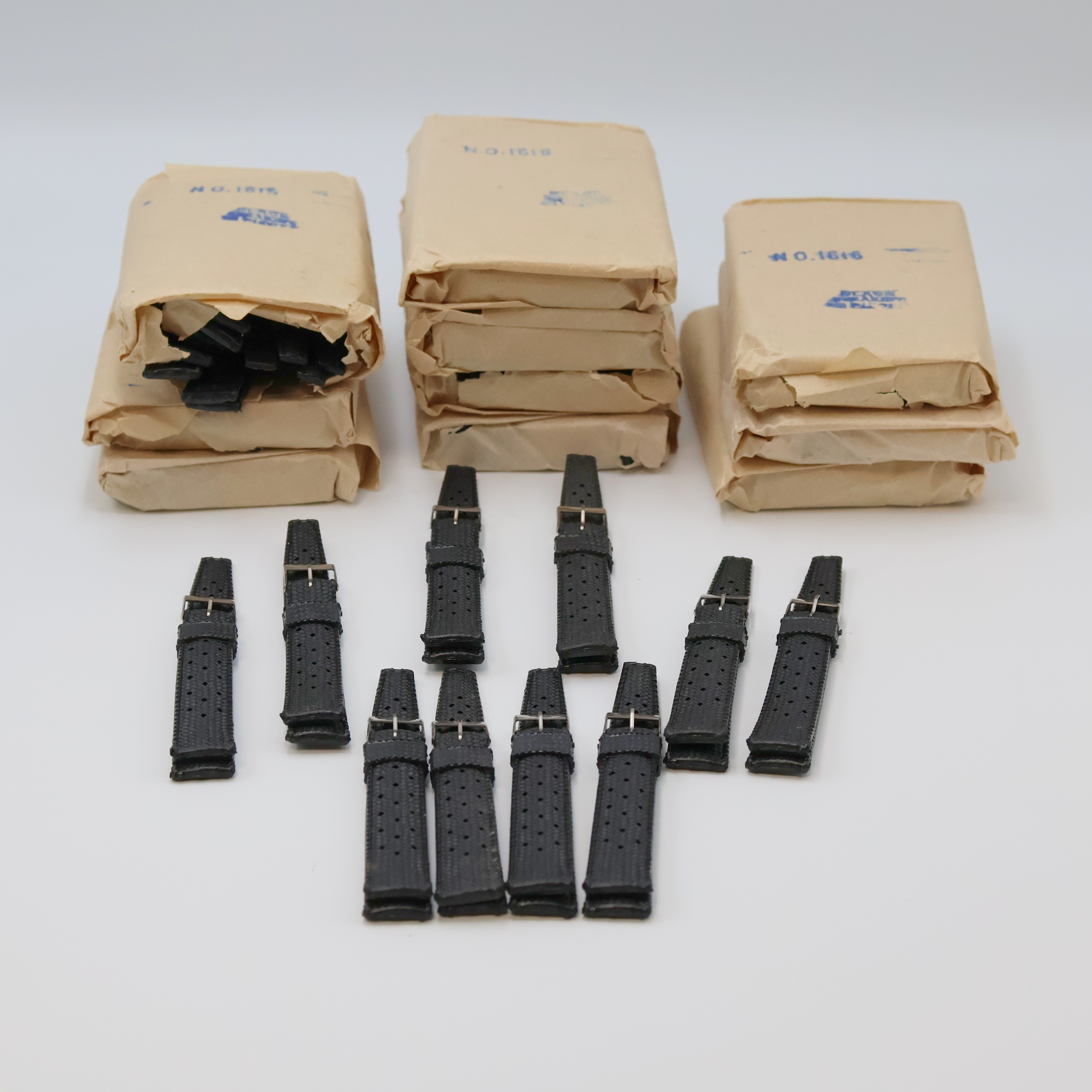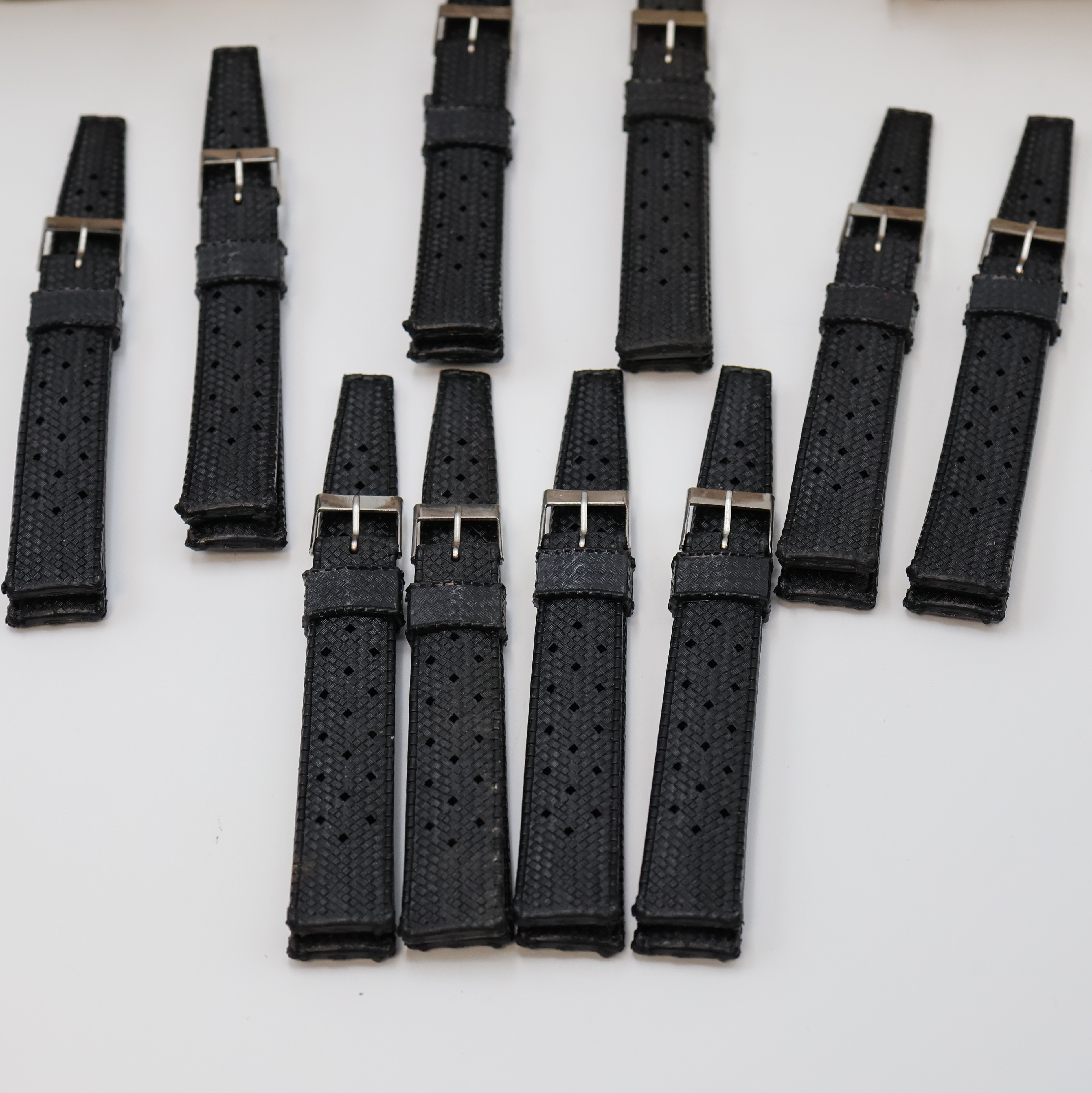 110 Gummibänder für Taucheruhren, ca. 1970er Jahre, Verlauf vom Anstoß zur Stahlschließe