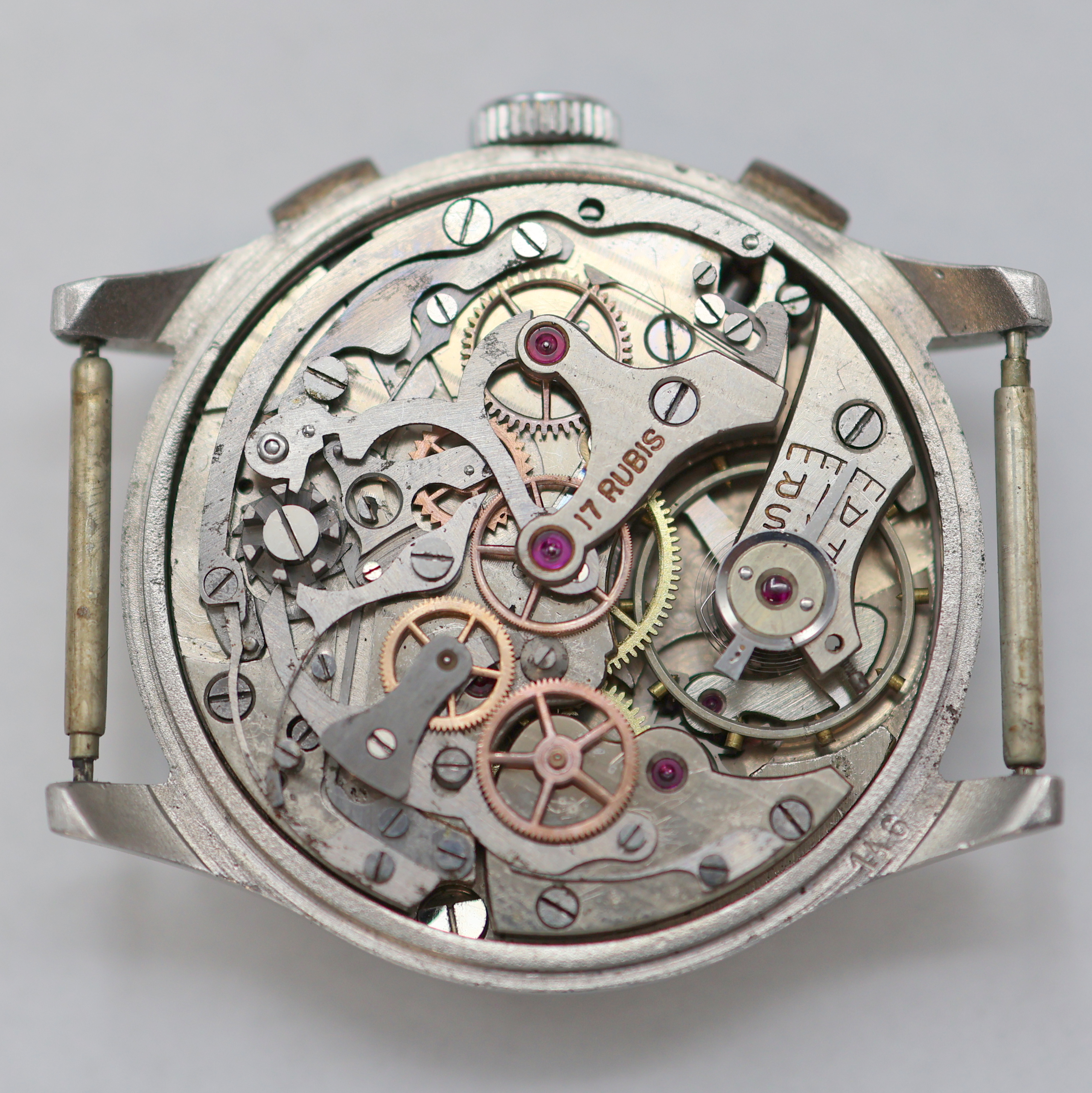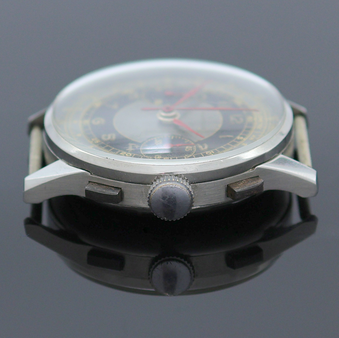 MOBILIA Schaltradchronograph in Stahl, Schweiz um 1945, Handaufzug, 3-tlg. Geh.,