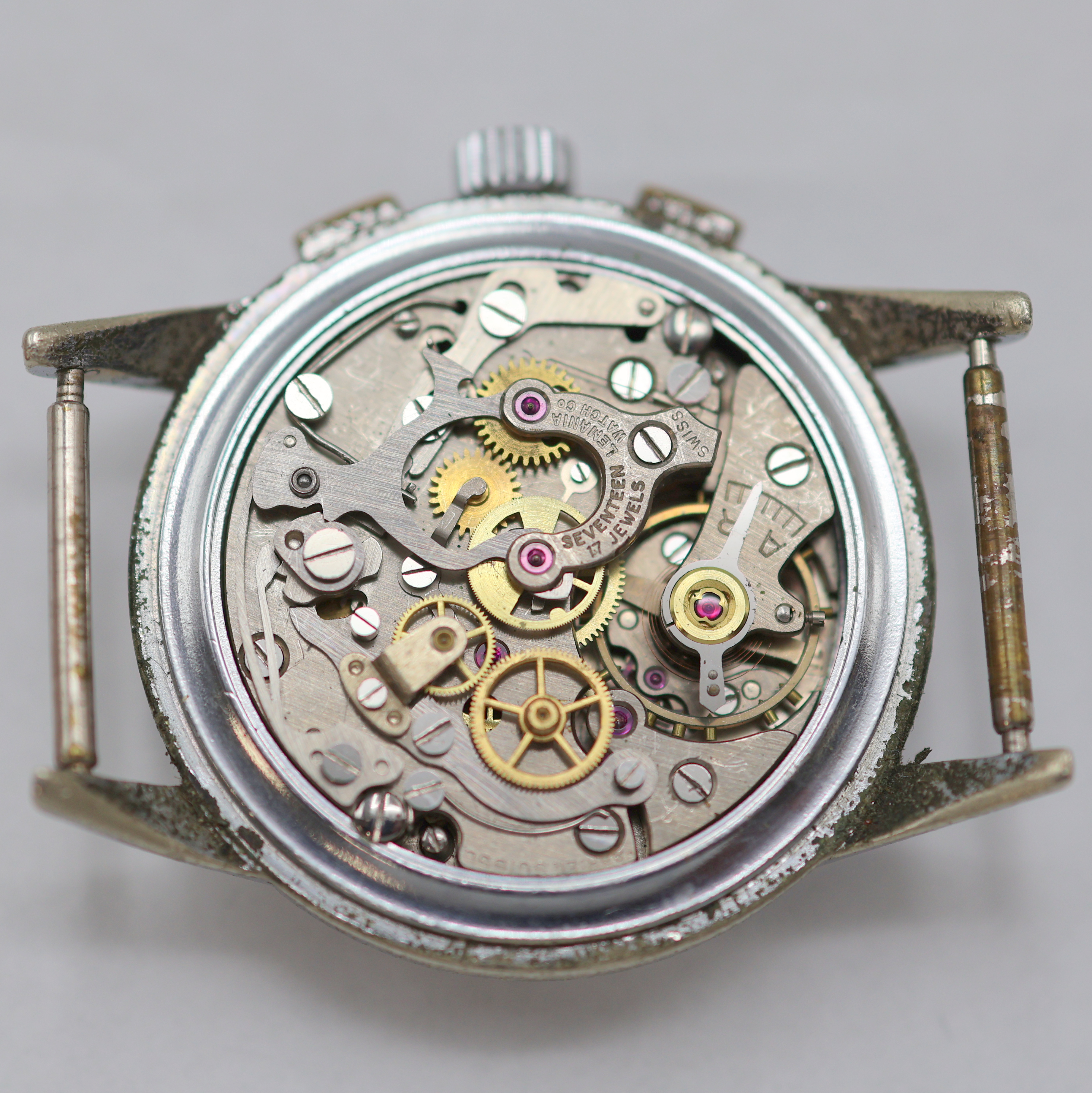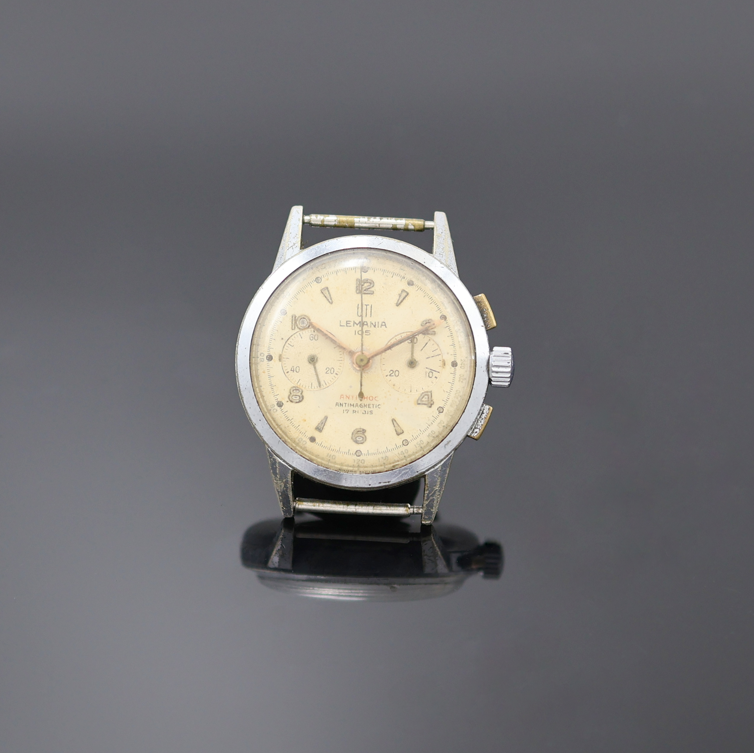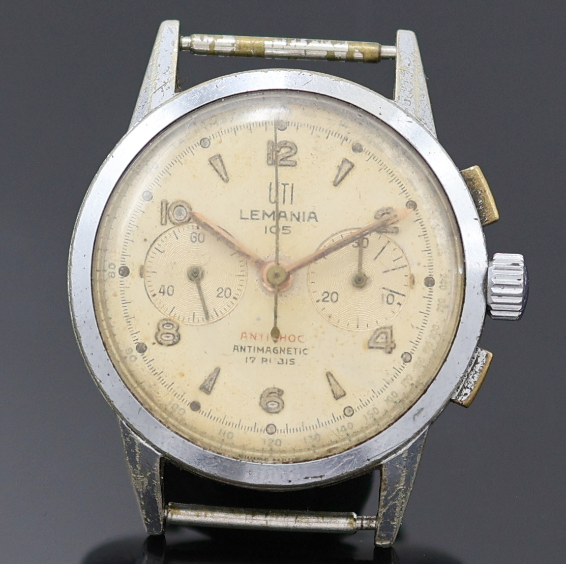 UTI / LEMANIA 105 Armbandchronograph im verchromten Gehäuse, Schweiz um 1950, Handaufzug,