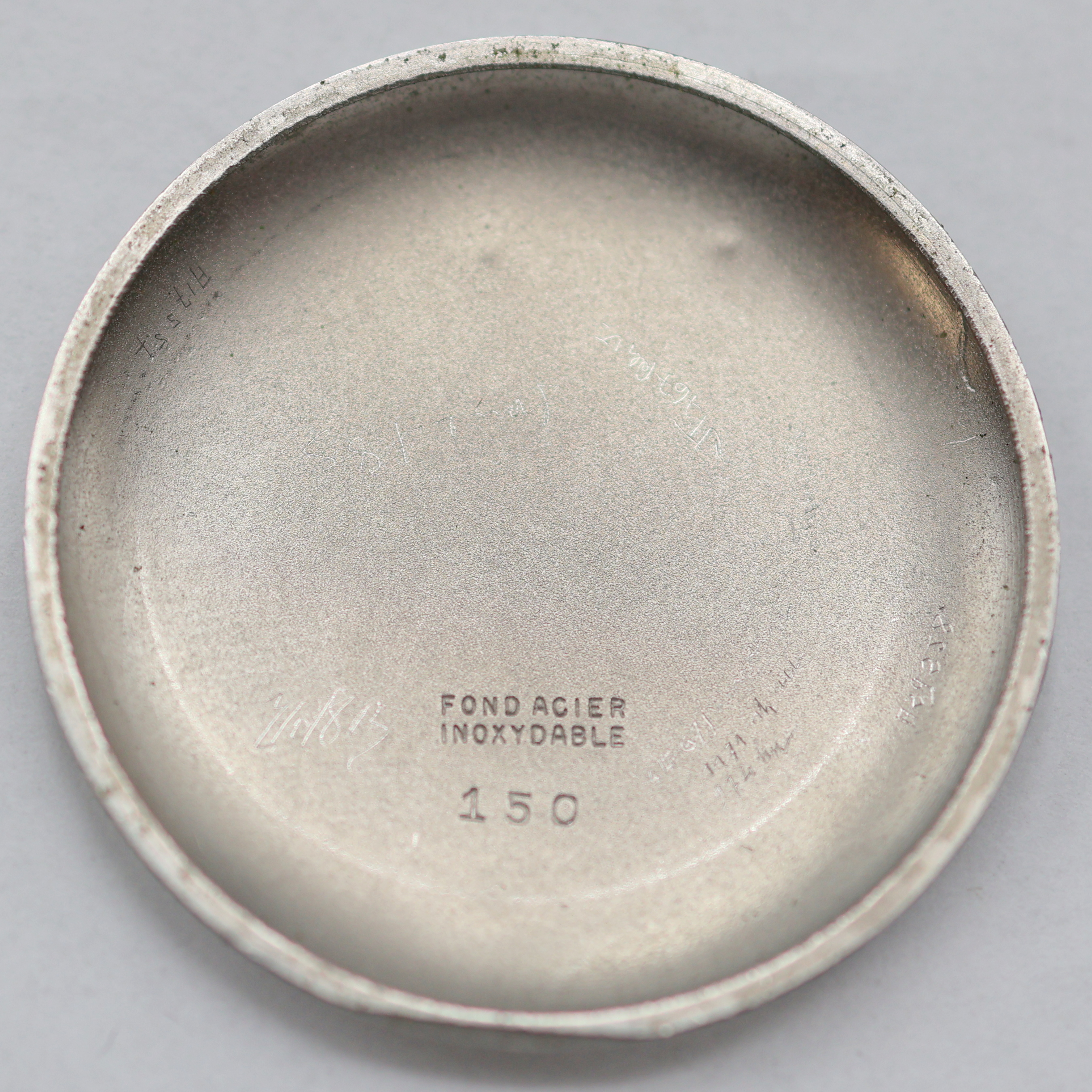 3-tlg. Geh. ber., Glasrand u. Stahlboden aufgedr., silb. Zifferbl. pat., silb. arab.