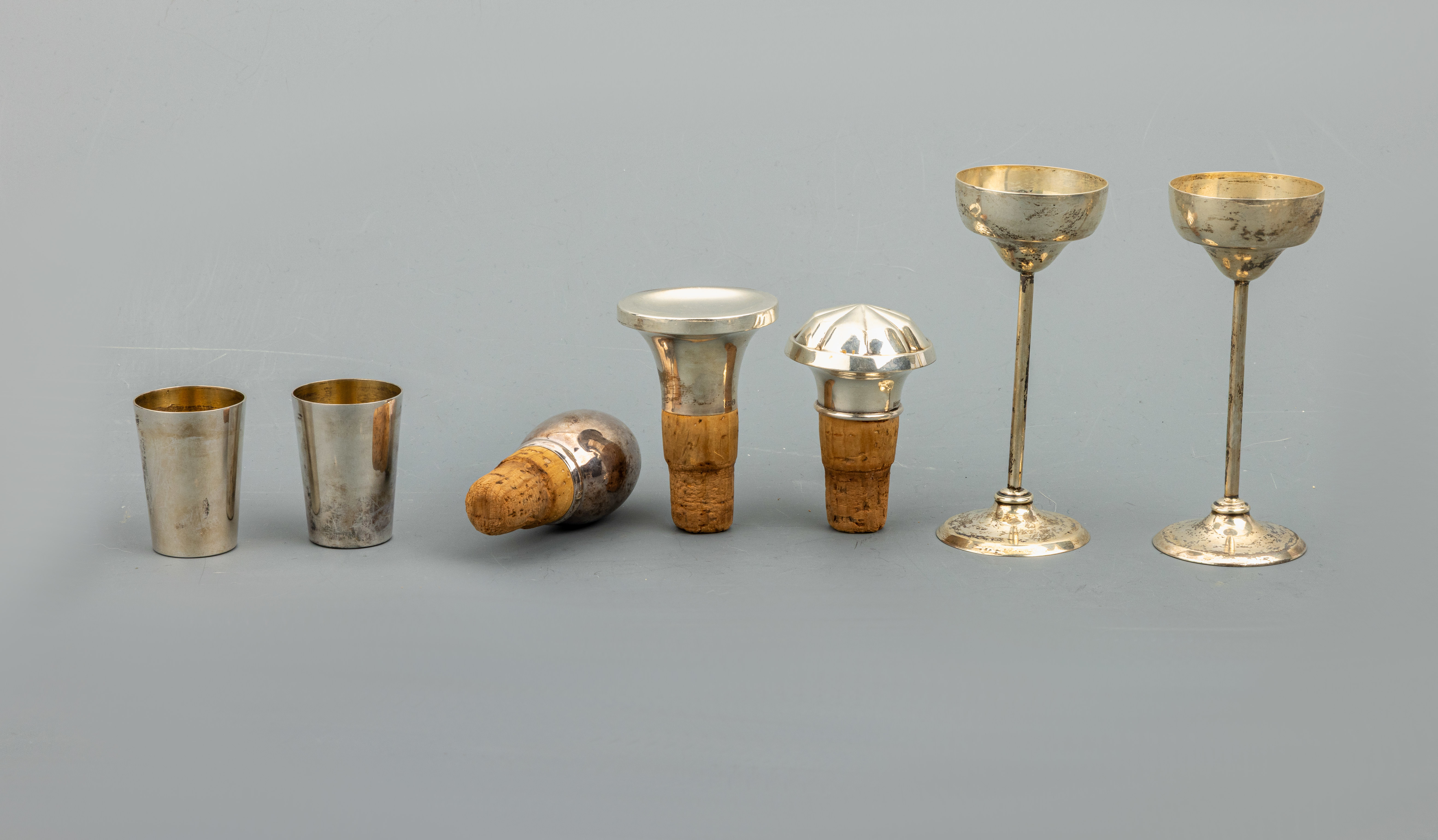 Silber,W.Binder, H ca. 4.5 cm, total ca. 260 g, dazu: 3 Flaschenkorken, 2 x 830er