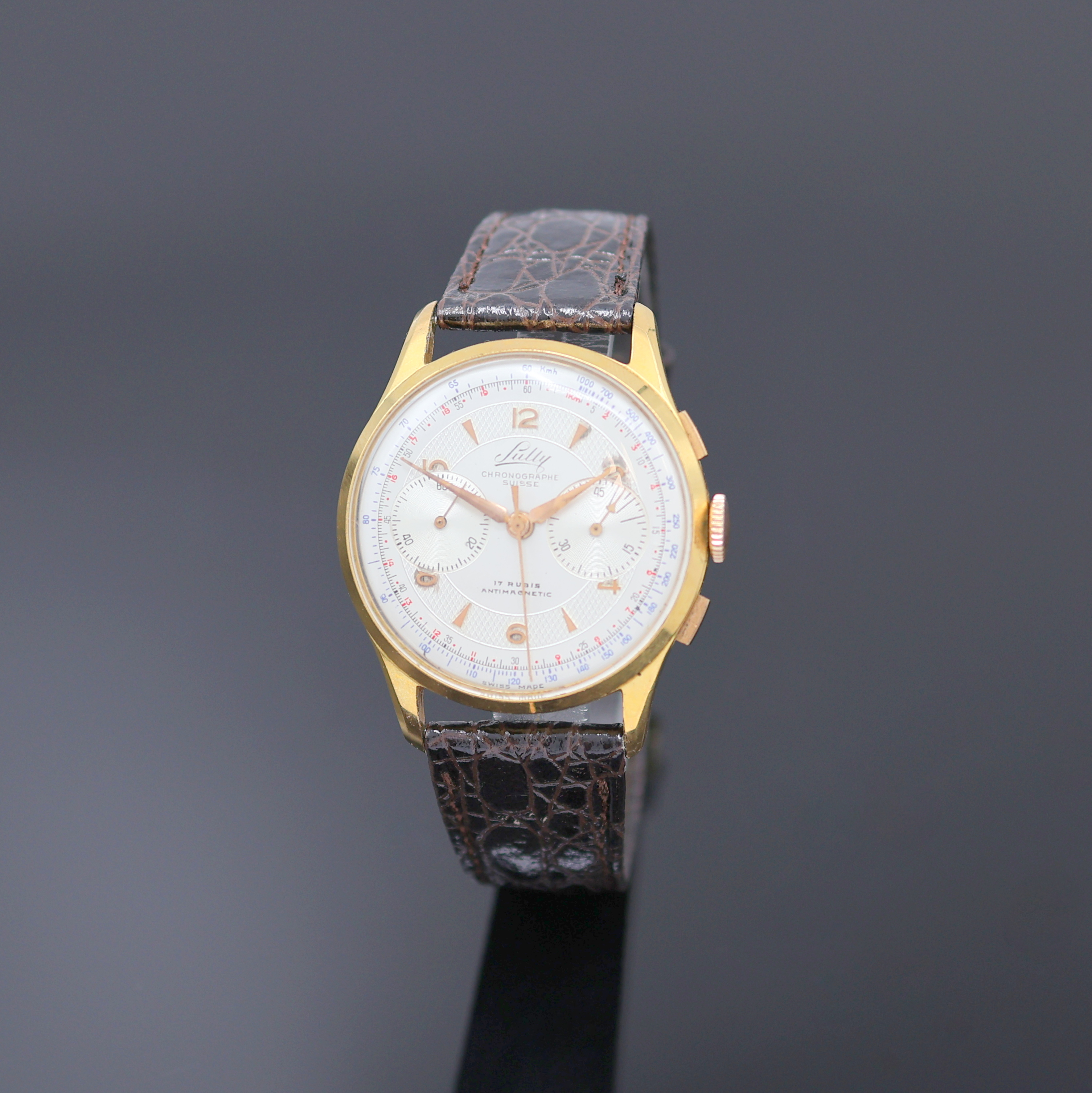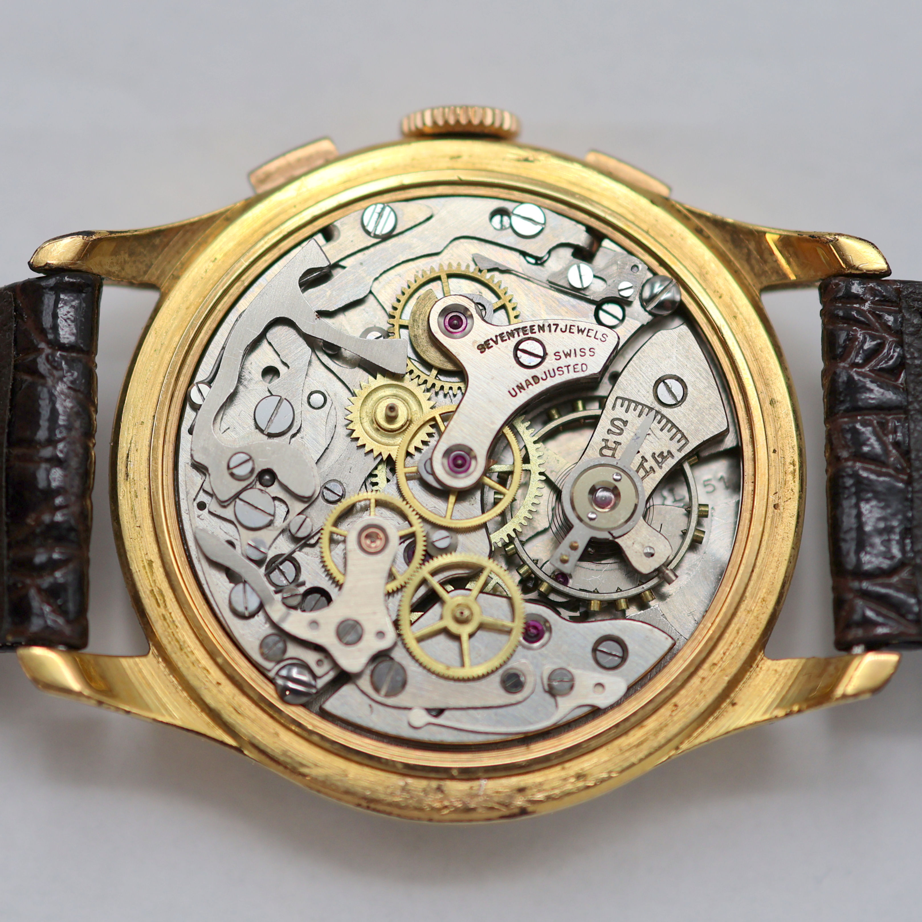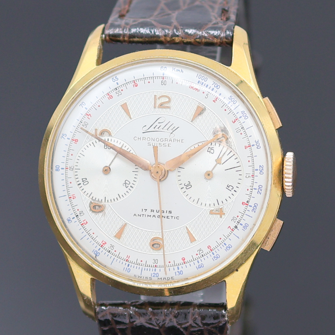 SULLY Chronographe Suisse vergoldeter Armbandchronograph, Schweiz um 1945, Handaufzug,