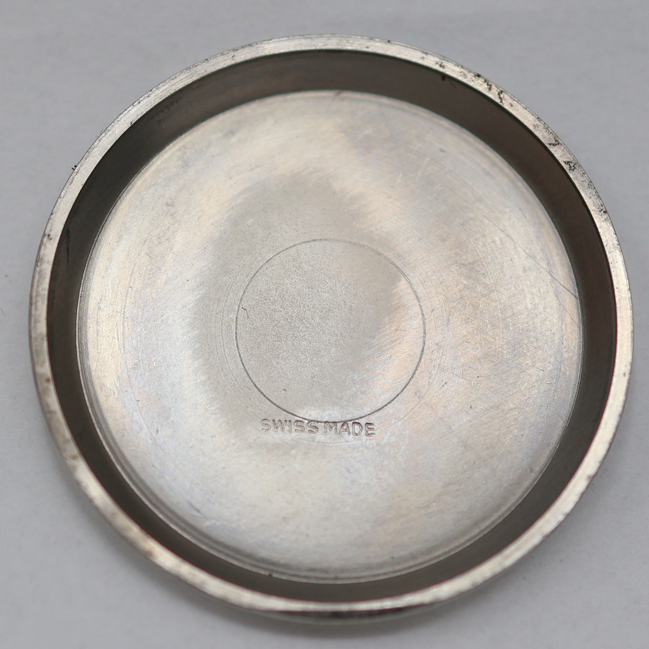 3-tlg. Geh., Glasrand u. Stahlboden aufgedr., silb. strukturiertes Zifferbl. pat.,