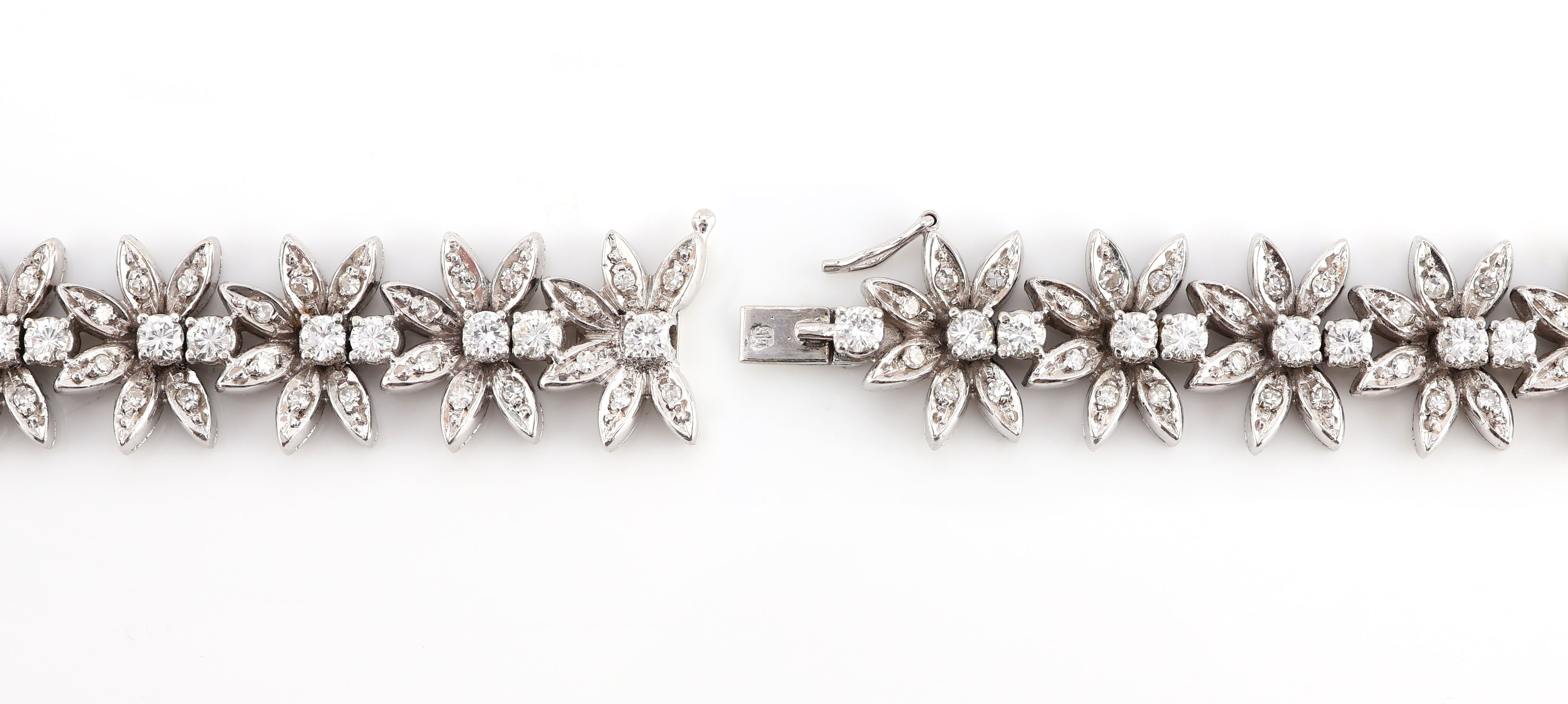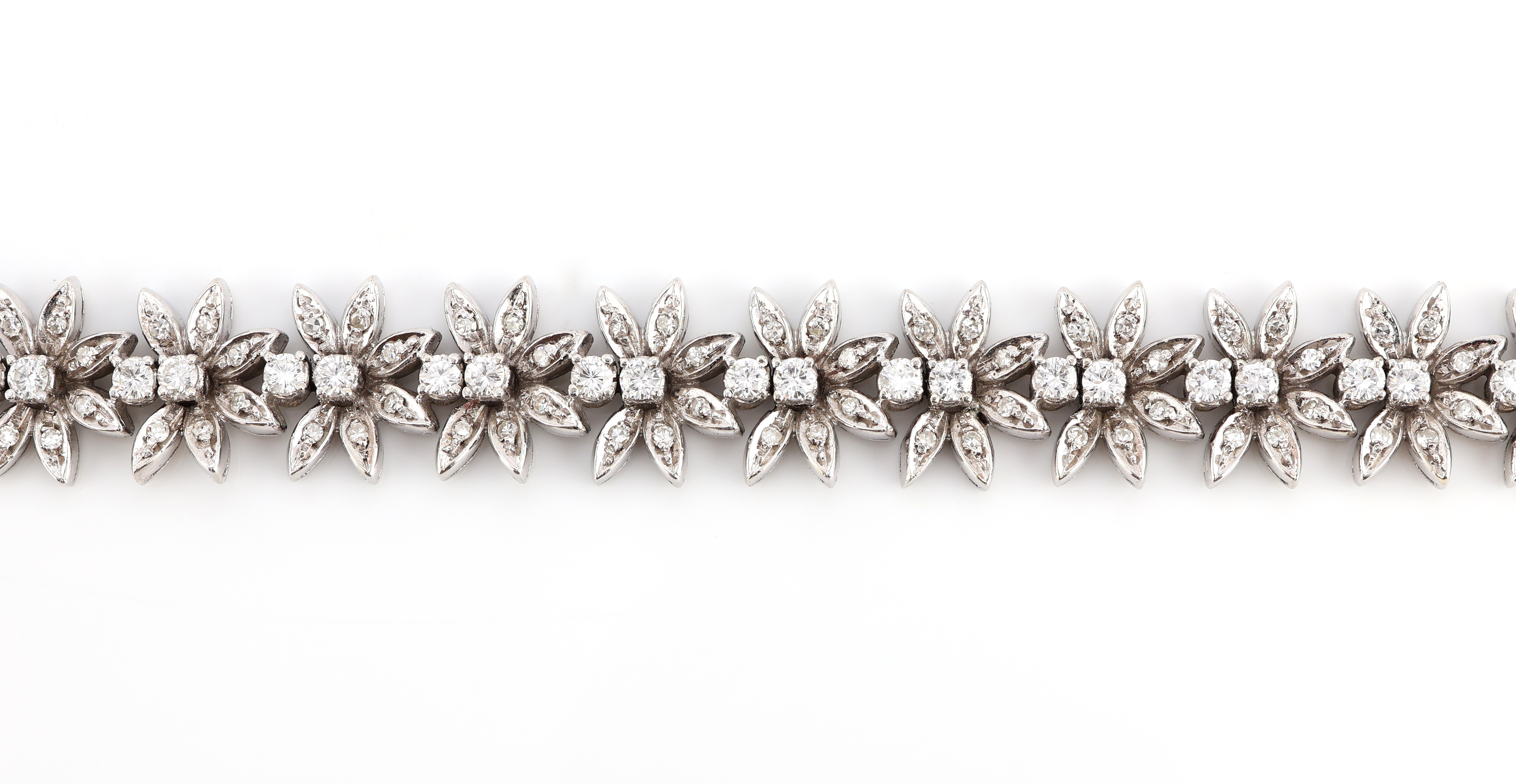 18 kt Gold Diamant-Armband, WG 750/000 gepr., 40 Brillanten und 120 8/8-Diamanten