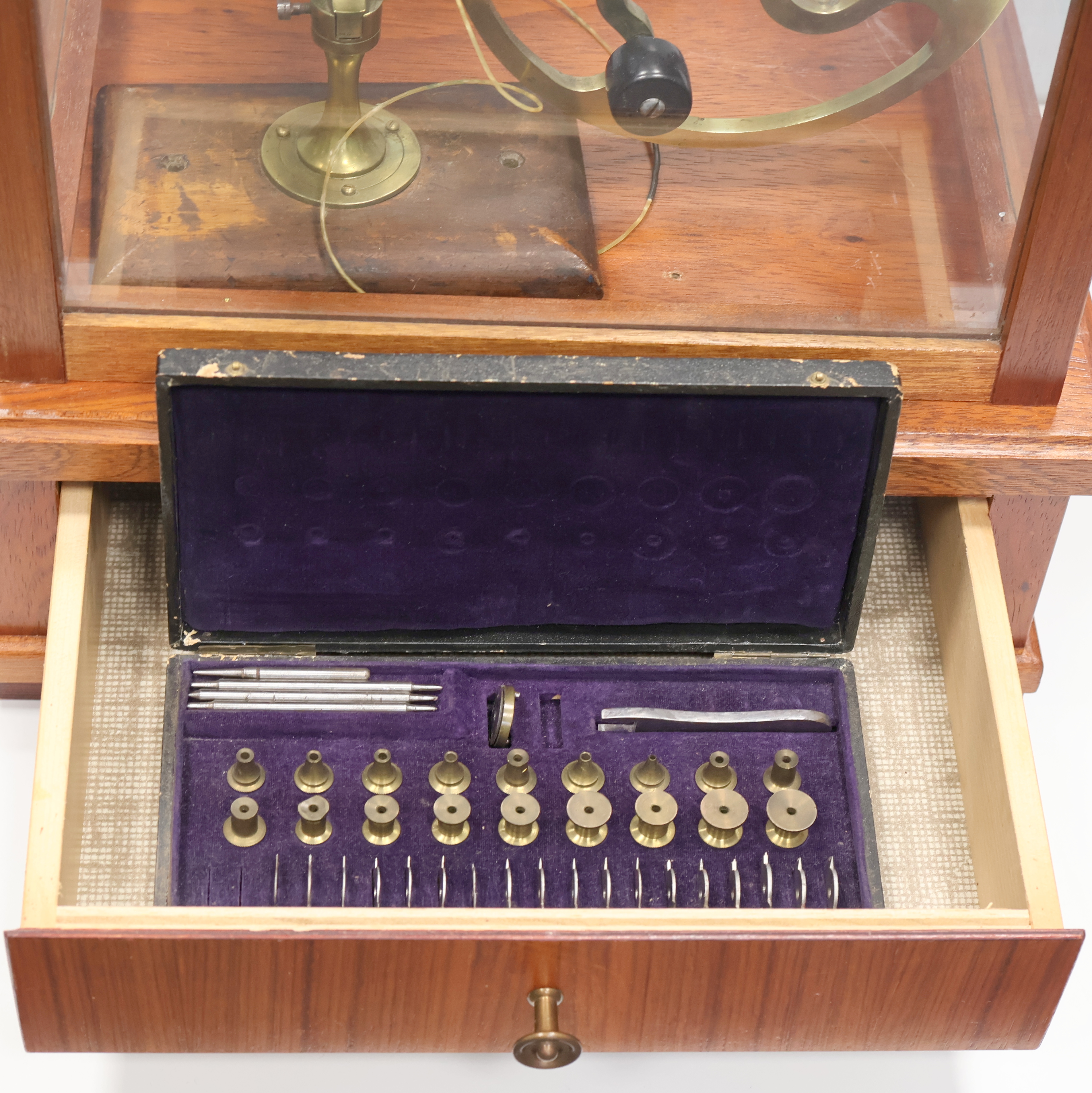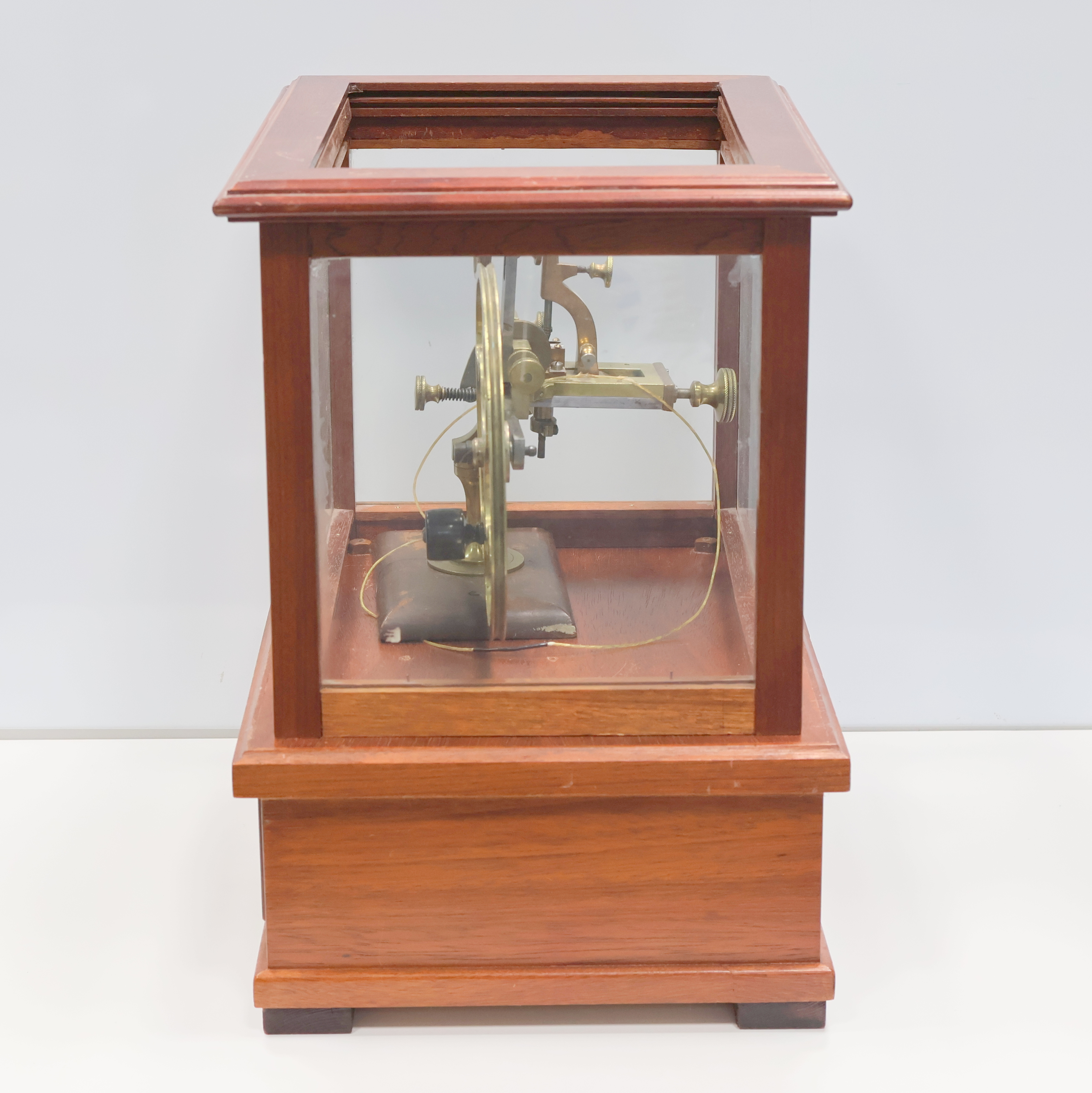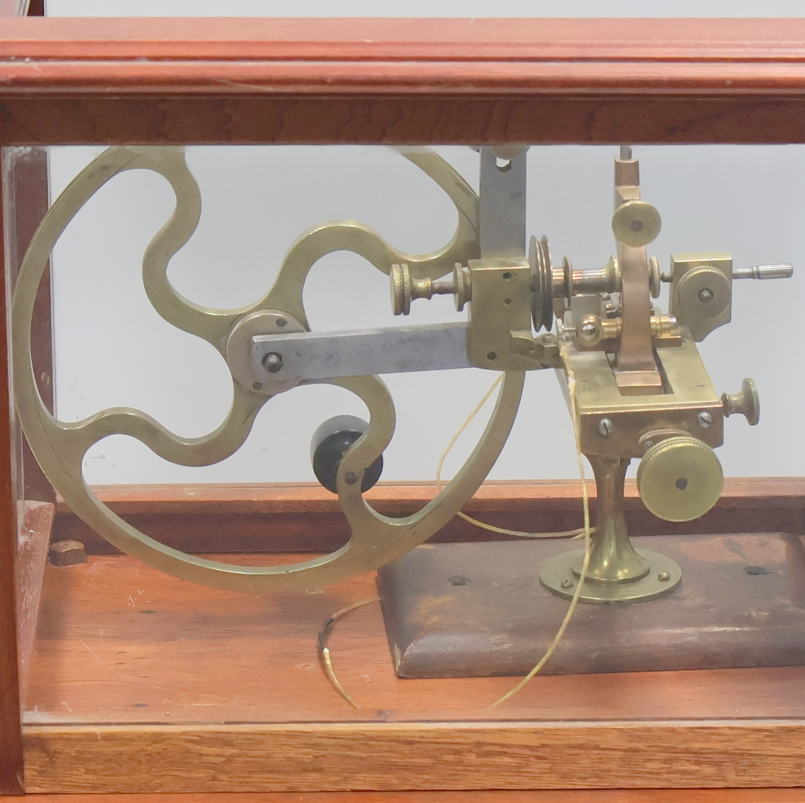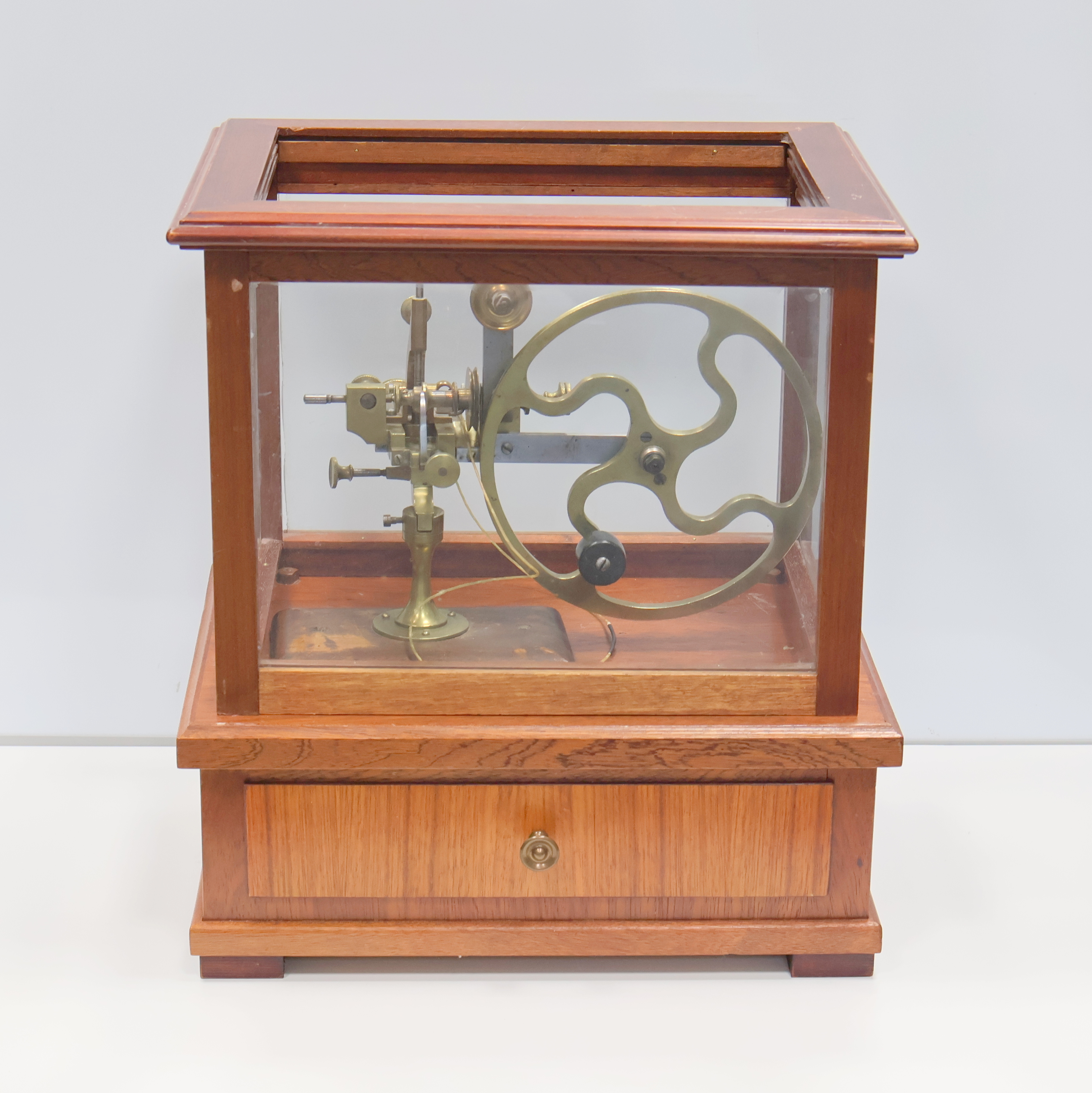 Wälzmaschine mit aufwendigem späteren Glaskasten, um 1900, Messing-Maschine auf