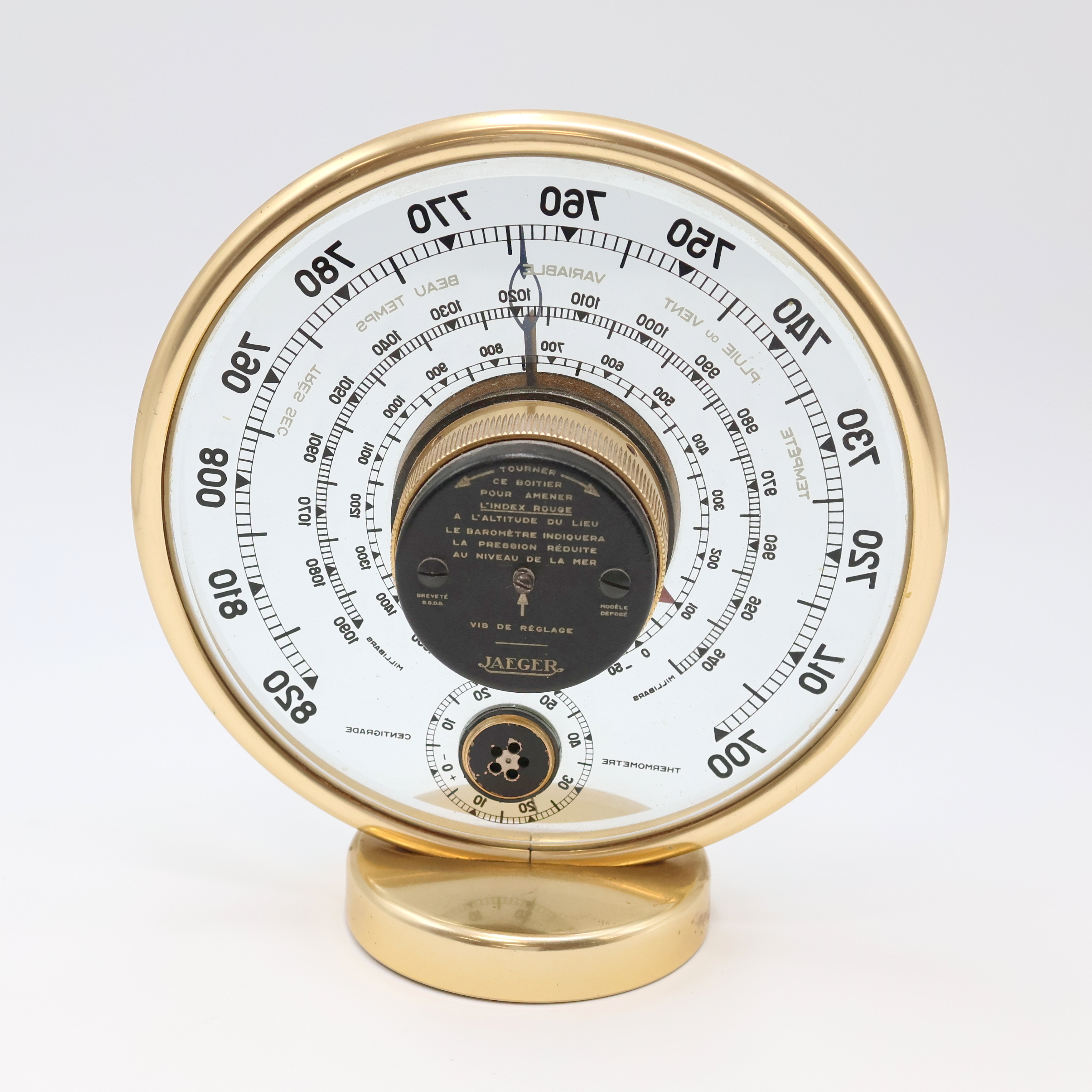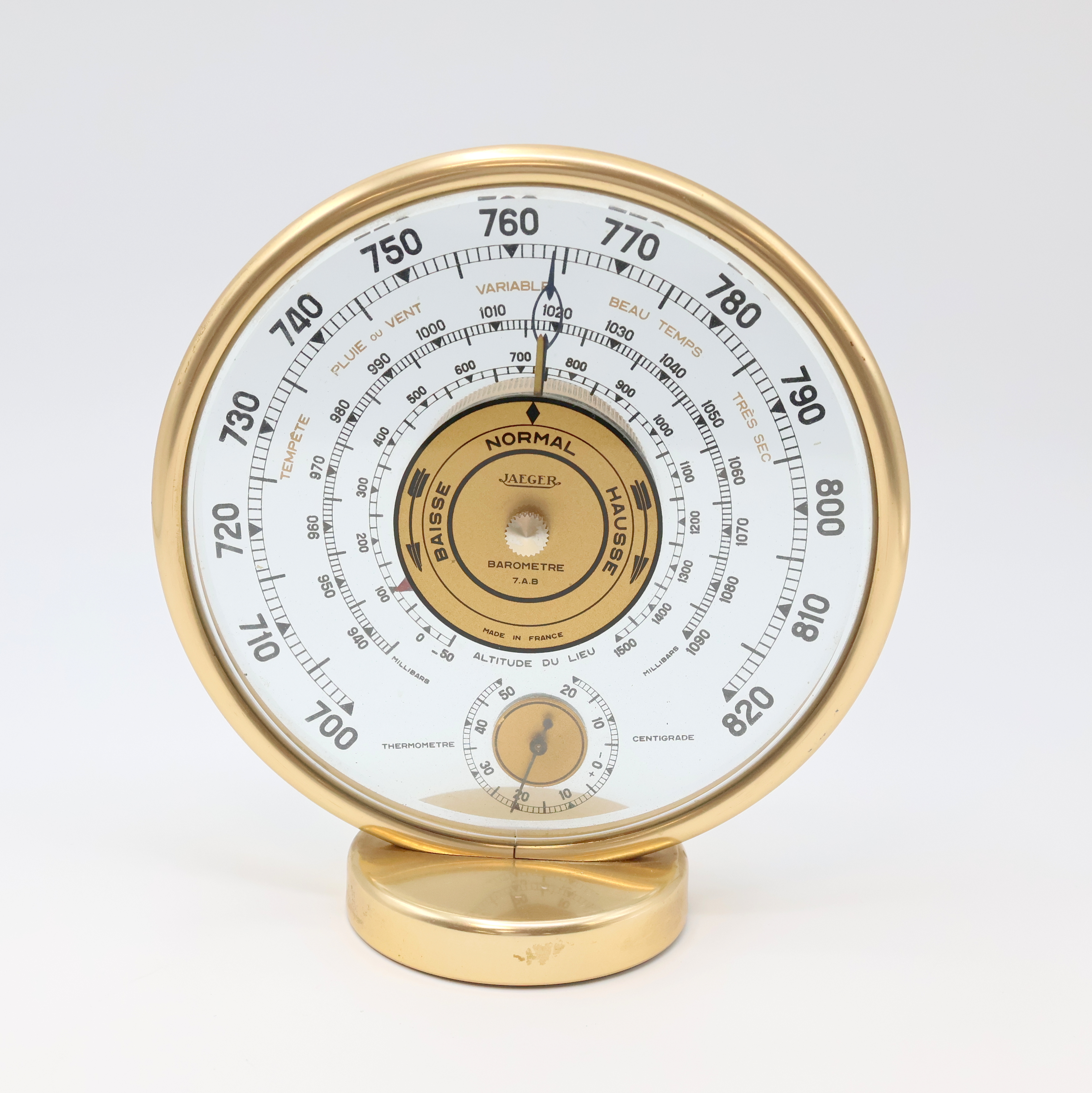 JAEGER Wetterstation mit Glaszifferblatt, Frankreich um 1940, blass-gold eloxierter