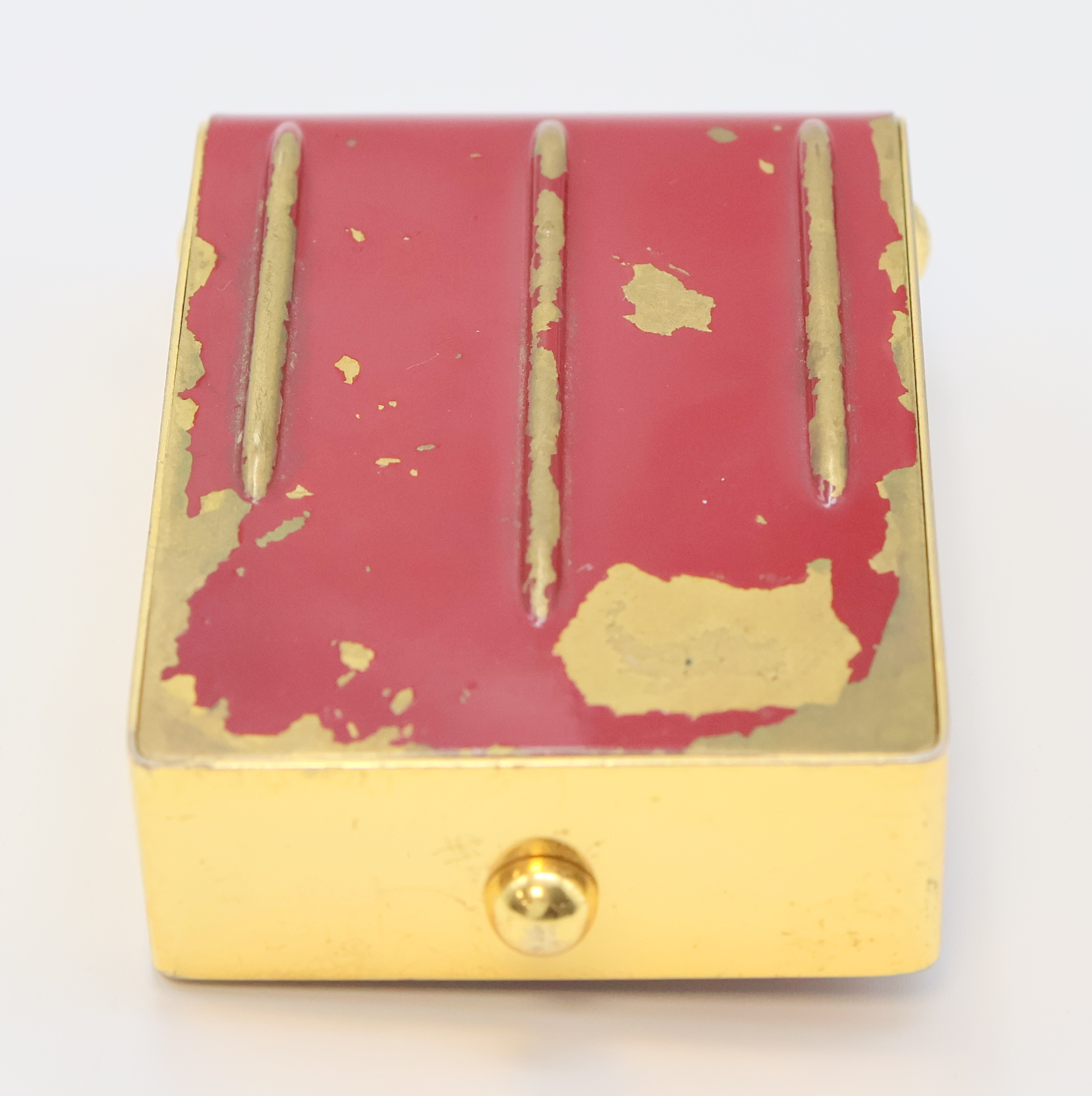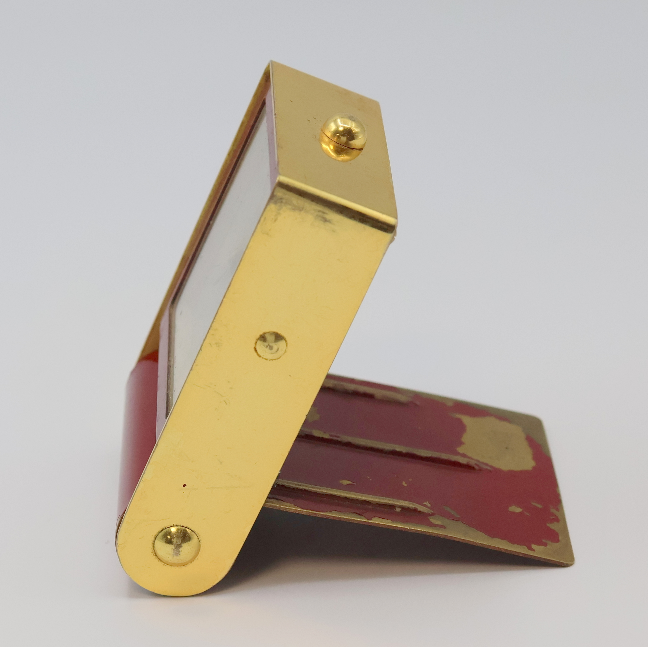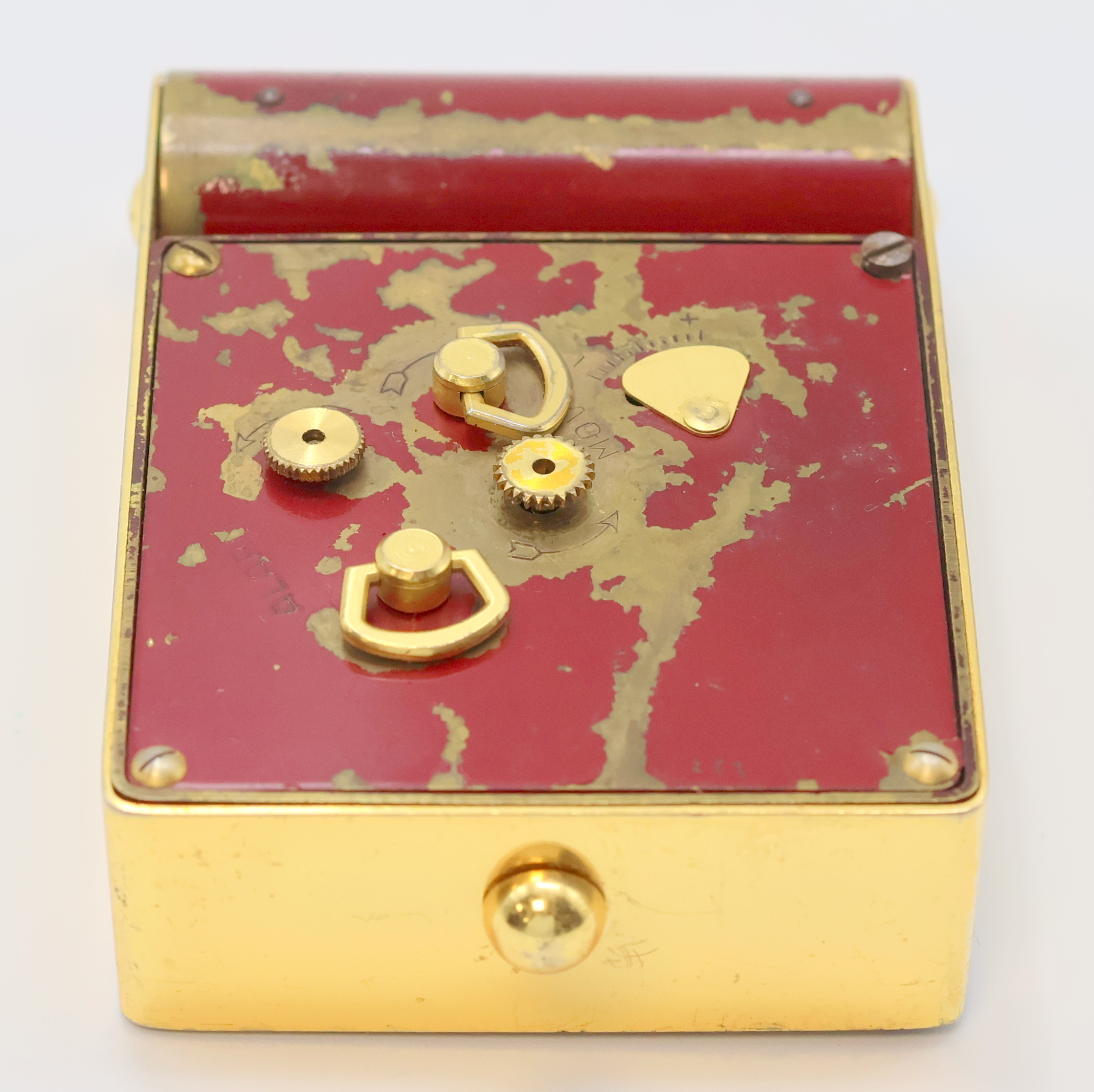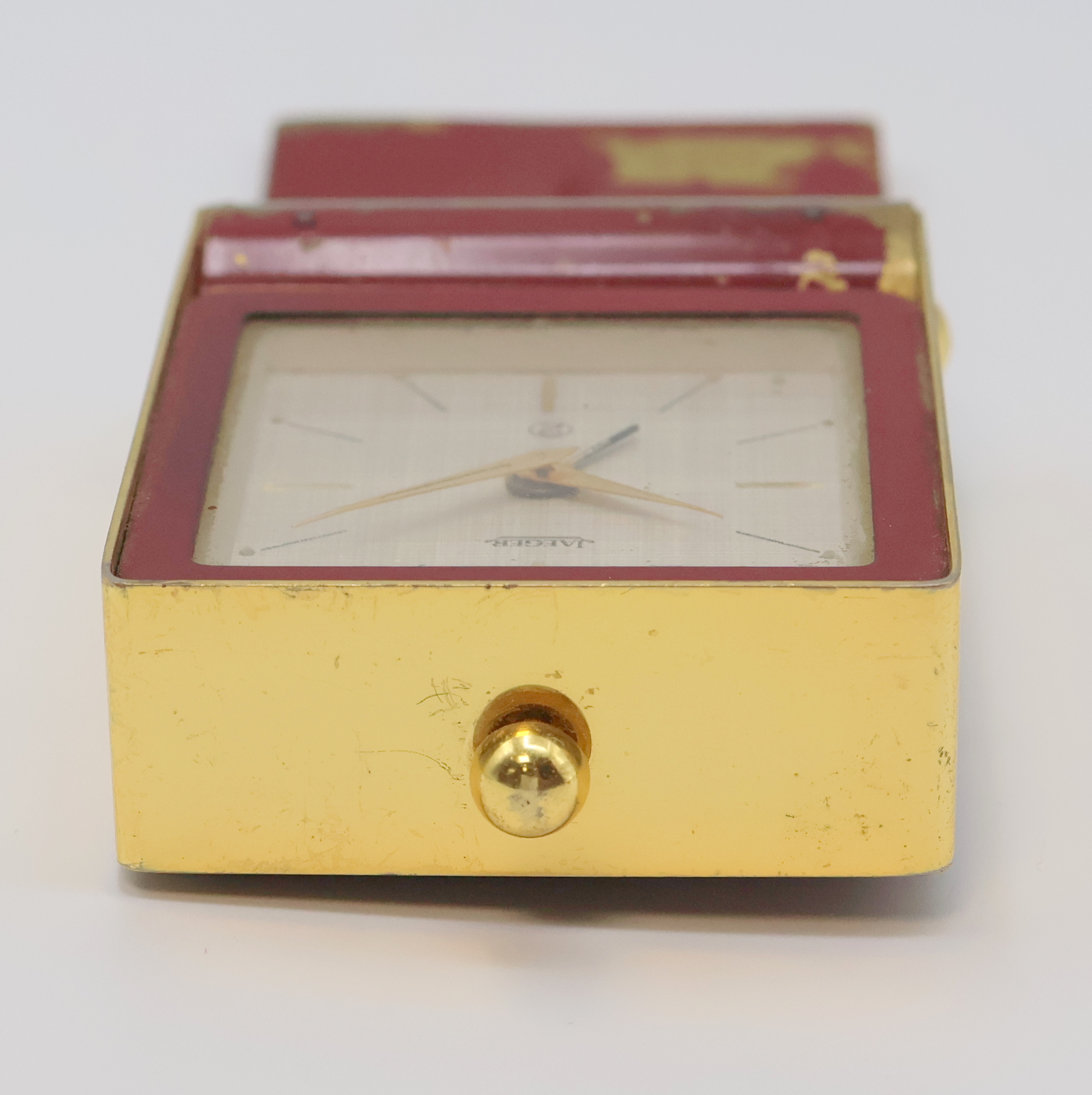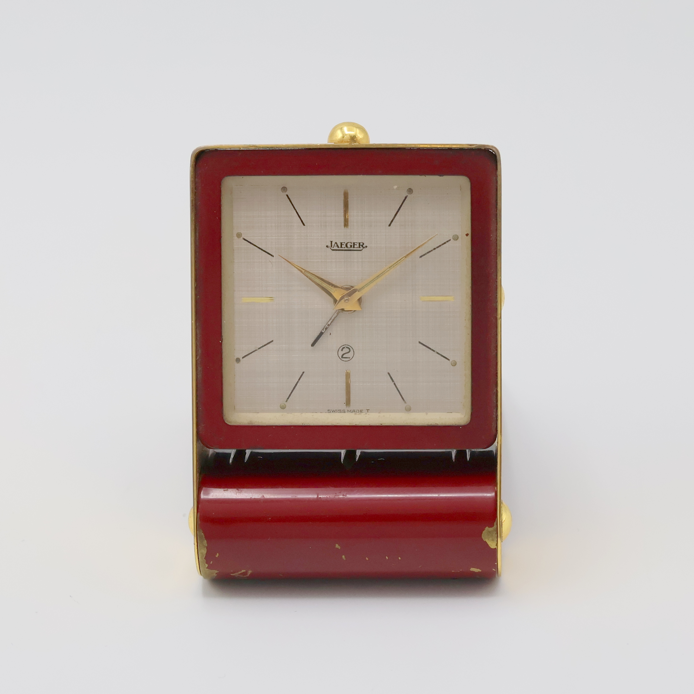 JAEGER 2-Tage Reisewecker, Schweiz um 1960, rot lack. Messinggeh. ber., z. T. verg.,