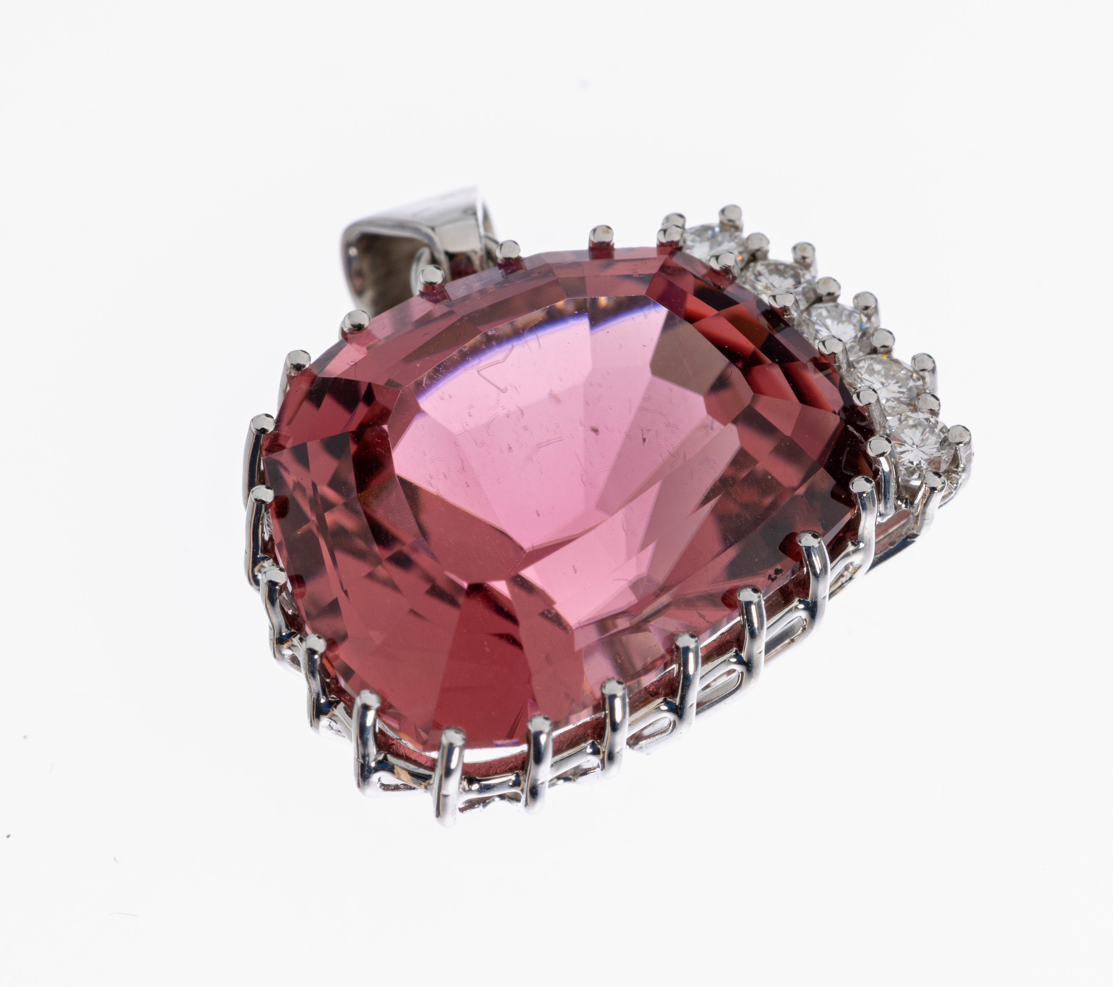14 kt Gold Turmalin-Brillant-Anhänger, WG 585/000, Rubellit im Fantasieschliff ca.