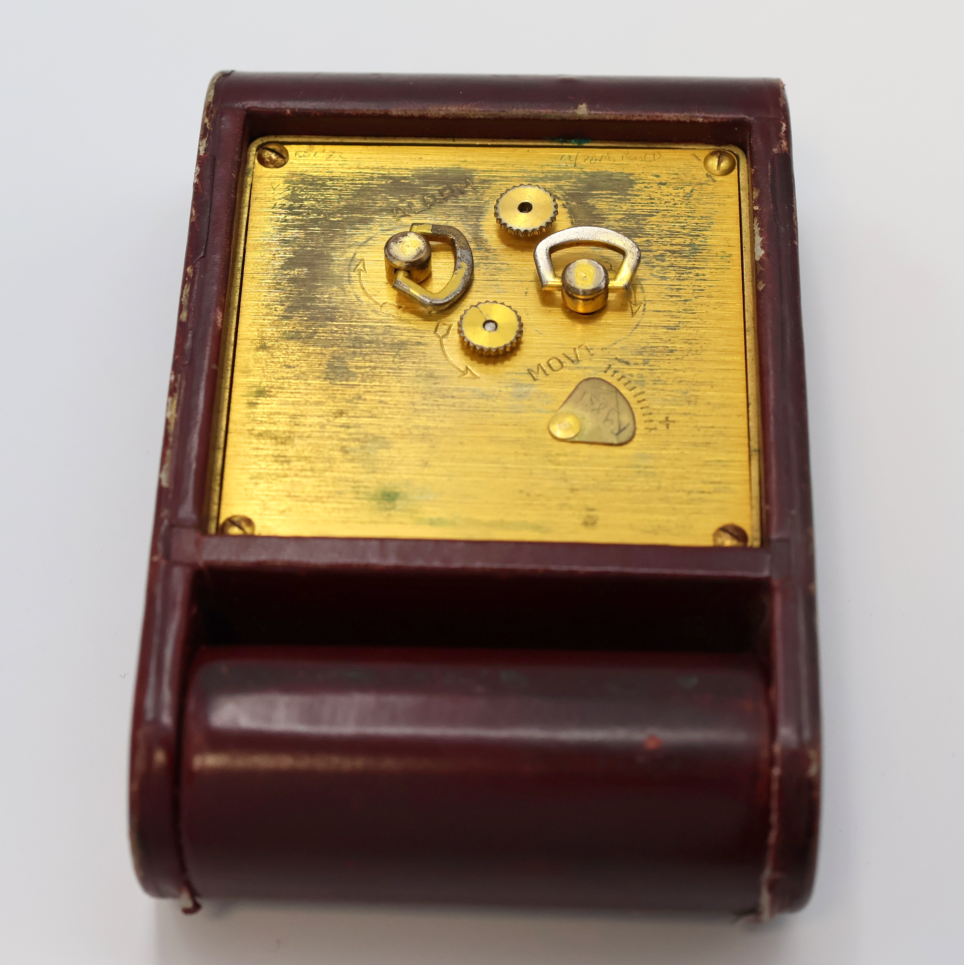 JAEGER 2-Tage Reisewecker, Schweiz um 1940, Leder-bezogenes Metall/Holz-Geh. berieb.,