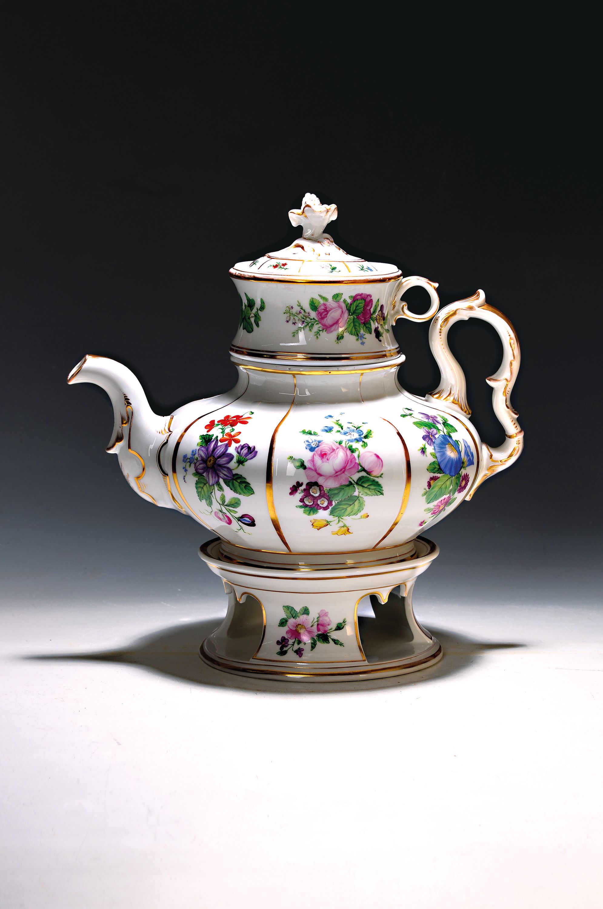 Große Teekanne mit Stövchen und Einsatz, SPM Berlin Moabit, um 1900, Porzellan,