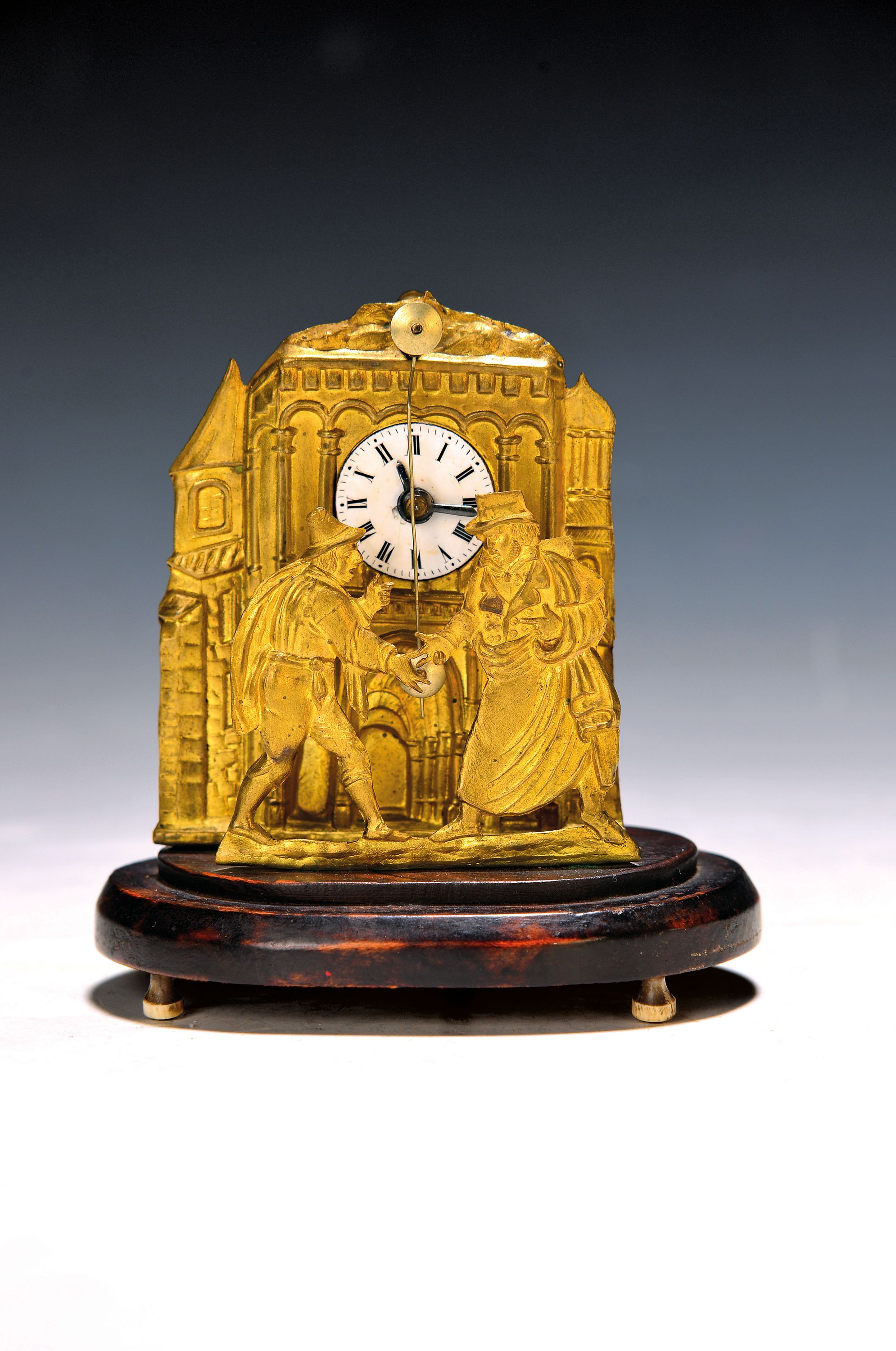fehlt, im Vordergrund zwei Händlerfiguren, Marktplatz vor Kirche, Emailzifferblatt,