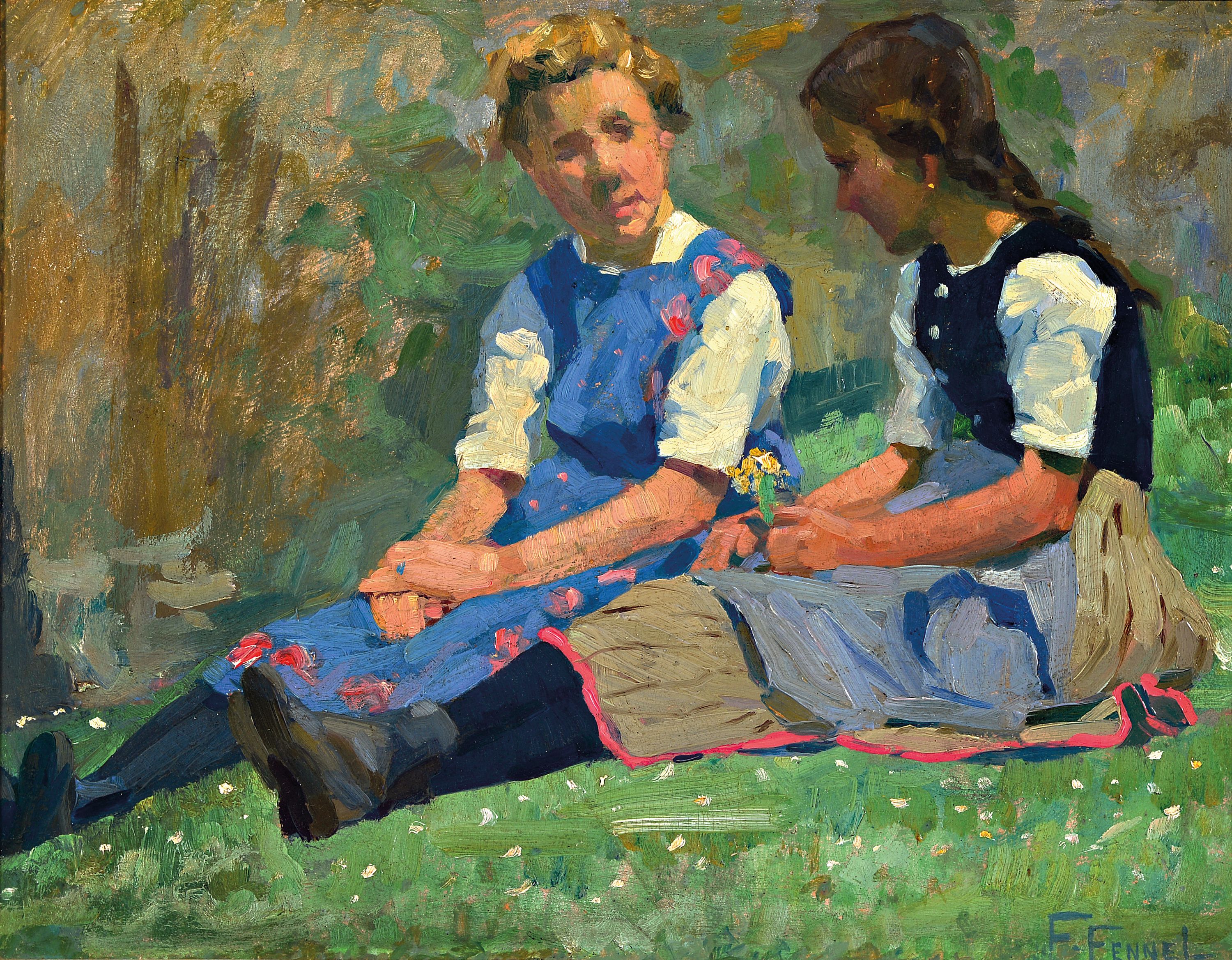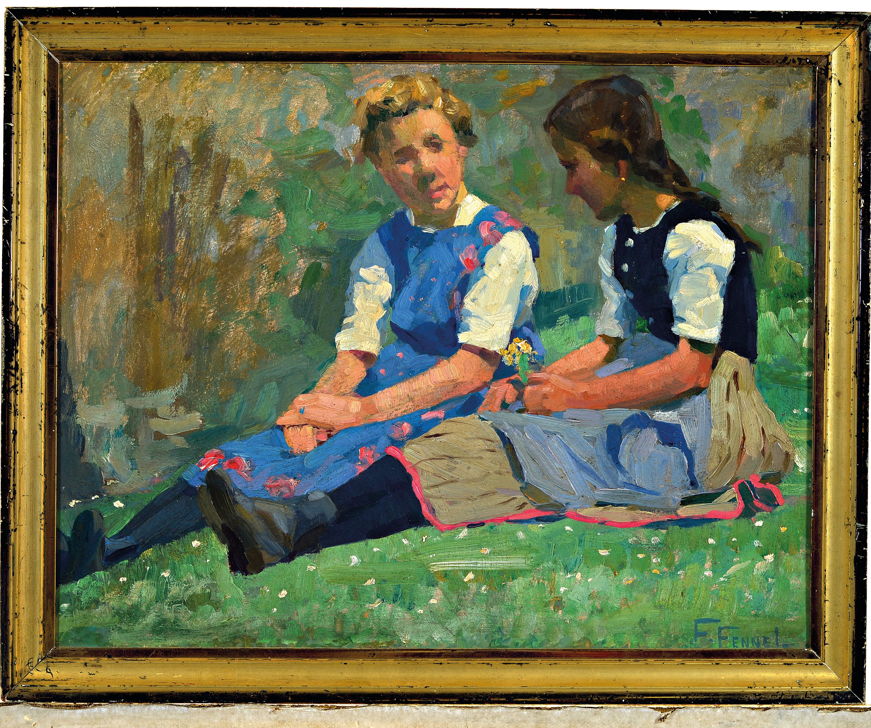 1910, Öl/Lwd, "zwei Mädchen", re.u. signiert, ca. 36x 46 cm, Dieses Werk ist unter