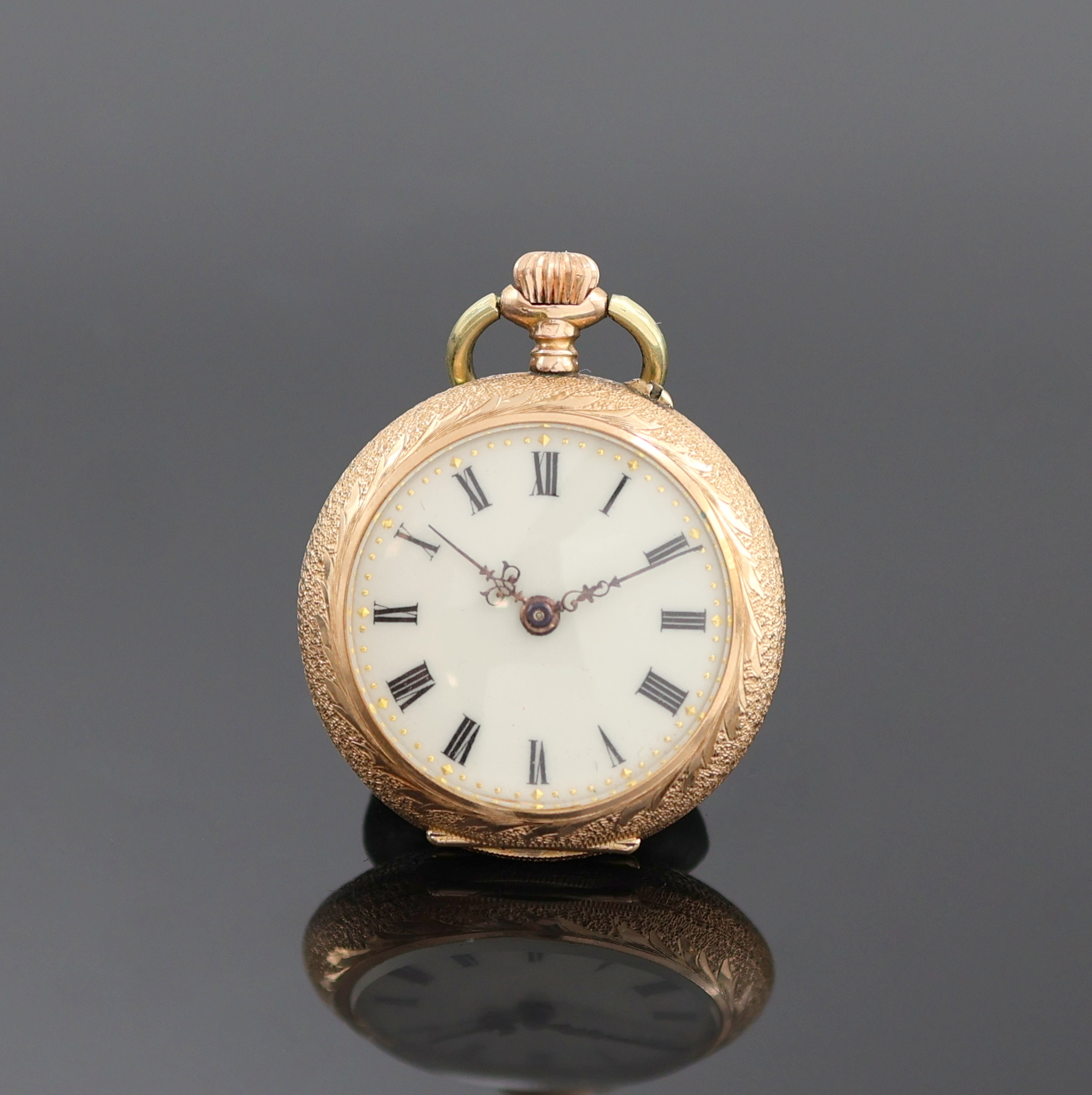 Kleine Damensavonette in RG 585/000, Schweiz um 1900, floral verziertes u. reich