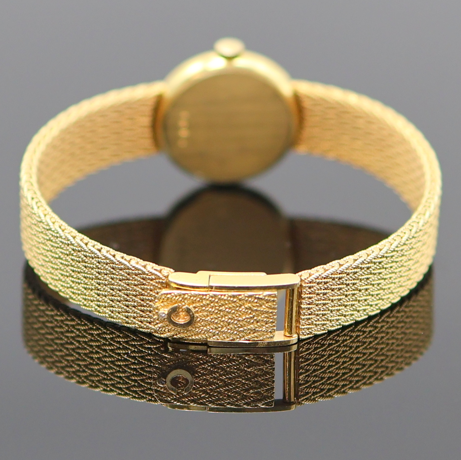 quarz, orig. Goldband, Boden aufgedr., Lünette aufw. m. Diamanten bes., champagnerfarb.