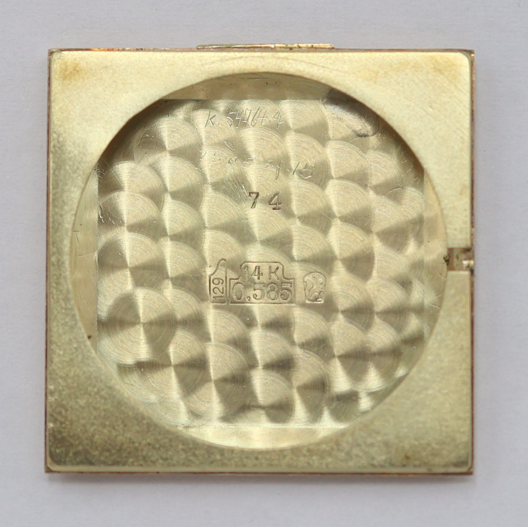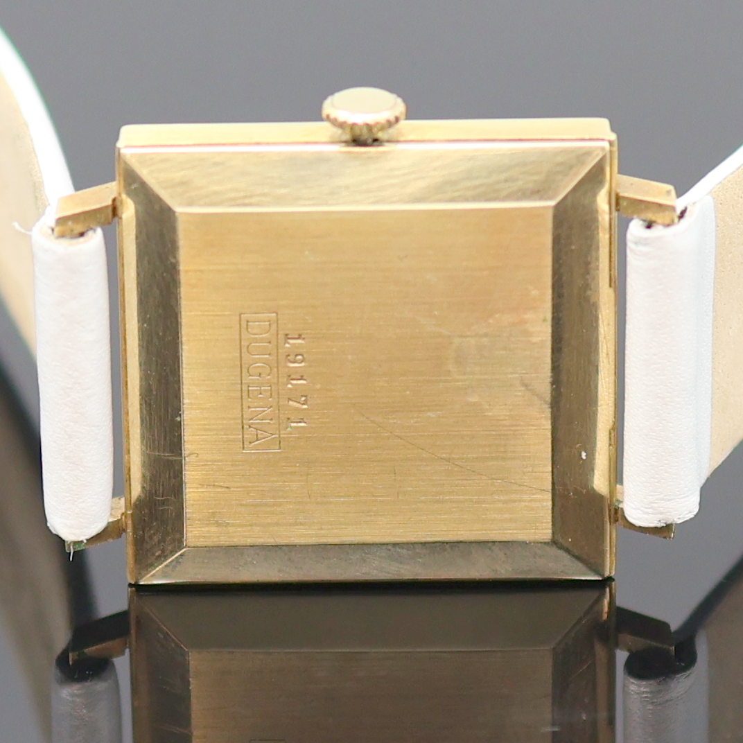 DUGENA Precision quadratische Armbanduhr in GG 585/000, Schweiz um 1965, Handaufzug,