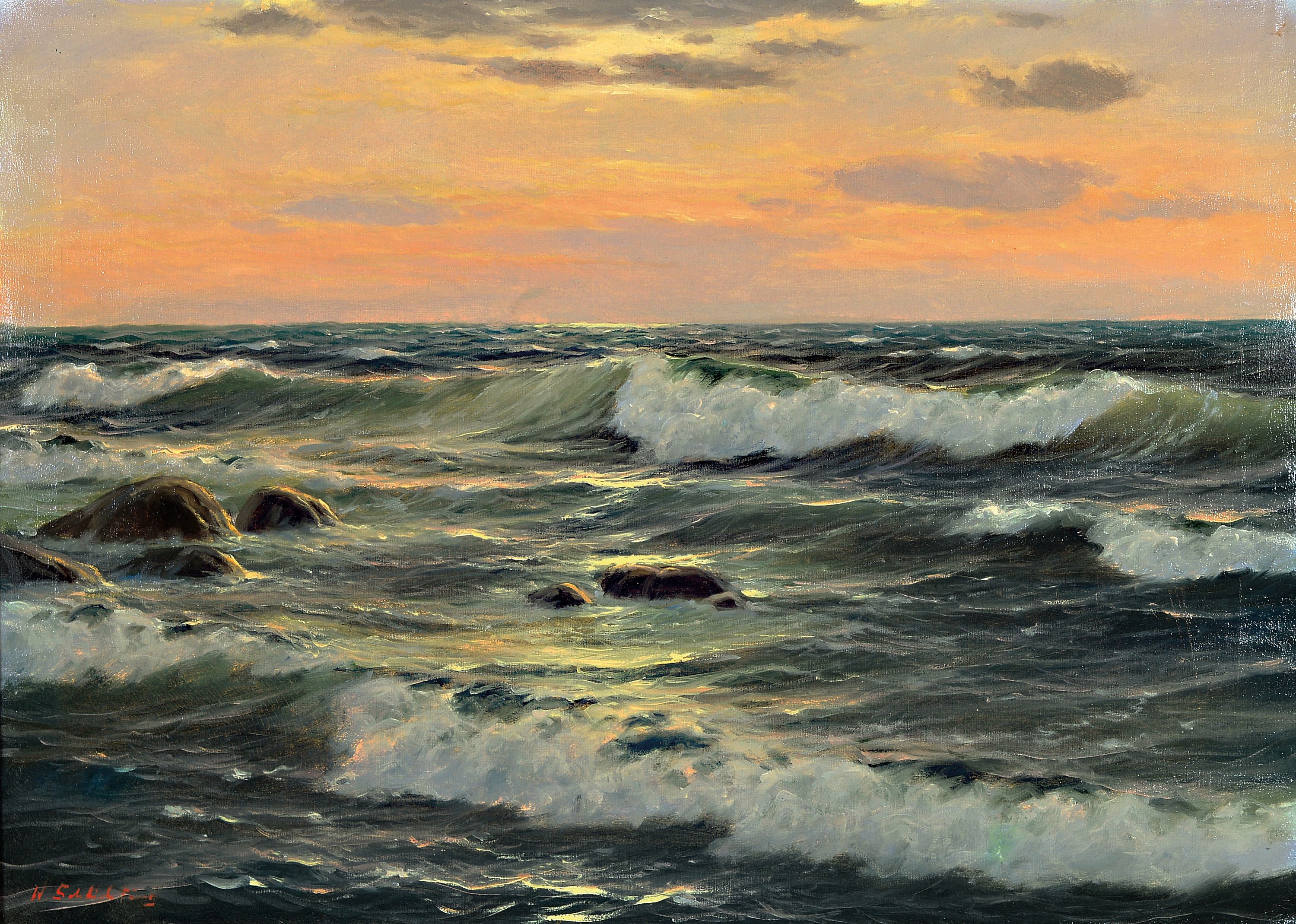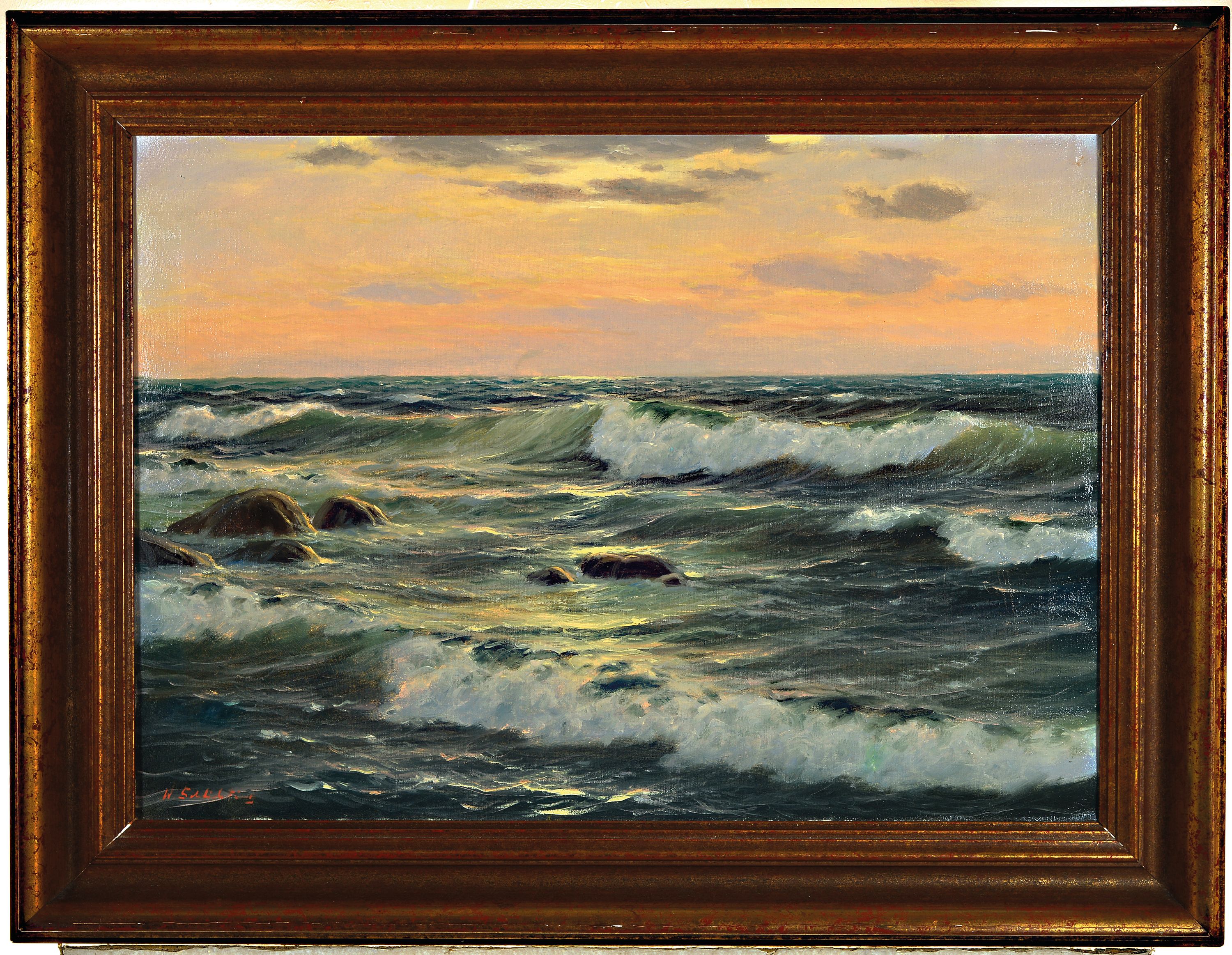 Waldemar Schlichting, 1896-1970 Berlin, Meeresbrandung bei Sonnenuntergang, verso