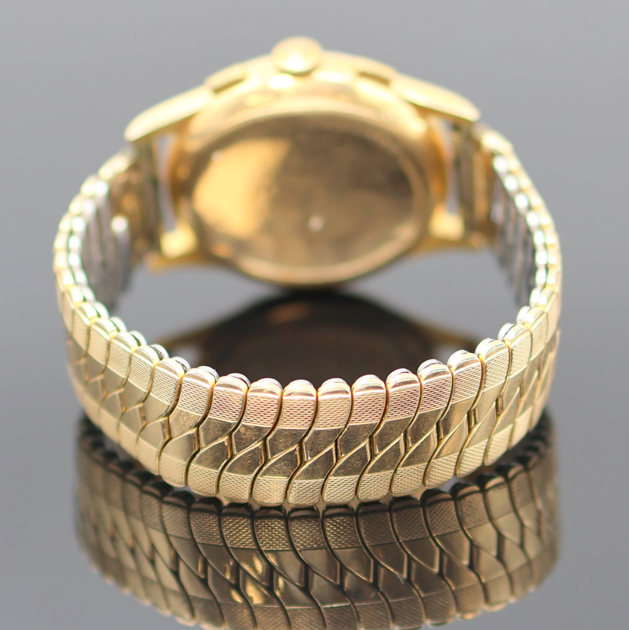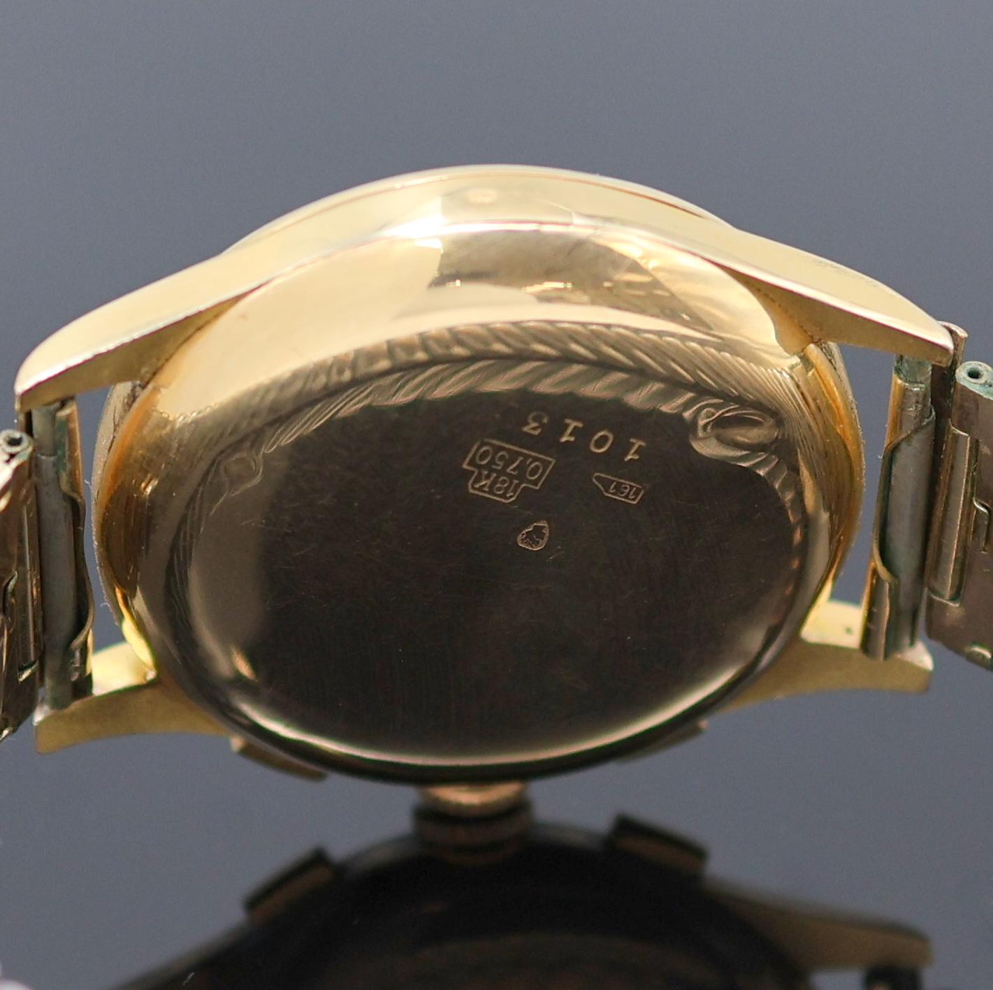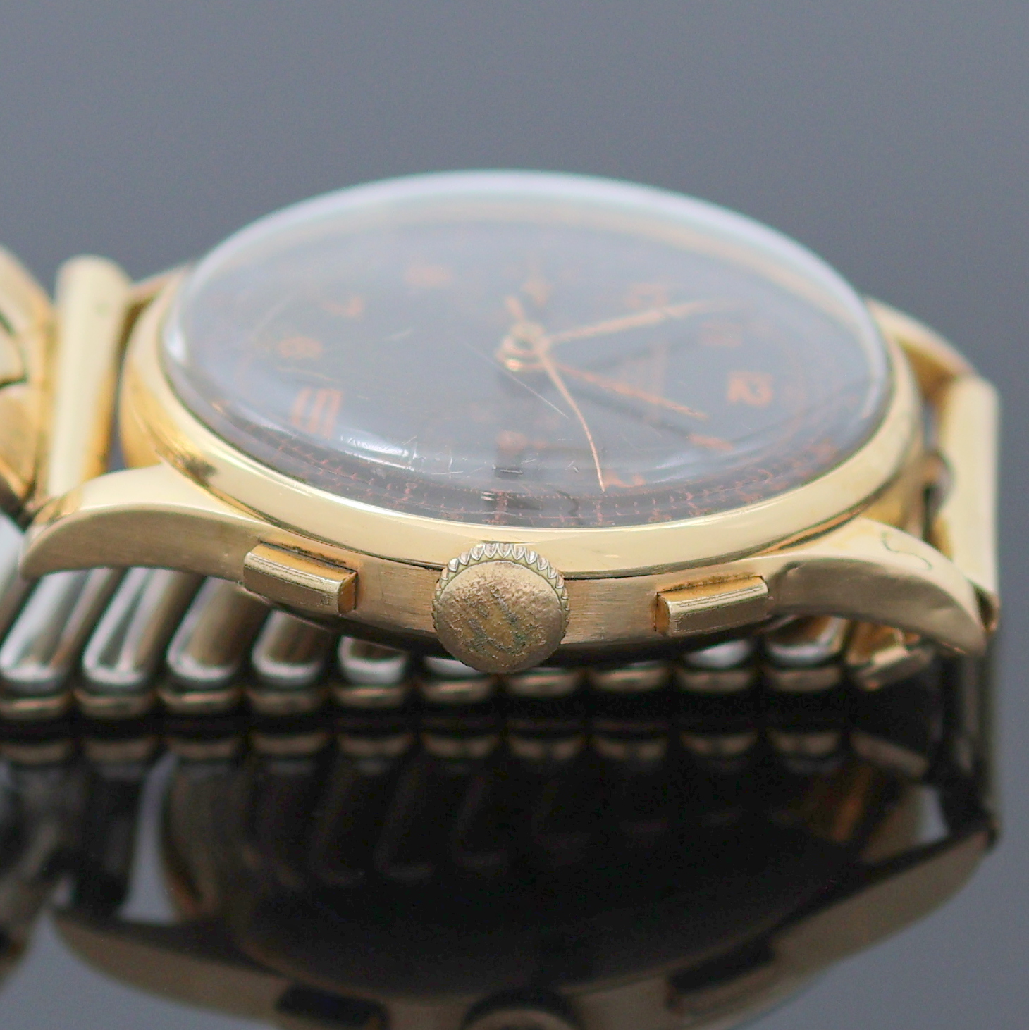 Geh. dell., Boden aufgedr., verg. Flexband, Metall Innendeckel, dunkelbraunes Zifferbl.,