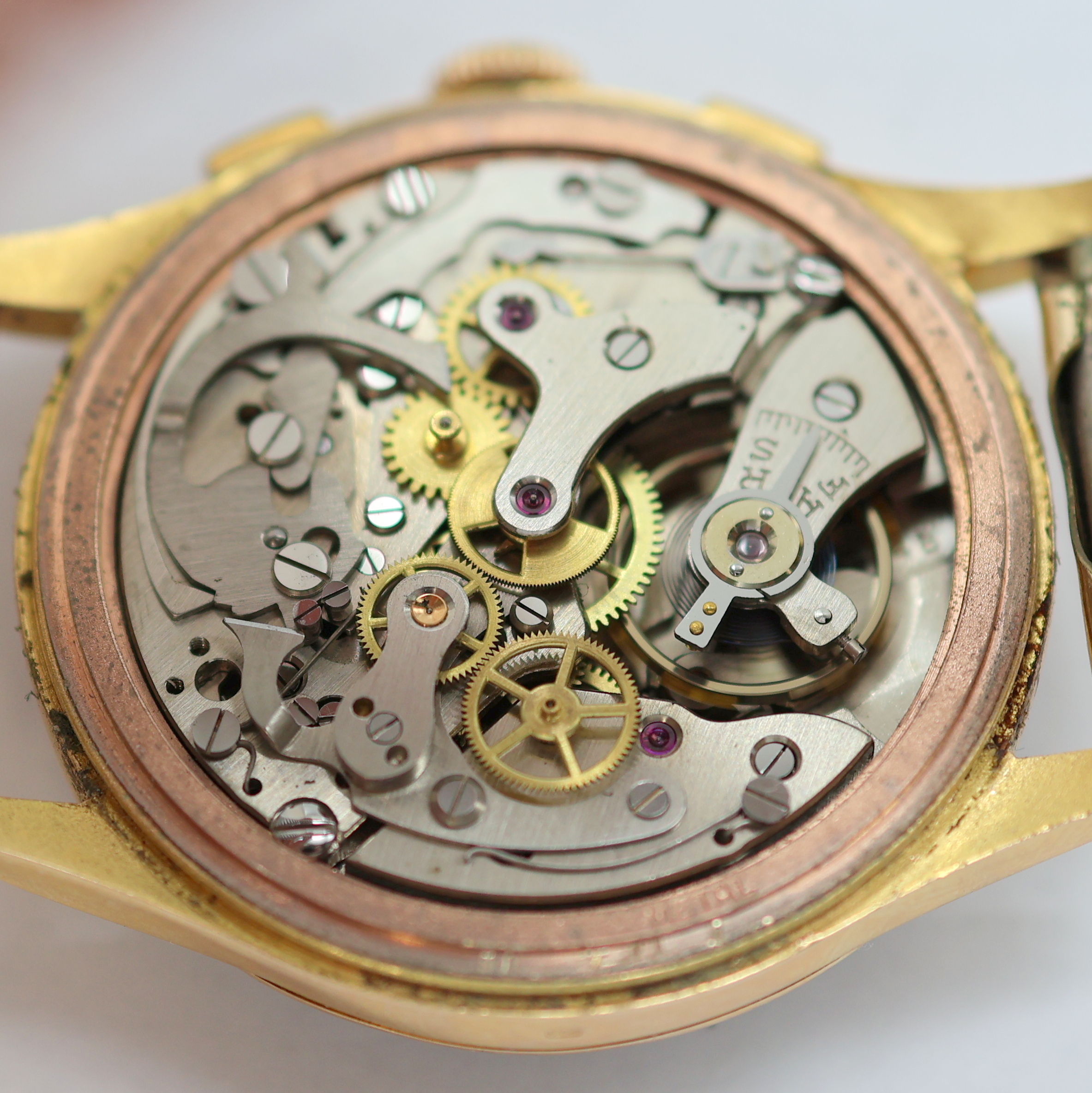 CHRONOGRAPHE SUISSE Armbandchronograph in RoseG 750/000, Schweiz um 1950, Handaufzug,