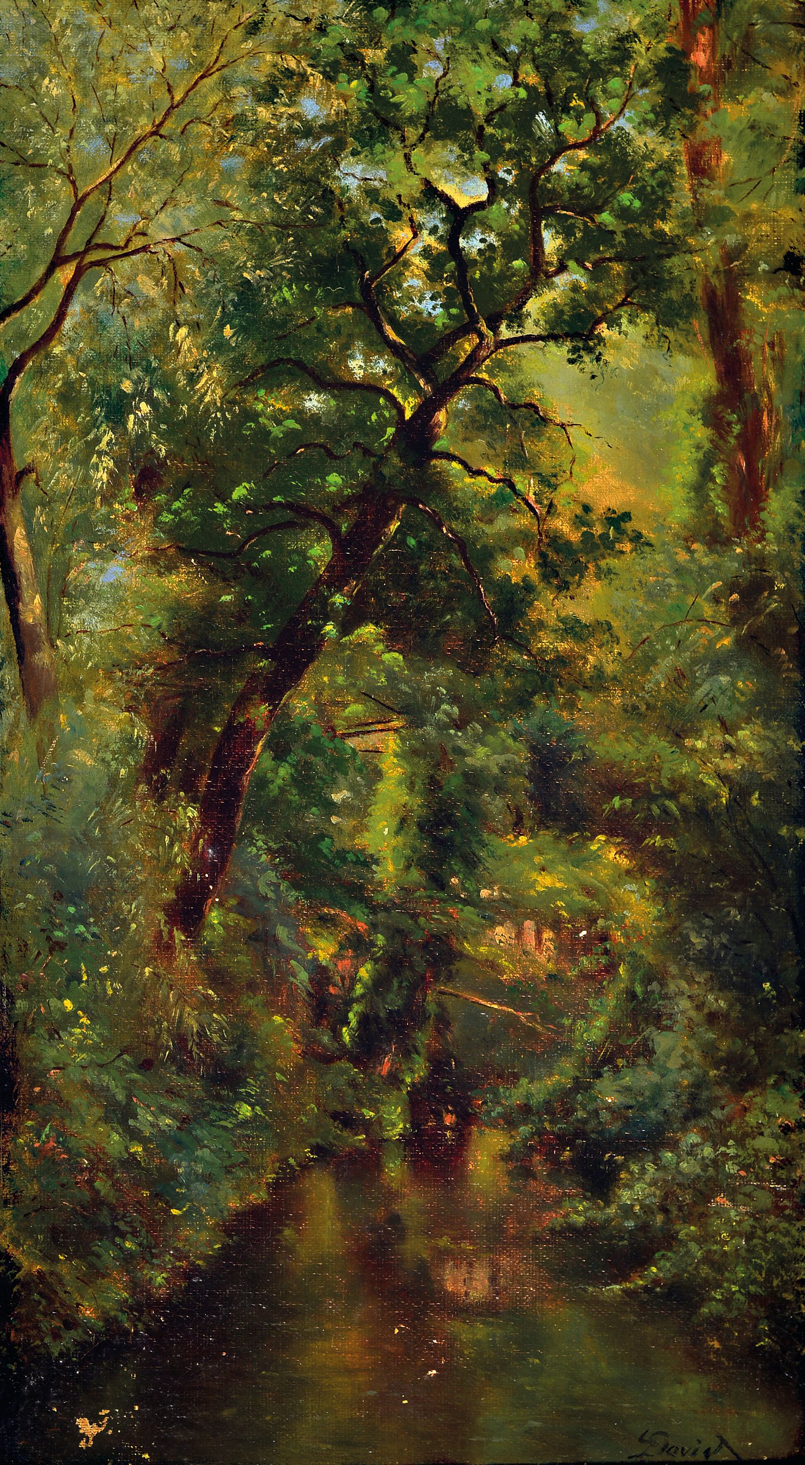 Öl/Lwd, rechts unten sign. L. David, ca. 45x26cm, R.ca. 53x33cm, 1x dicht bewachsenes