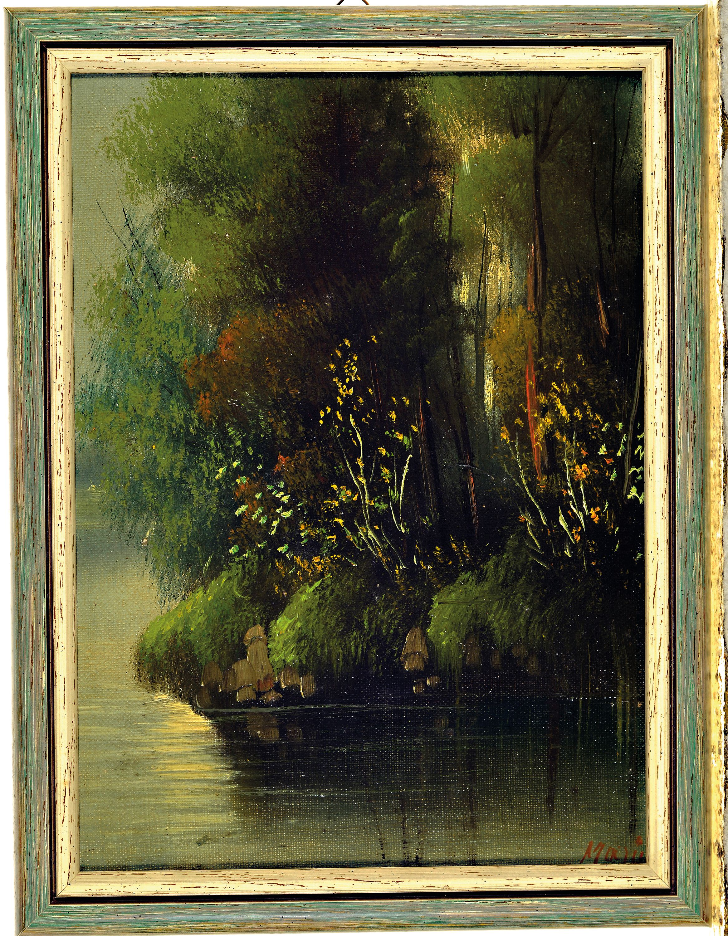 Ufer eines Gewässers, Öl/Malkarton, rechts unten sign. Marie, ca. 28x21cm, R. ca.
