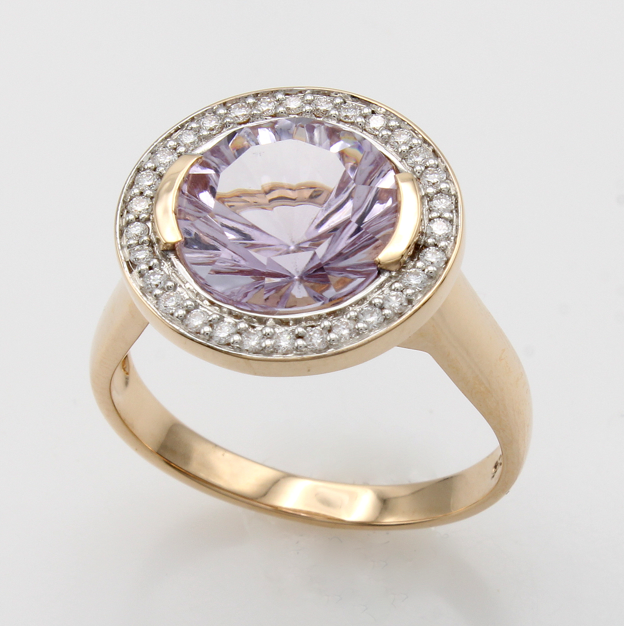 Ring mit Amethyst und Brillanten, RoséG 585/000, fliederf. Amethyst ca. 3.5 ct, Brill. zus. ca. 0.18 ct Weiß/si, RW ca. 56 Schätzpreis: 2800, - EUR