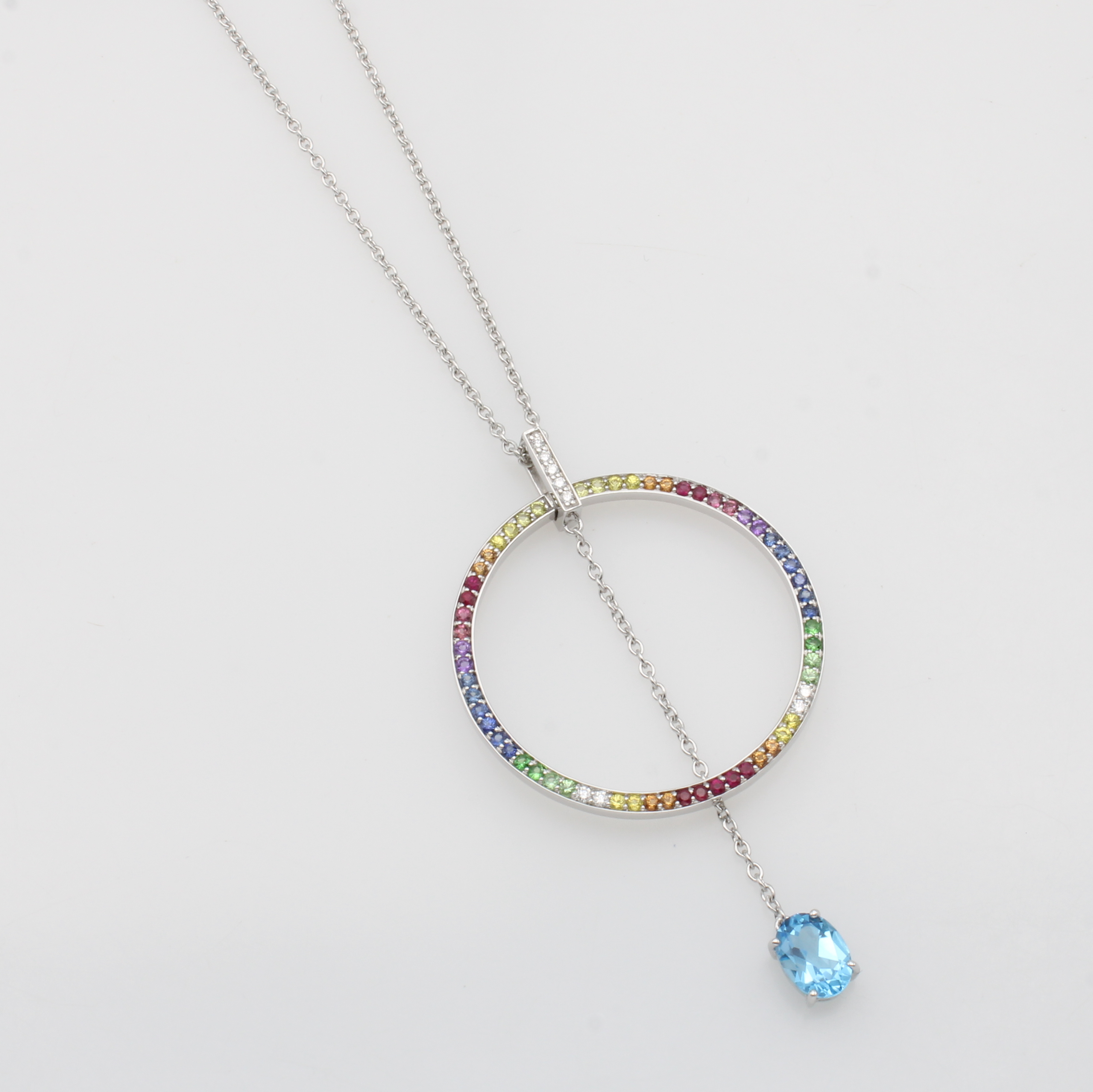 Anhänger mit Farbsteinen und Brillanten an Kette, WG 585/000, Blautopas (beh.),