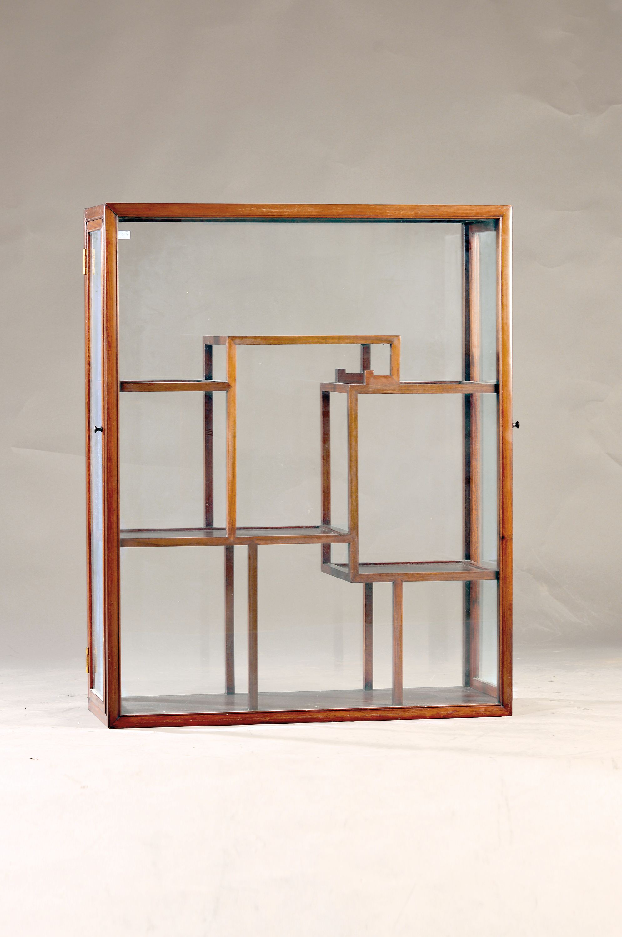 Schaukasten bzw. vierseitig verglaste Vitrine, China, 20.Jh., Mahagoni, allseitig