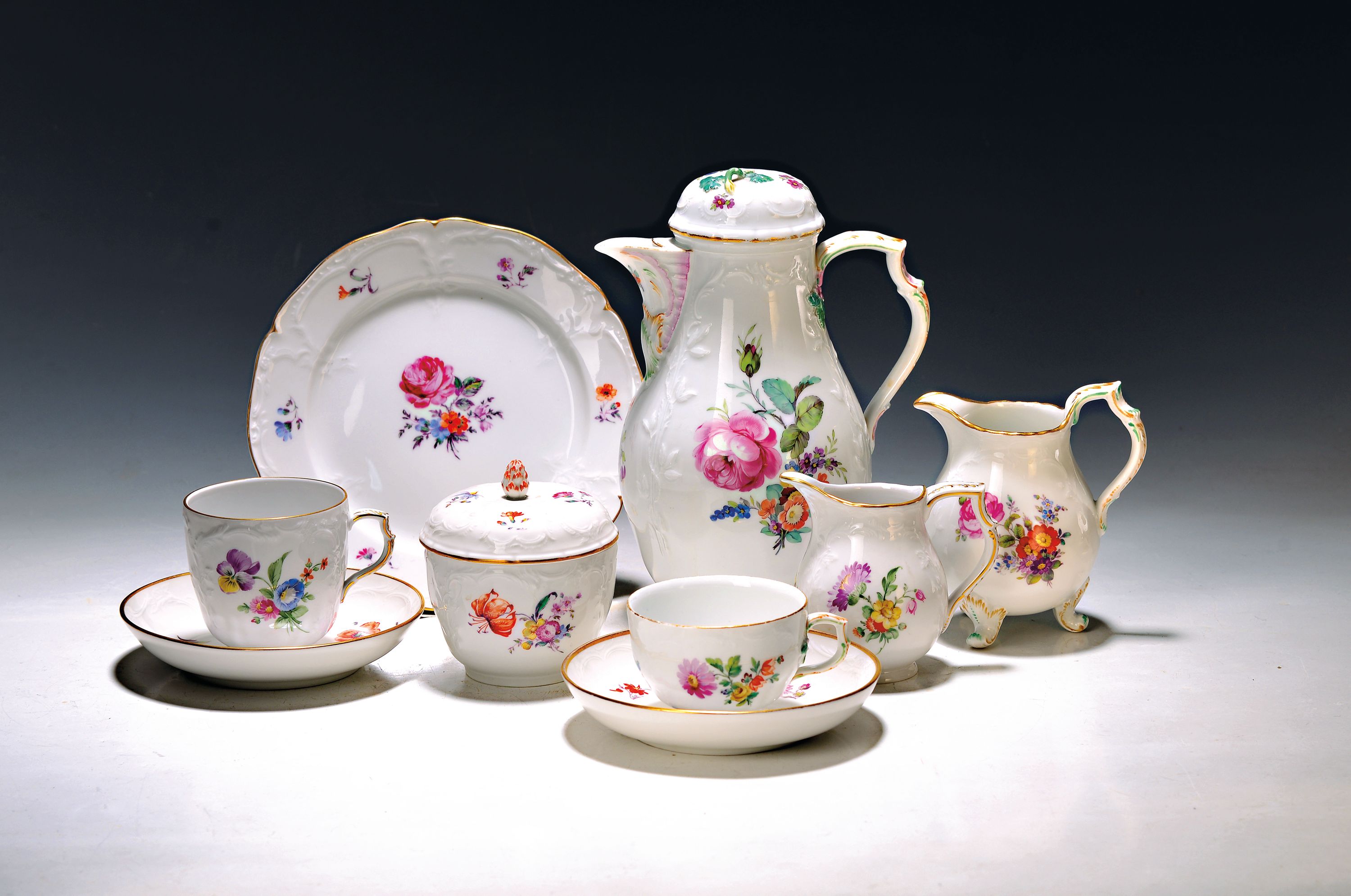 Service, KPM Berlin Neuzierat, Anfang 20. Jh., Hausmalerei, Kaffeekanne ( Deckelbekrönung