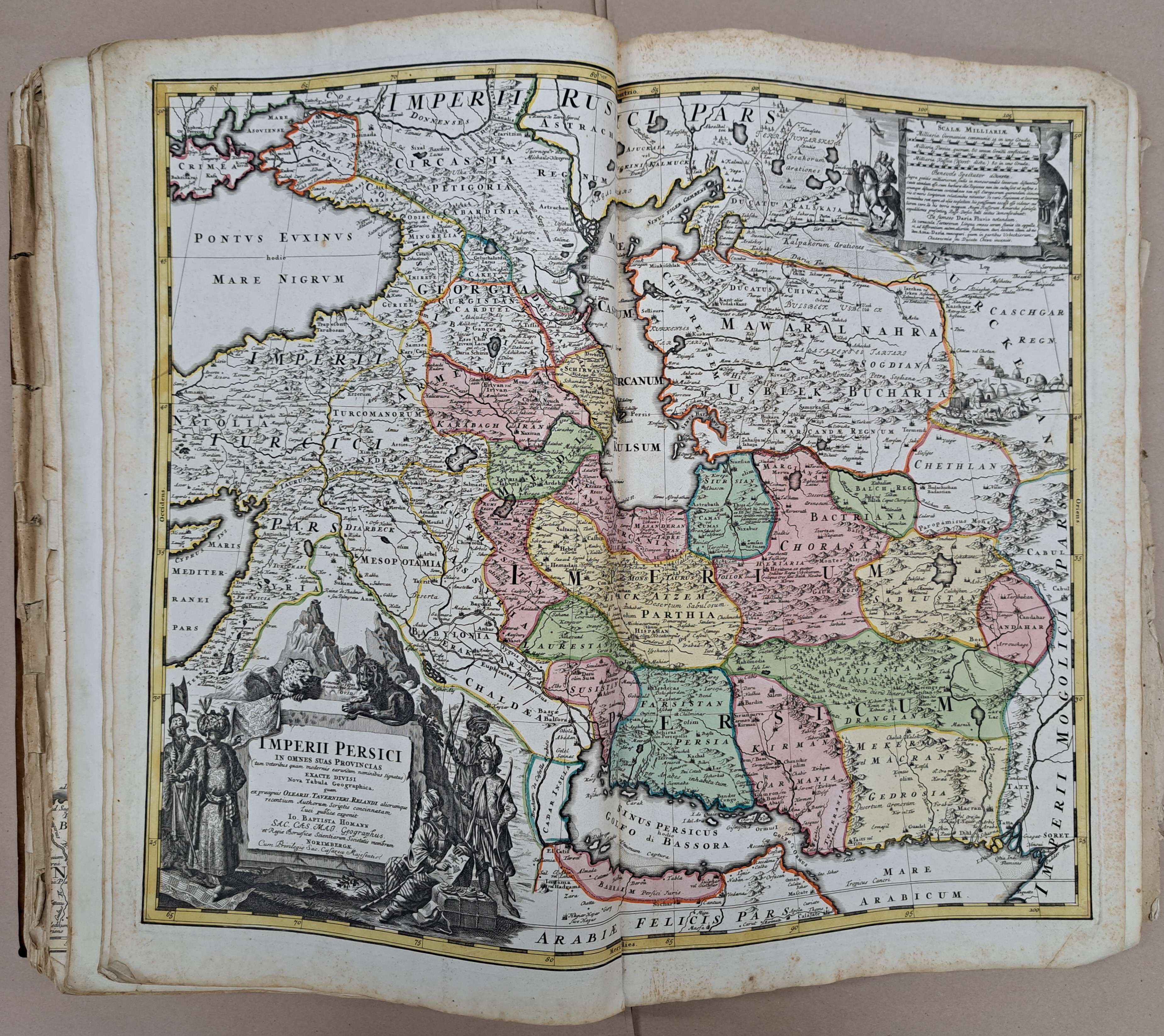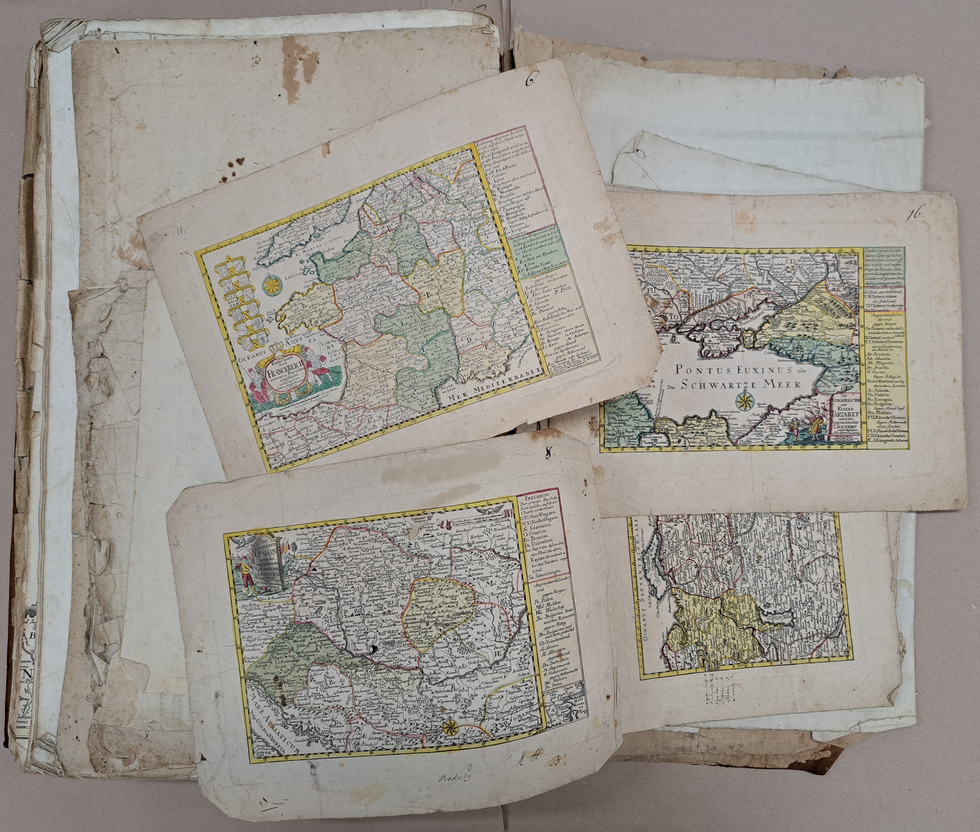 der Bindung offenbar, diverse eingelegte Einblattdrucke z.B. Matthäus Seutter (1678-1756):