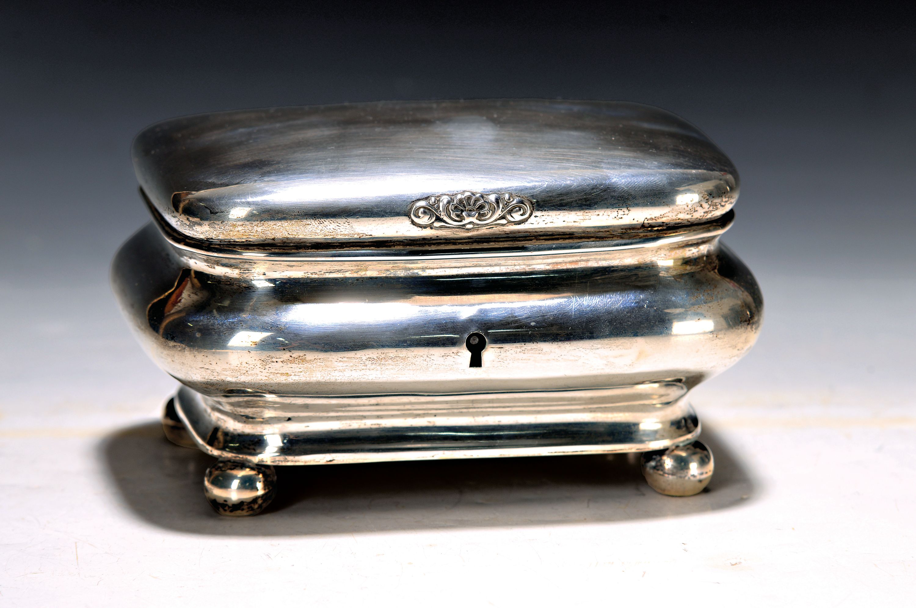 Deckeldose, deutsch, Mitte 19. Jh., 13-lötiges Silber, auf 4 Kugelfüßen stehend,