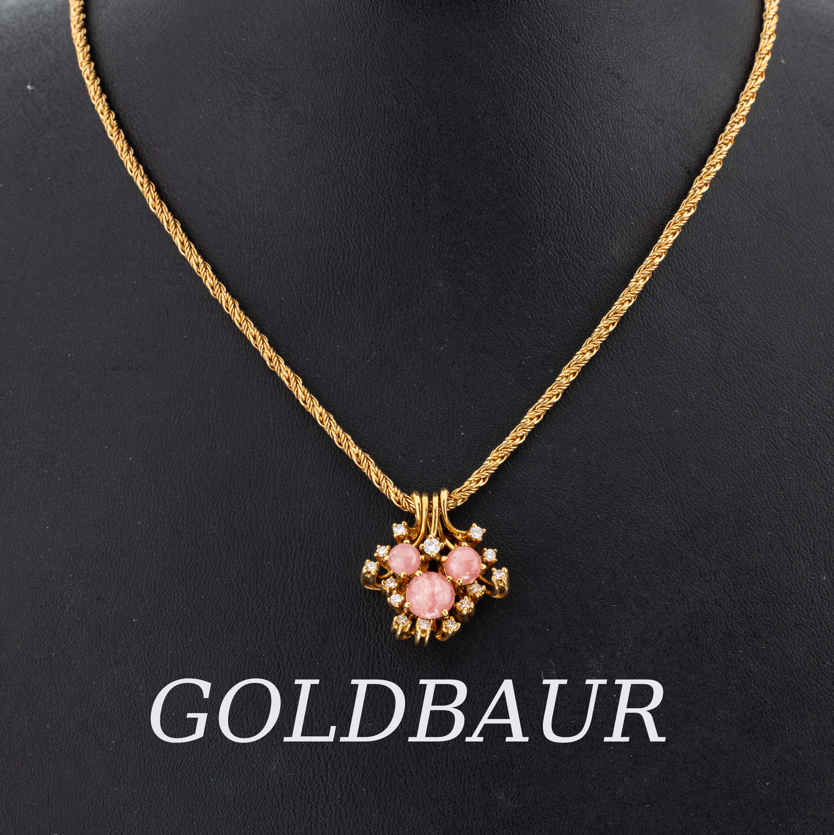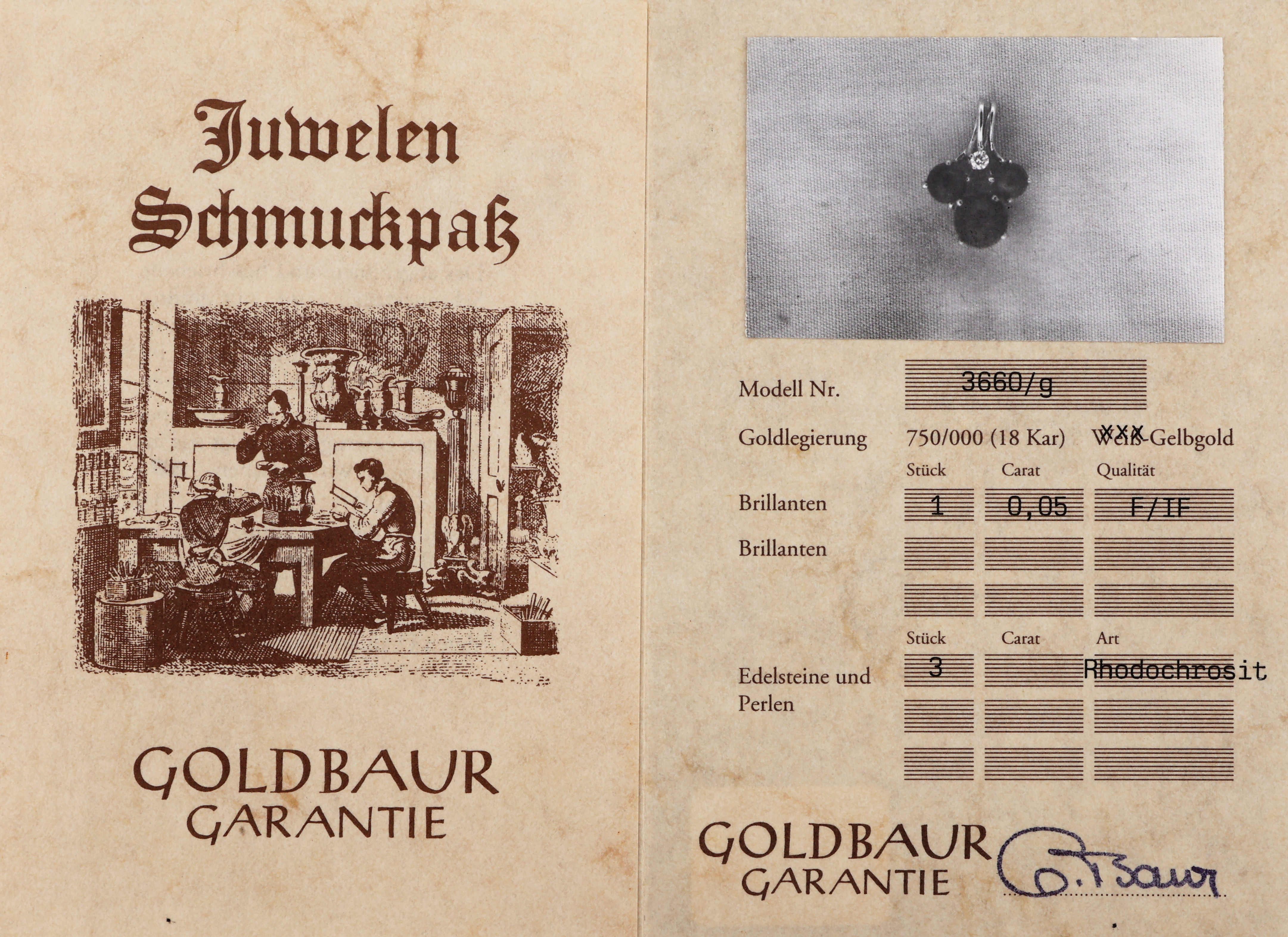 18 kt Gold GOLDBAUR Rhodochrosit-Brillant- Anhänger, GG 750/000, 3-tlg., 1 x mit