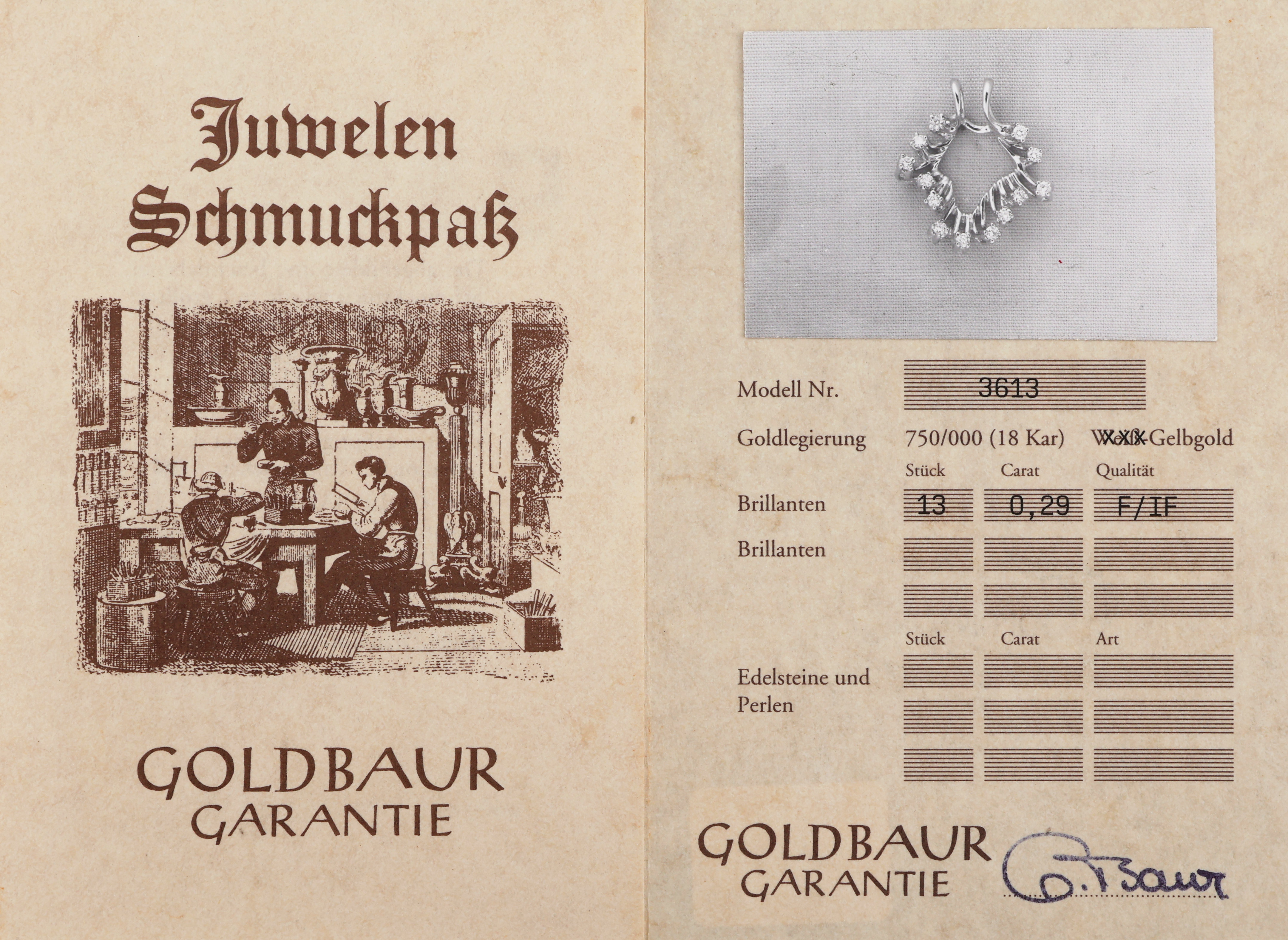 Weiß/lp, 1 x bes. mit 13 Brillanten zus. ca. 0.29 ct feines Weiß/lp, an Kordelkette,