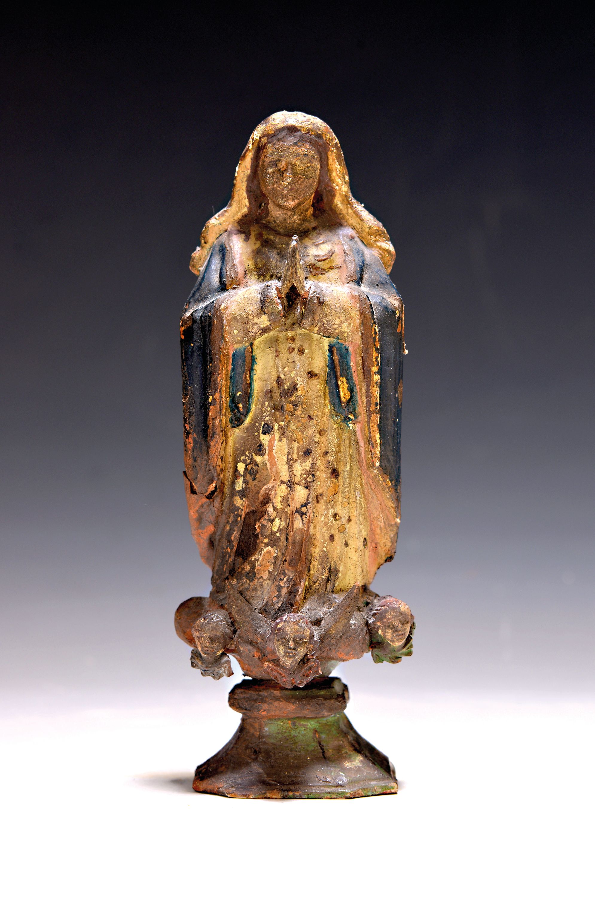 Fassung, stehend auf Wolke mit drei Putti und Mondsichel, H. ca. 19c