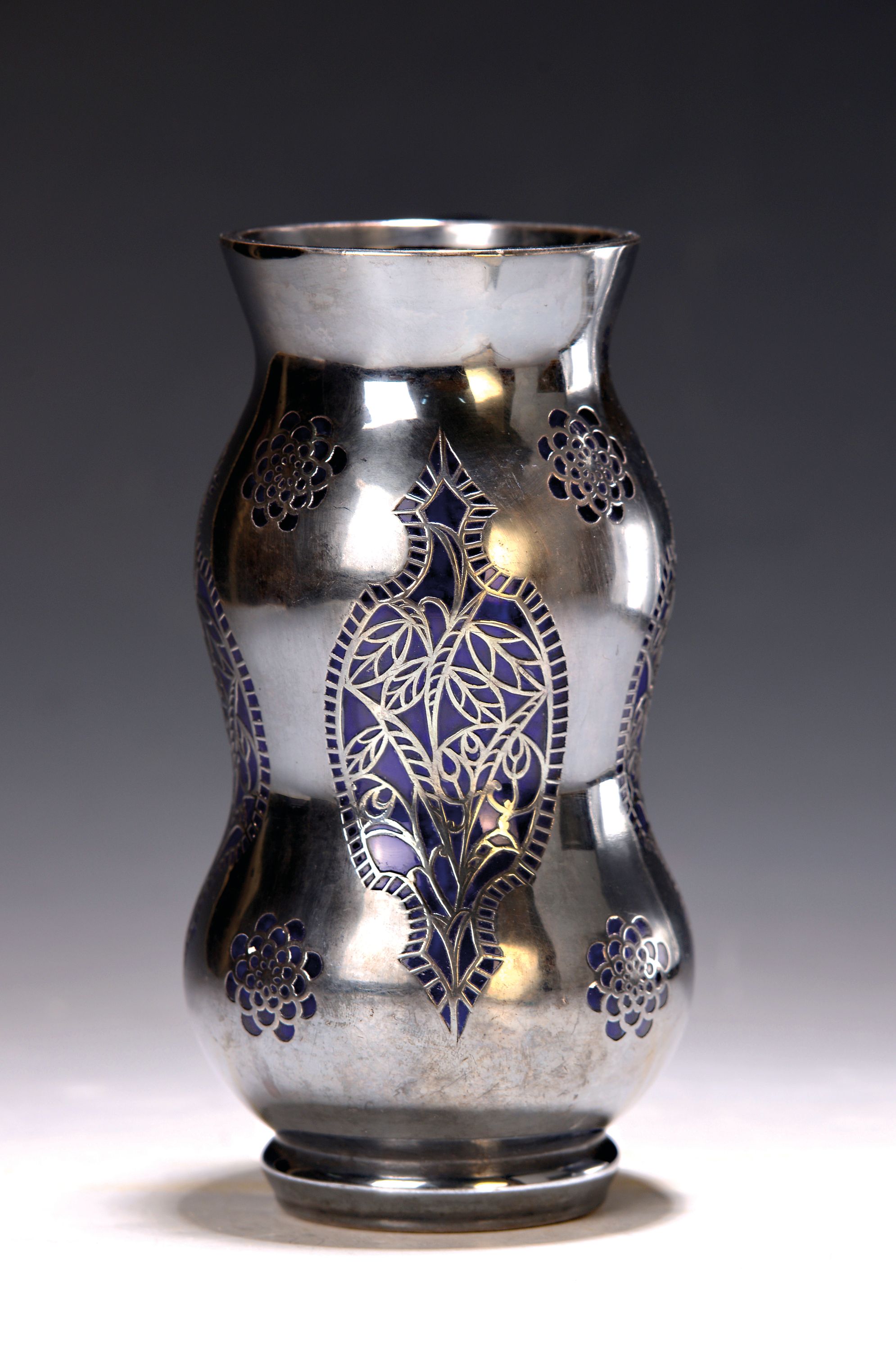 Vase, deutsch, um 1910-20, blaues Glas mit reichem Silver-overlay, H. ca. 18cm