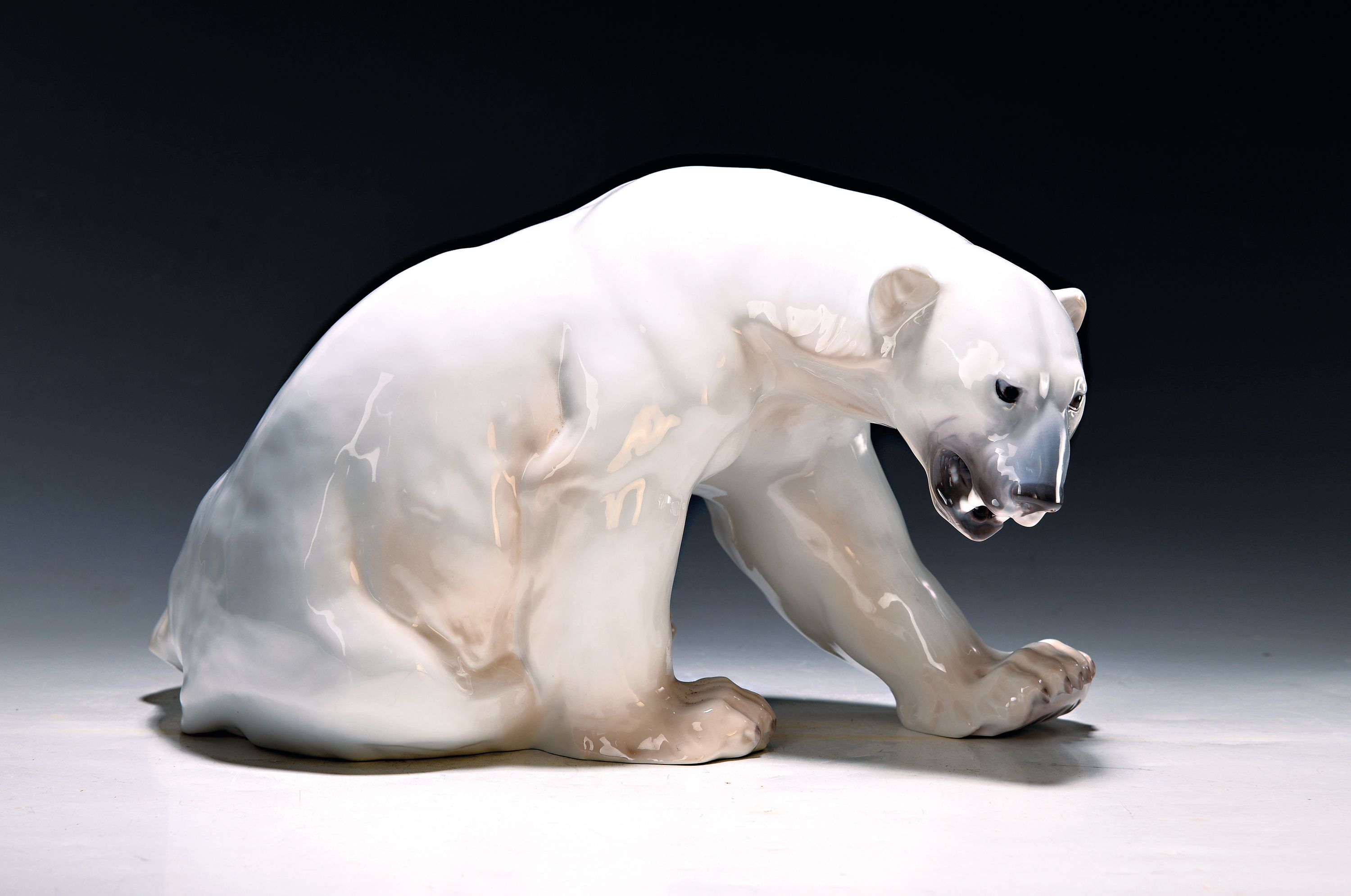 Große Porzellanfigur, Bing & Grondahl, Entwurf Knud Kyhn, Eisbär, naturalistisch