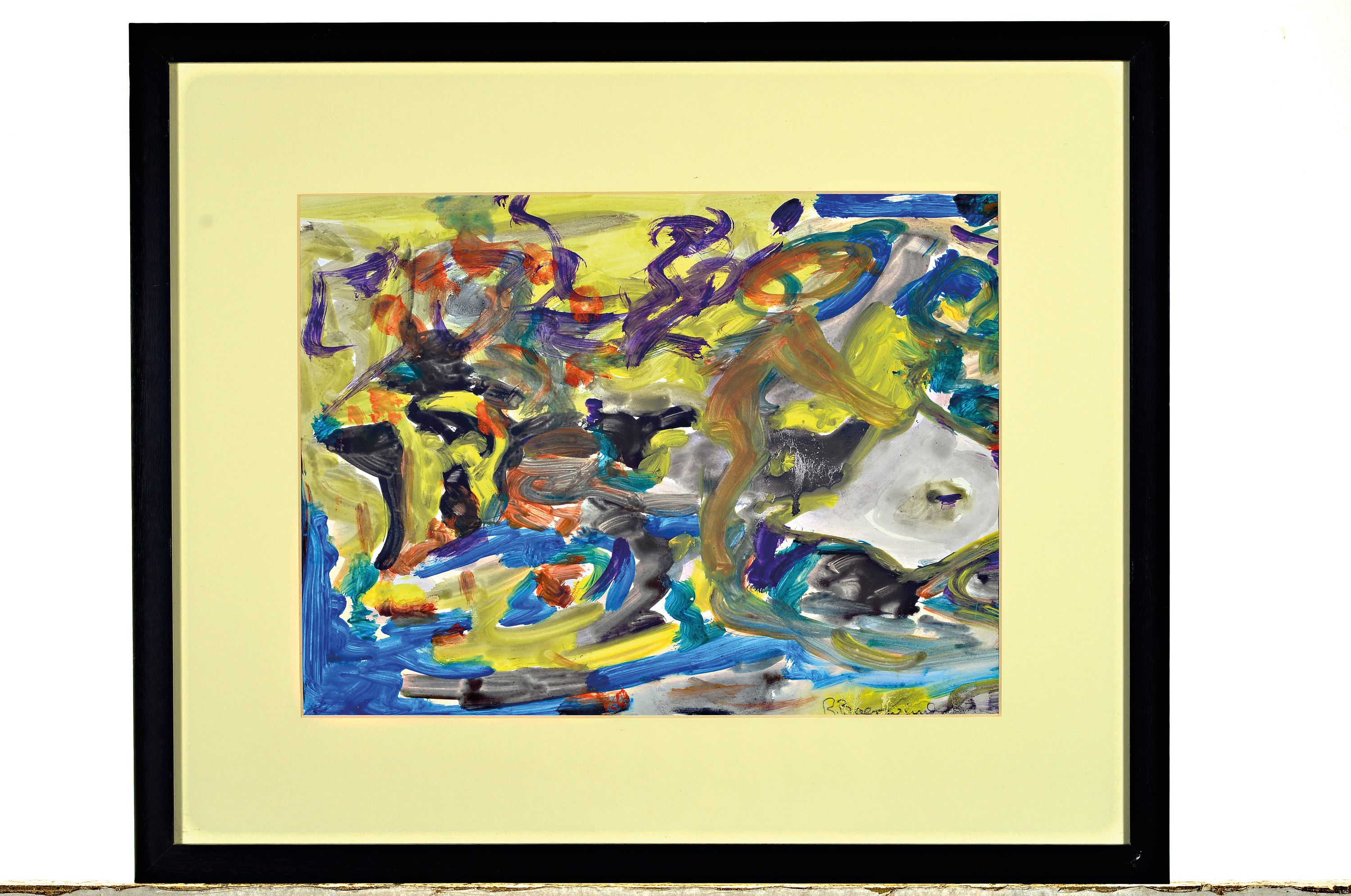 Rudi Baerwind, 1910-1982, abstrakte Figuren-Komposition, 1950/60er-Jahre, Gouache auf Papier, unter PP und Glas gerahmt 44x54 cm