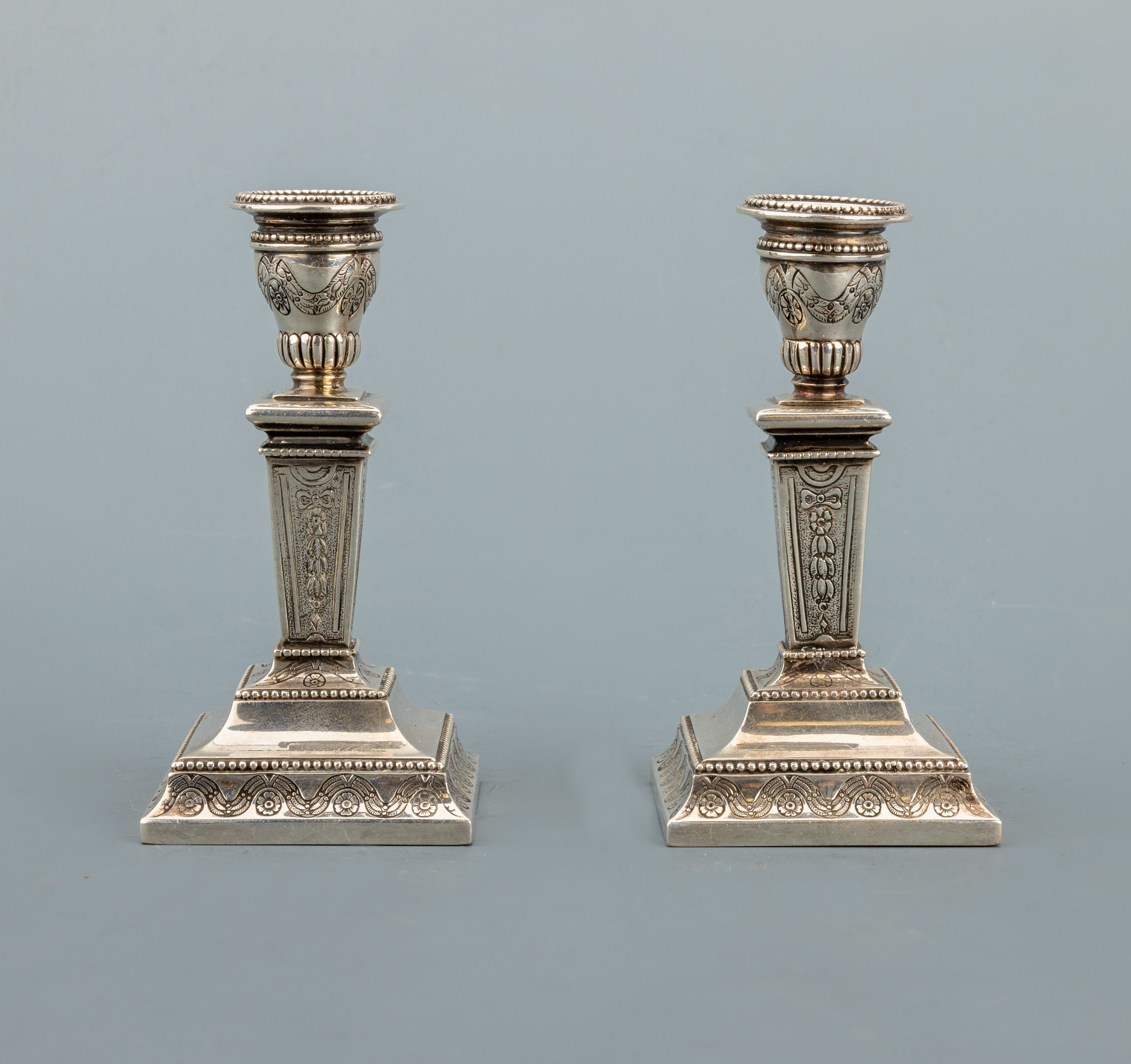 Set 2 Kerzenständer, wohl um 1900, 925er Silber, klassizistisches Dekor, säulenartig,