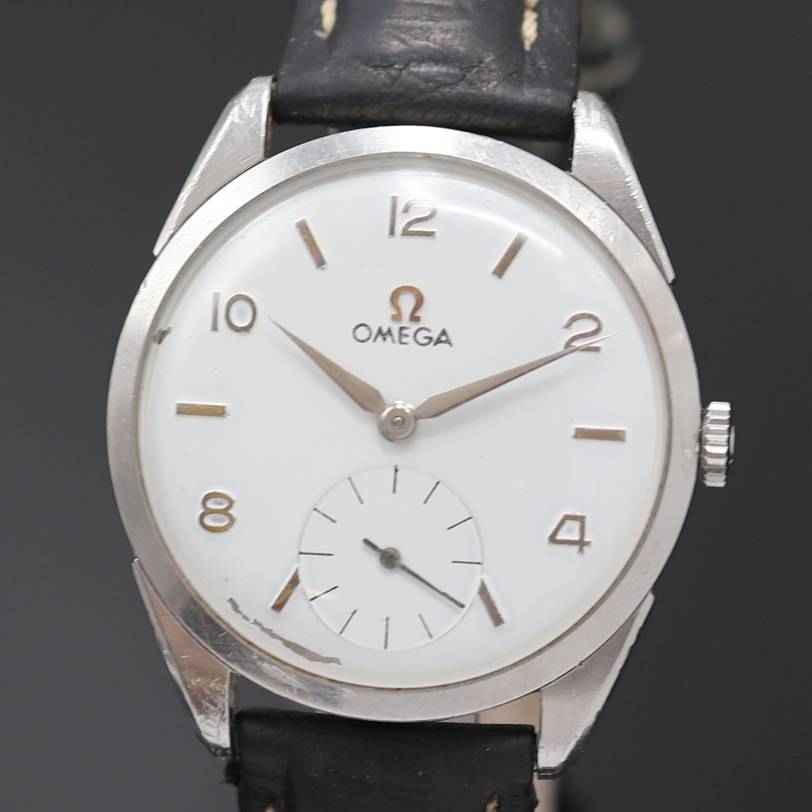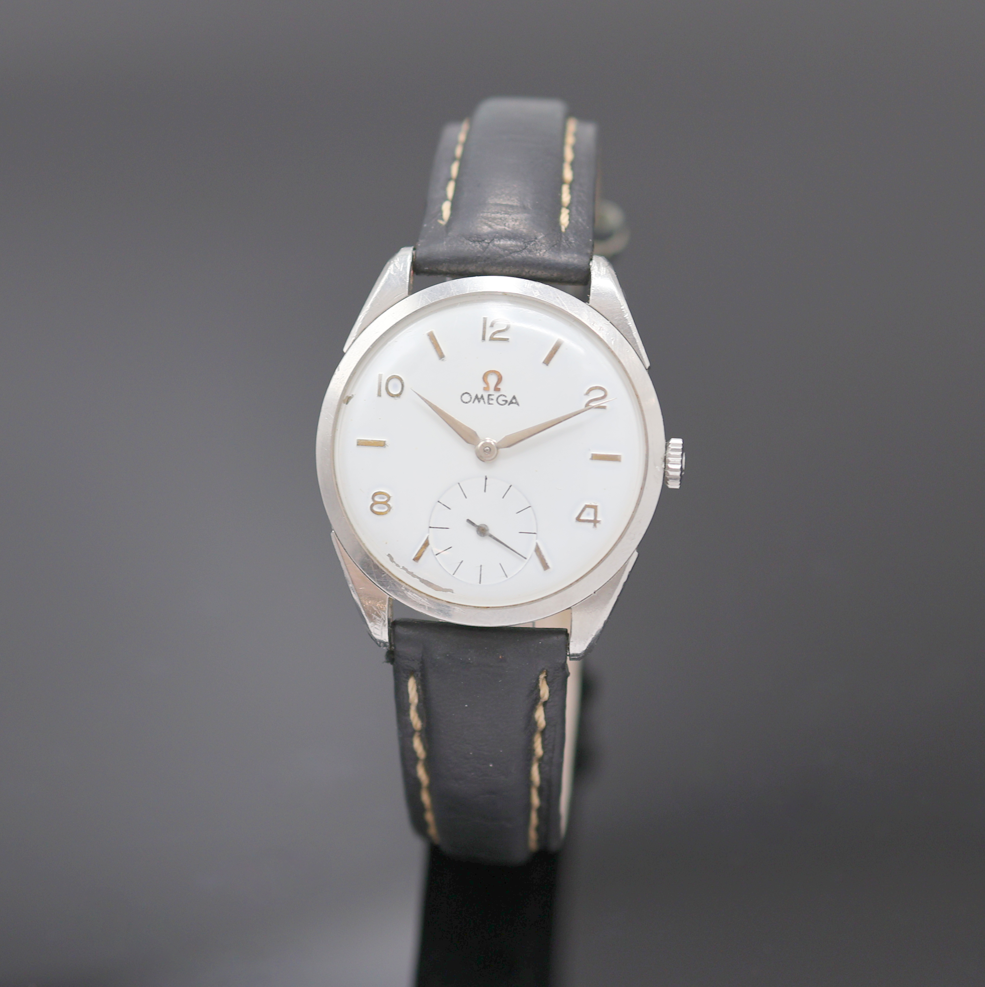 OMEGA Armbanduhr in Edelstahl Referenz 2900-5, Schweiz um 1960, Handaufzug, 2-teil.