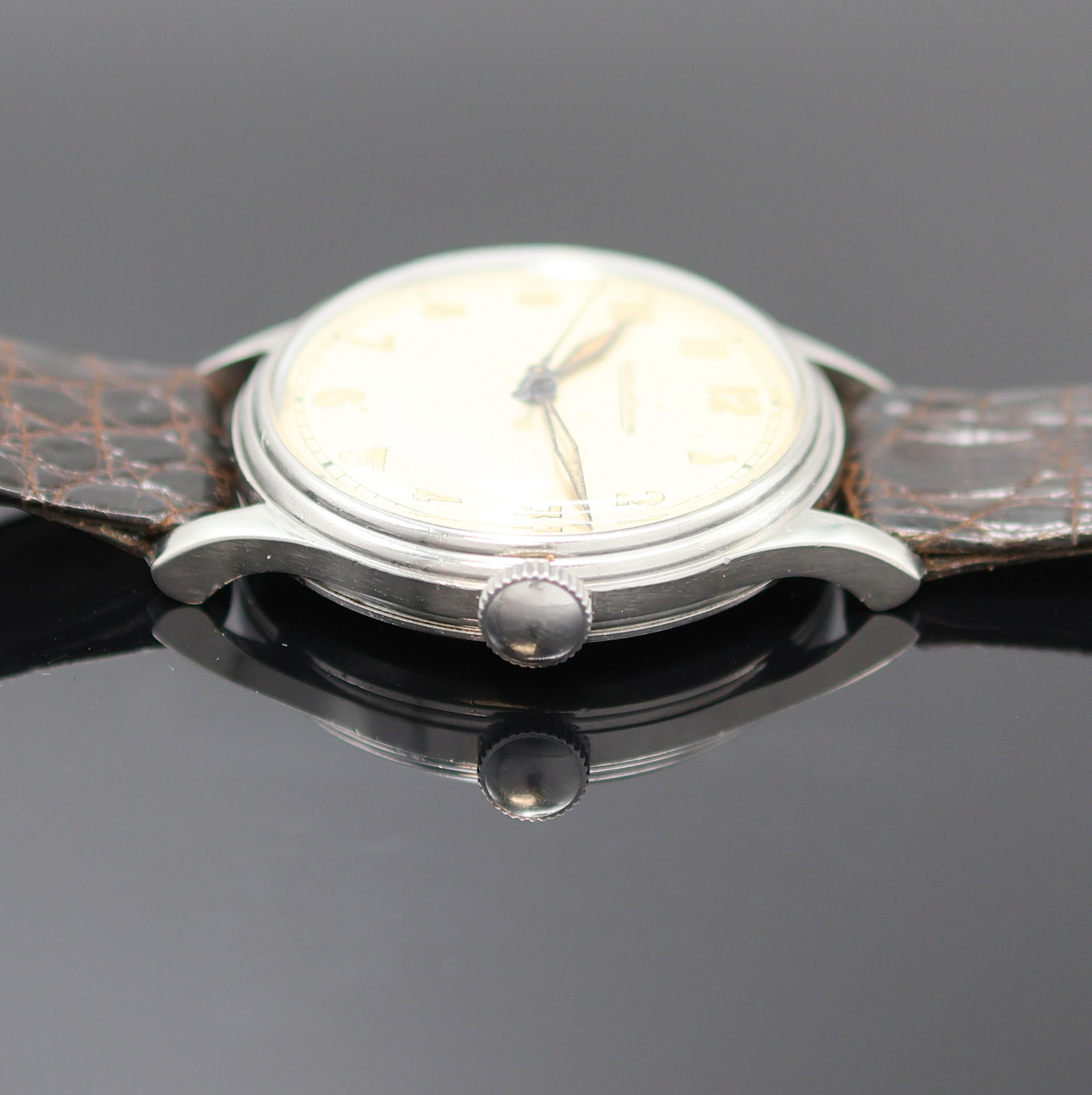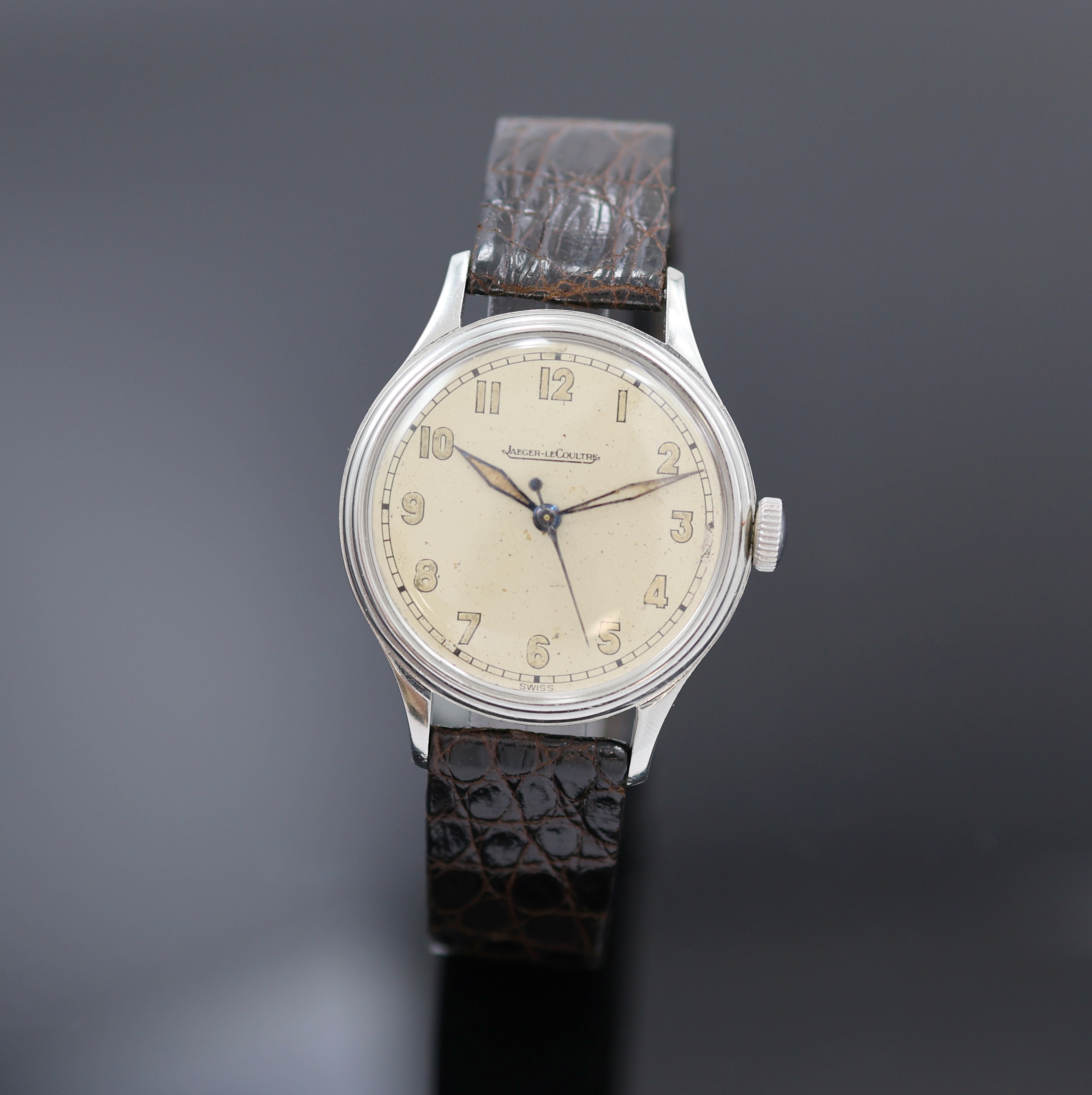 Jaeger-LeCoultre Armbanduhr in Stahl, Schweiz 1940er Jahre, Handaufzug, Boden aufgedr.,
