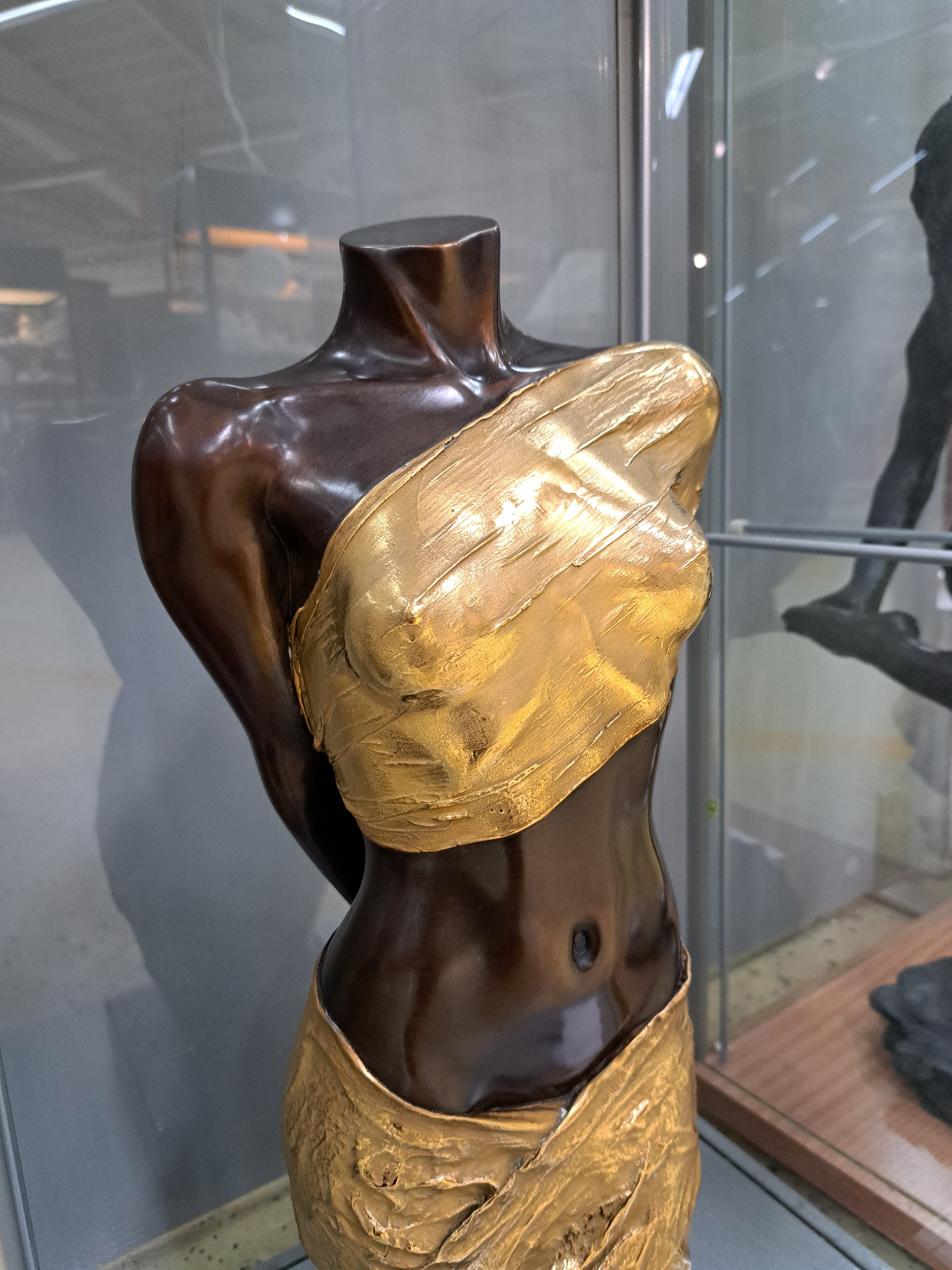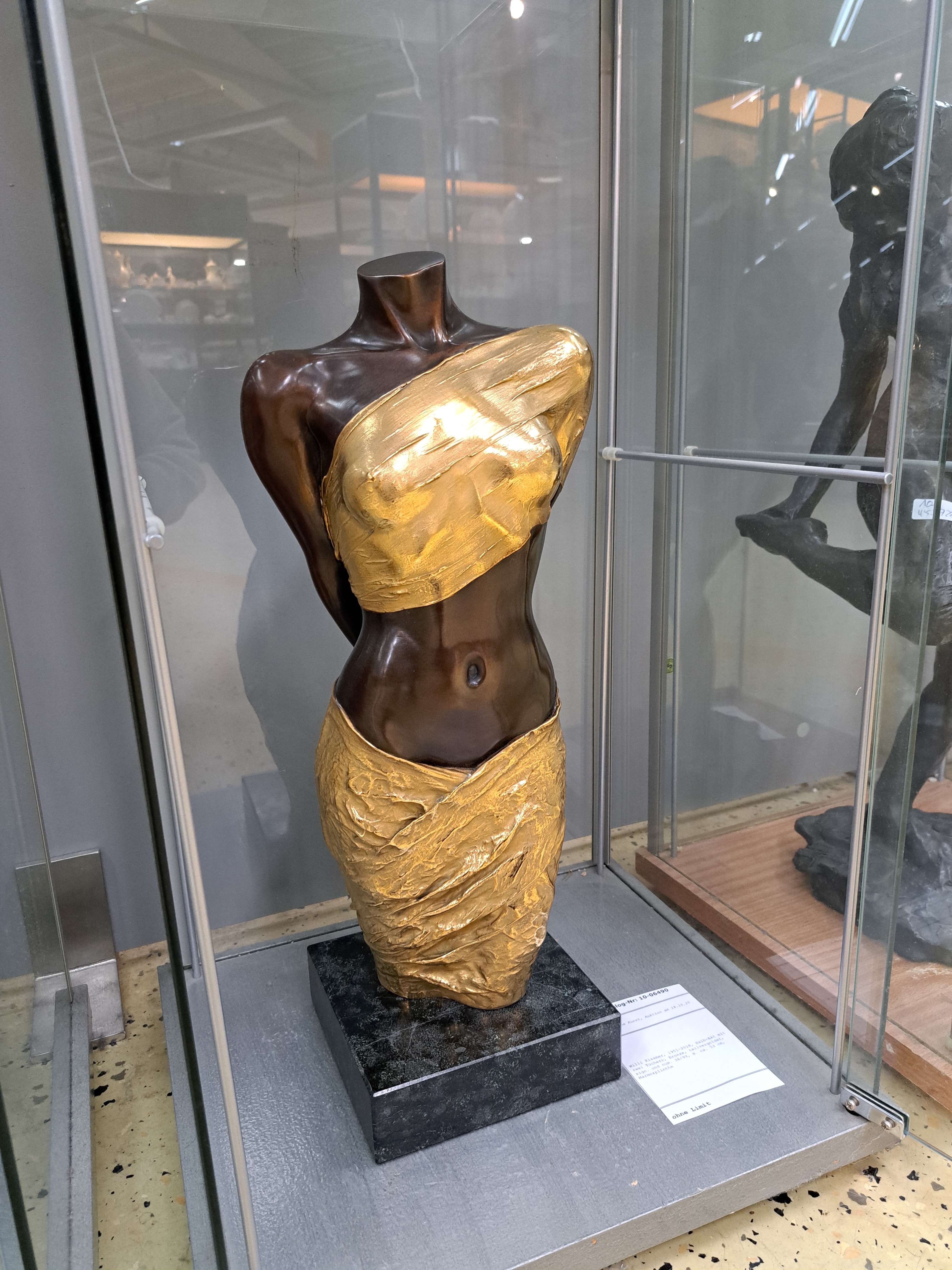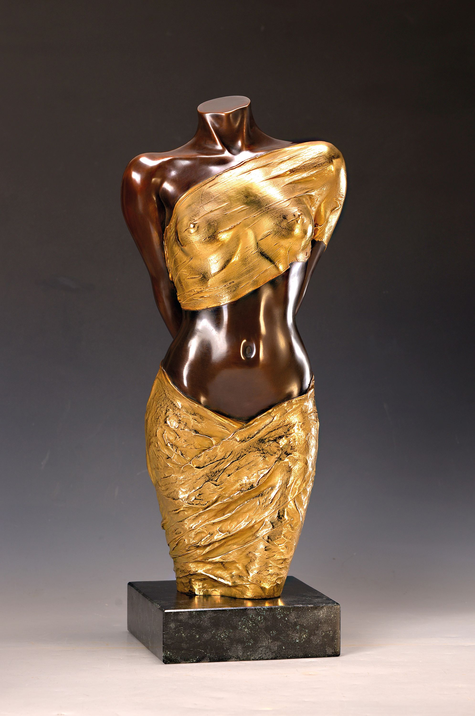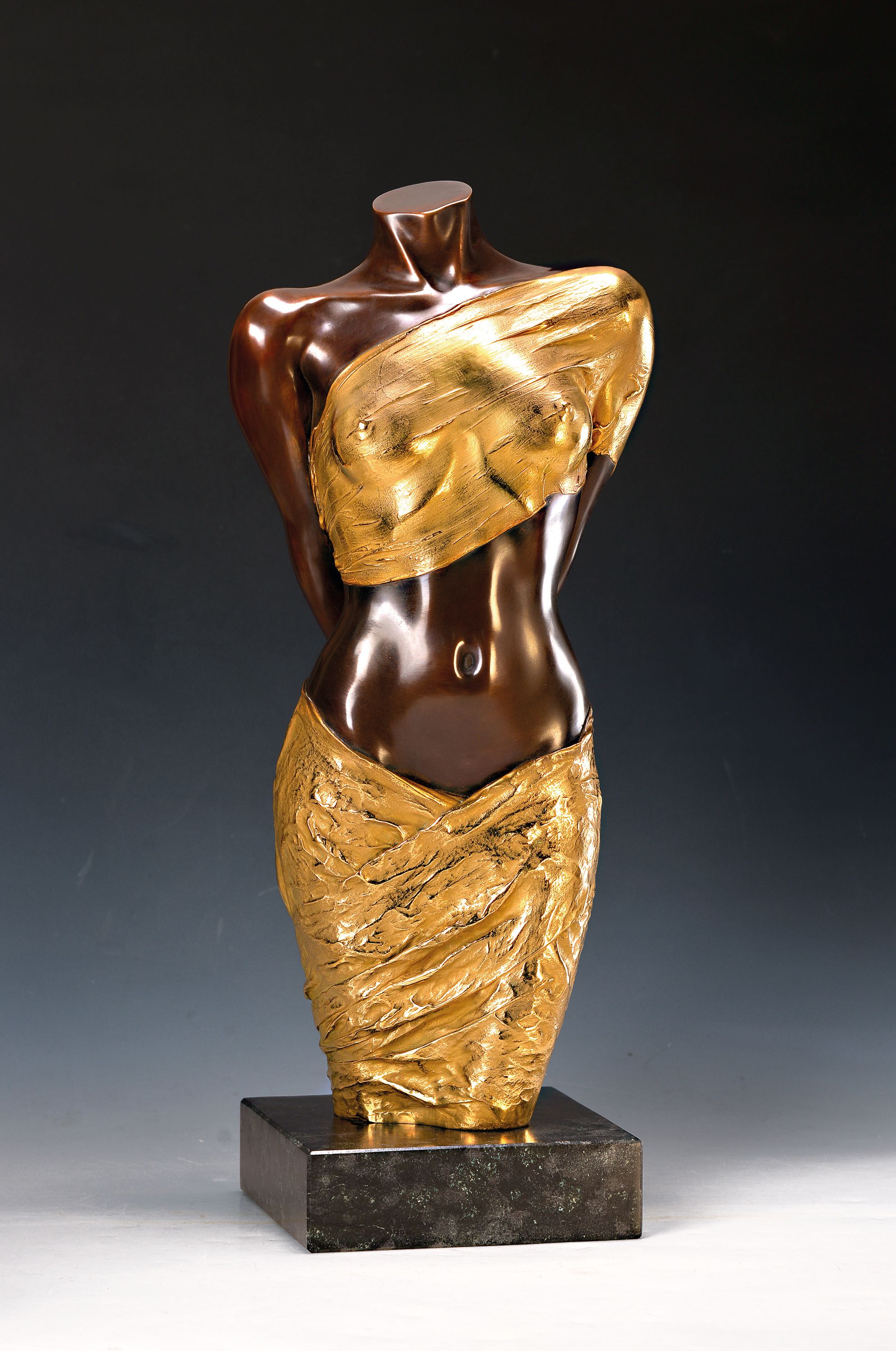 Willi Kissmer, 1951-2018, Halb-Akt mit zwei Tüchern, Bronze, teilvergoldet, sign.