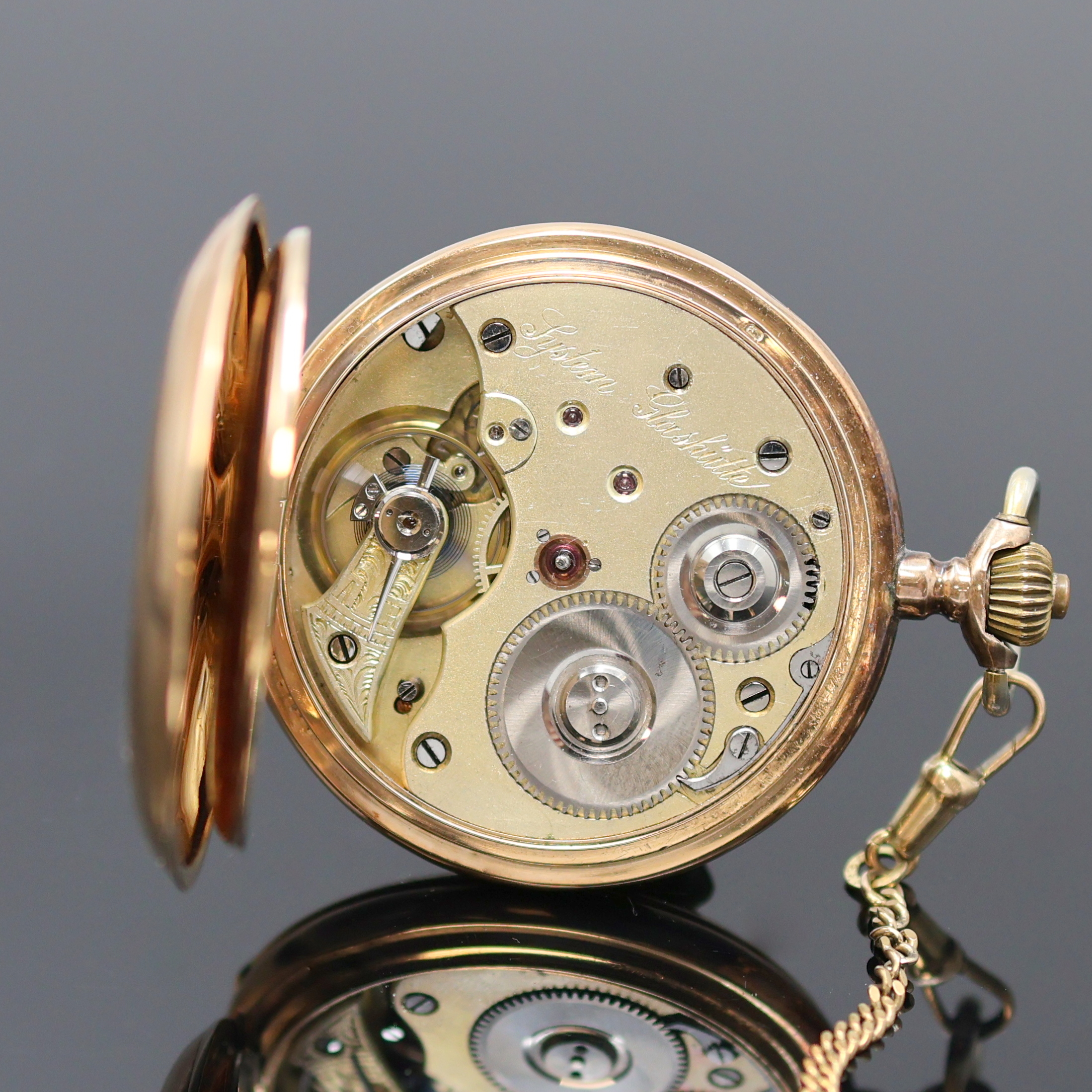 SYSTEME GLASHÜTTE Herrensavonette in RG 585/000 an GG 333/000 Kette, Schweiz um