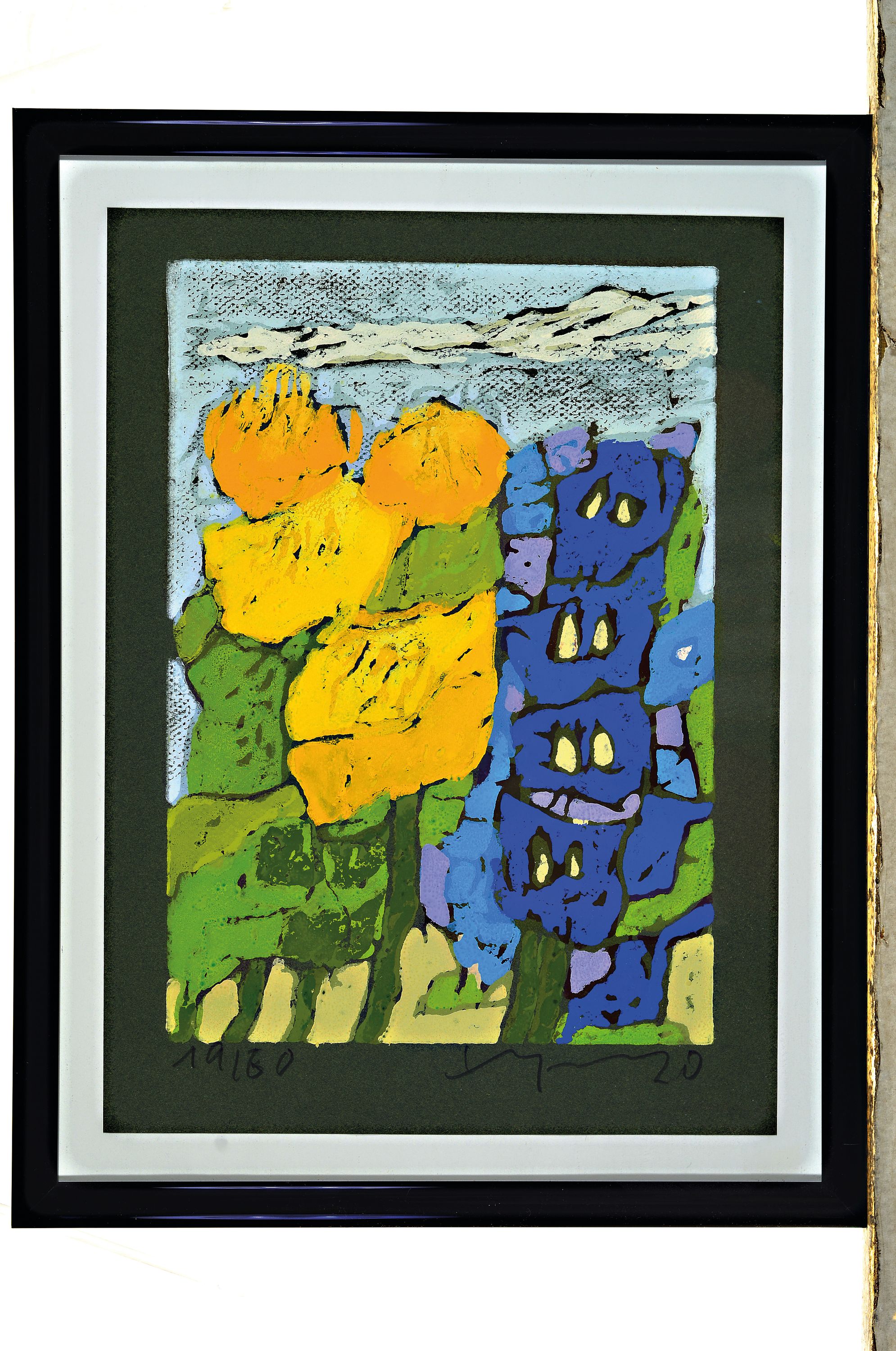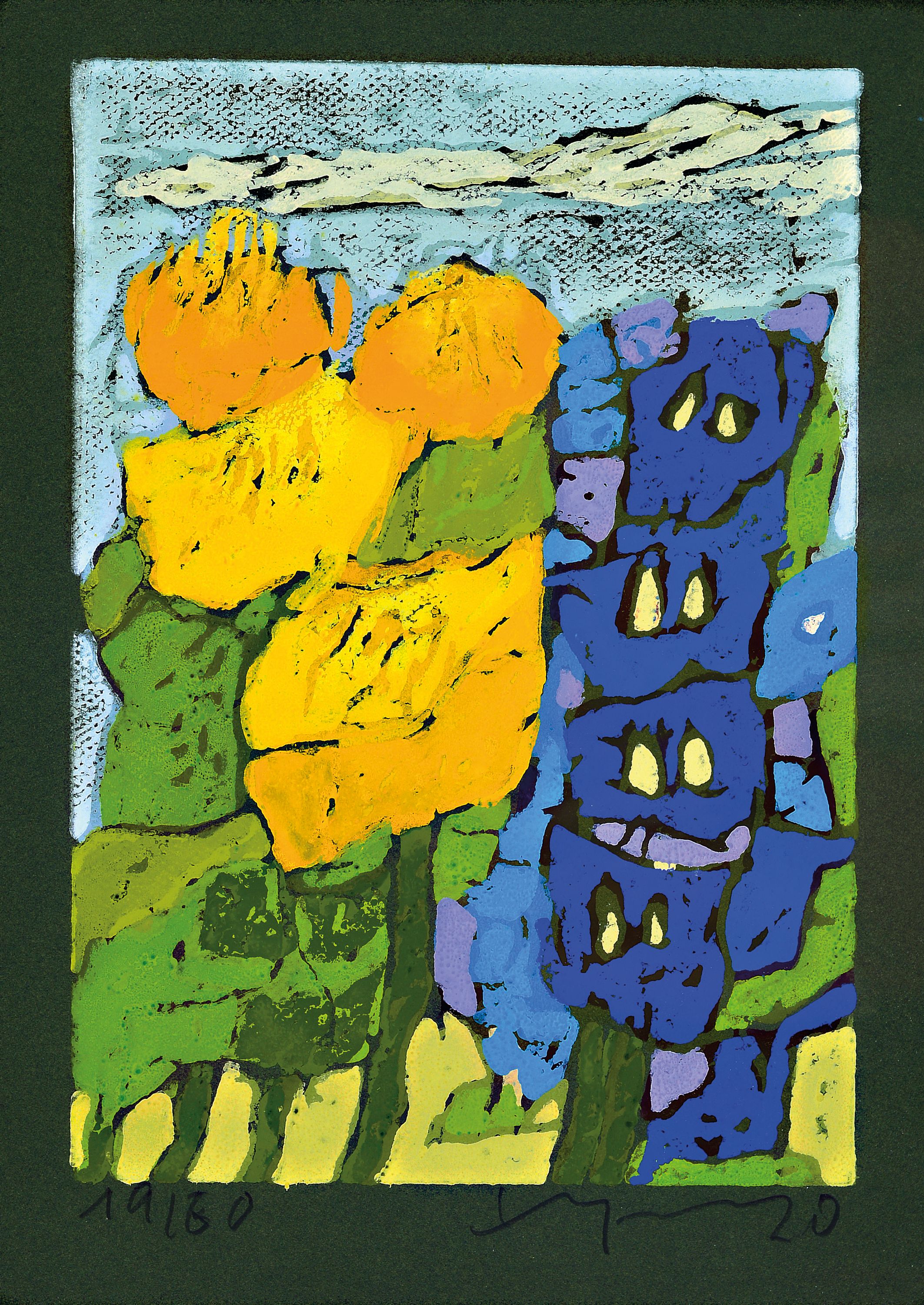 Klaus Fußmann, geb. 1938 Velbert, Farblinolschnitt auf grünem Papier, sign. und
