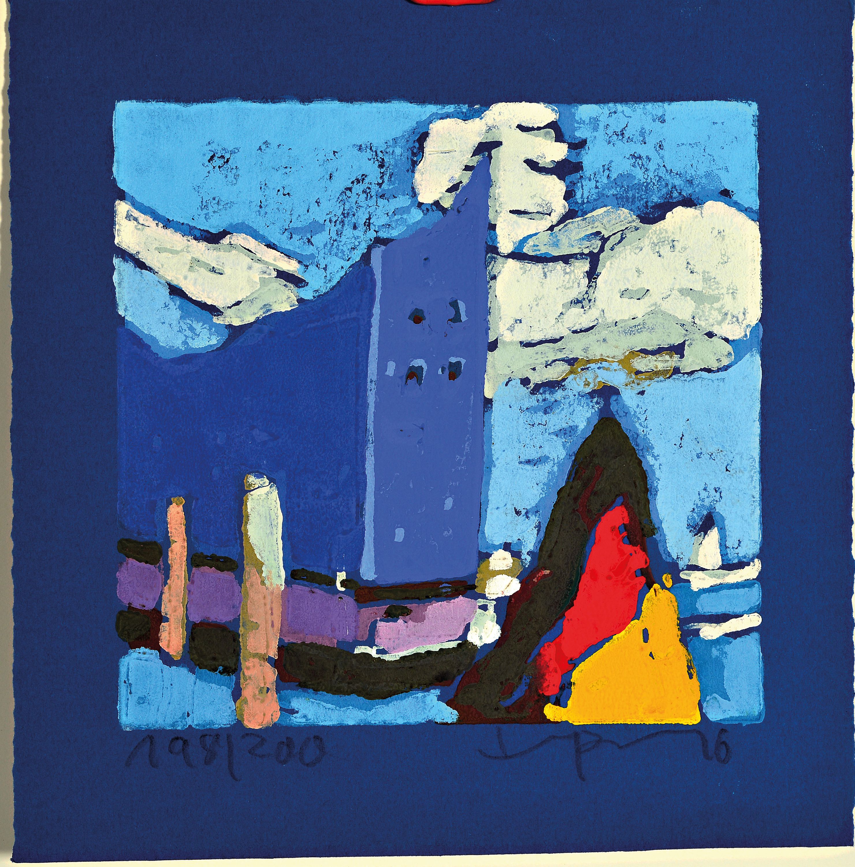 Klaus Fußmann, geb. 1938 Velbert, Elbphilharmonie Hamburg, Farblinolschnitt auf